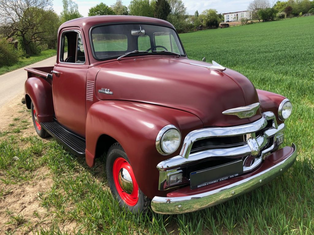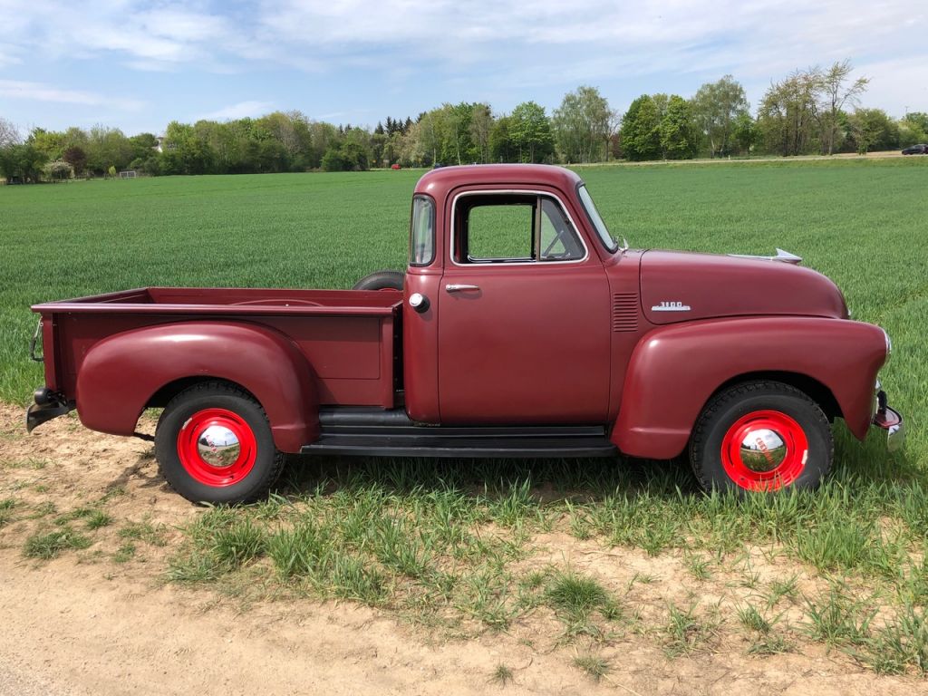Patty ist nicht nur ein toller, heute sehr seltener Truck, er ist ein stolzer, echter "5 Window" Pickup, Chevy 3100, mit originalem Motor der vor einigen Jahren überholt wurde. Er ist vor einigen Jahren in Deutschland eingereist und hat seit seiner Ankunft sehr viel Liebe erhalten. Ein neuer, matter Lack, neue Elektrik, Umrüstung und auf 24V, diverse Verschleissteile wurden erneuert, eine neue Holz-Ladefläche eingebaut. Patty sieht aus wie im Jahr 1954, gleichzeitig fährt er sich fast wie ein Neuwagen. Man muss ihn anschauen und fahren ...