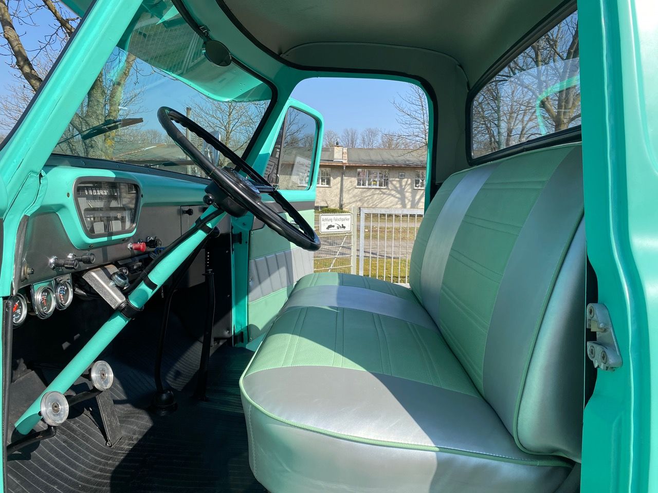 Über diesen Bub können wir einiges berichten. Einige Jahre hat der Truck in Iowa bei einem Auto-Händler verbracht, dort wurde er mit 59.000 Meilen gekauft, gefahren und gewartet. 2015 durfte er nach Deutschland reisen. Technisch ist seither viel gemacht worden, die originale Patina wurde mit einer kompletten Folie konserviert. Ohne Probleme könnte man ihn wieder in den "alten" Zustand versetzen, wir zeigen daher auch beide looks. Aber egal in welchem outfit, das Herz bleibt ein seltener 272 Y-Block V8 Motor und Mr Pepper ist definitiv etwas Besonderes.