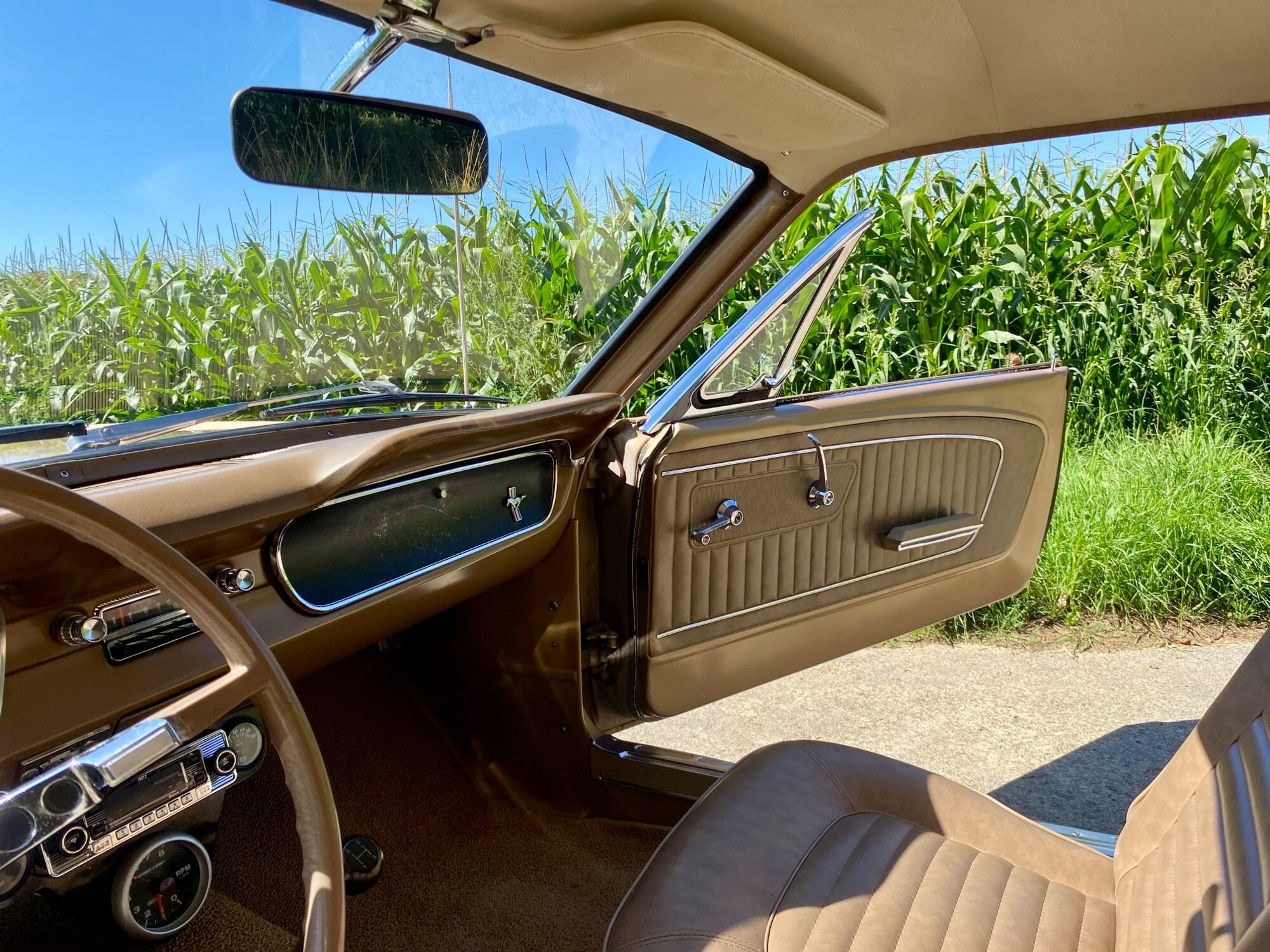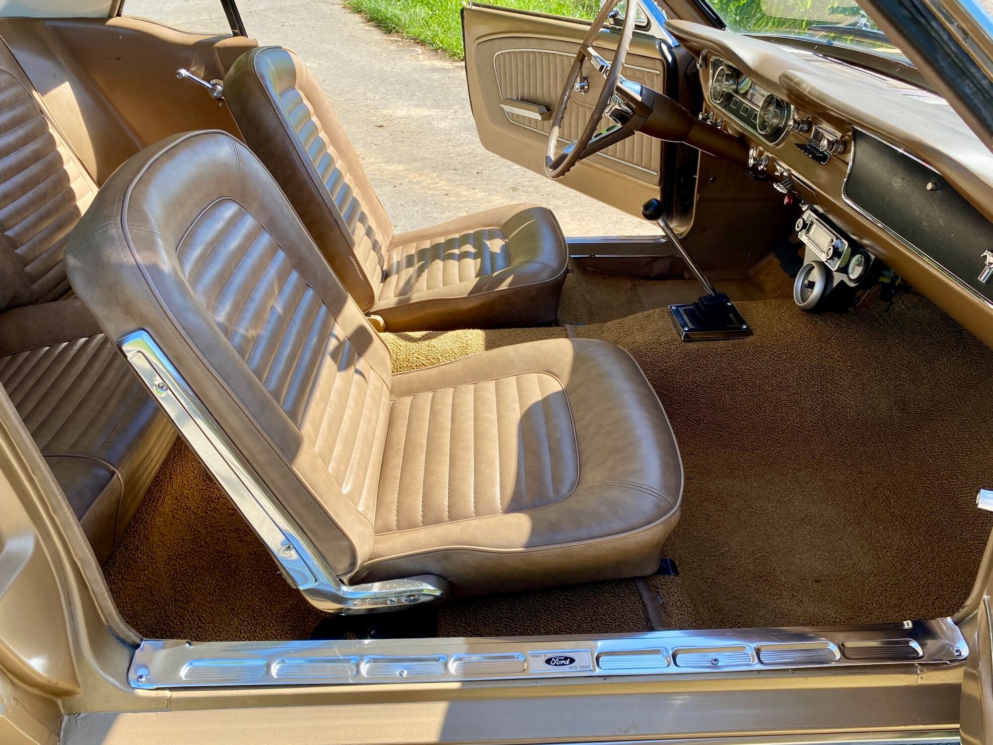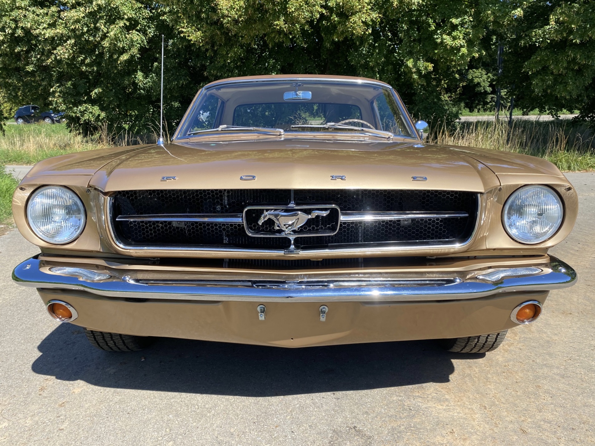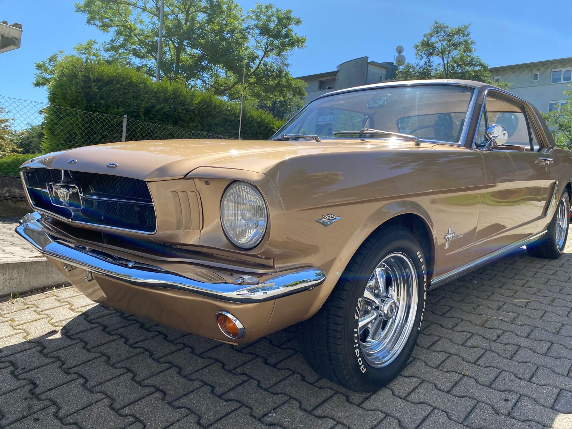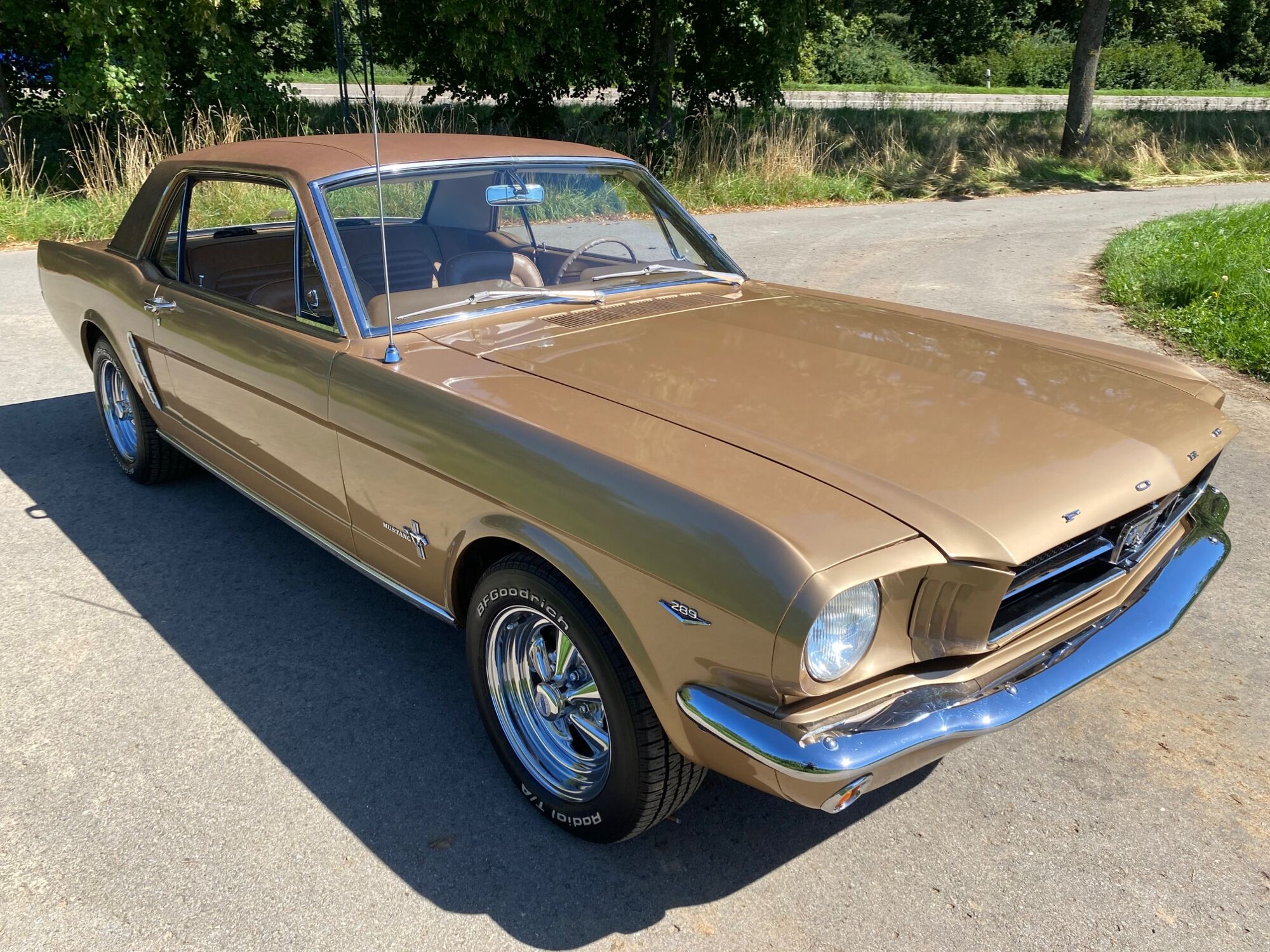 Buddy ist ein super schönes Pony mit einer sehr seltenen Lackierung in der Originalfarbe "Prairie Bronze", einem absolut passenden Vinyldach und dem I-Tüpfelchen, die farblich abgestimmte Palomino-Innenausstattung in hellem braun. Dazu ein brauner Teppich und glänzende, schöne Chromteile. Bei Karosserie und Technik gibt es nichts zu meckern, sogar eine Verlängerung der Sitzschiene wurde eingebaut. Eine Doppelrohr-Auspuffanlage sorgt für super Sound im Aussenbereich, das Retro-Radio mit den neuen Boxen kann Lieder aus den 60ern singen. Dieses waschechte Pony wurde jedenfalls mit sehr viel Geschmack ausgesucht.