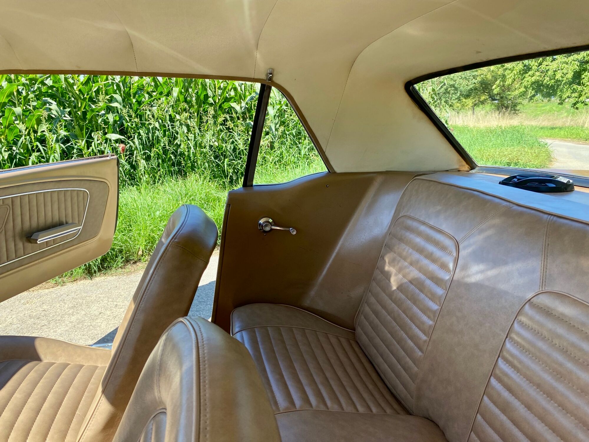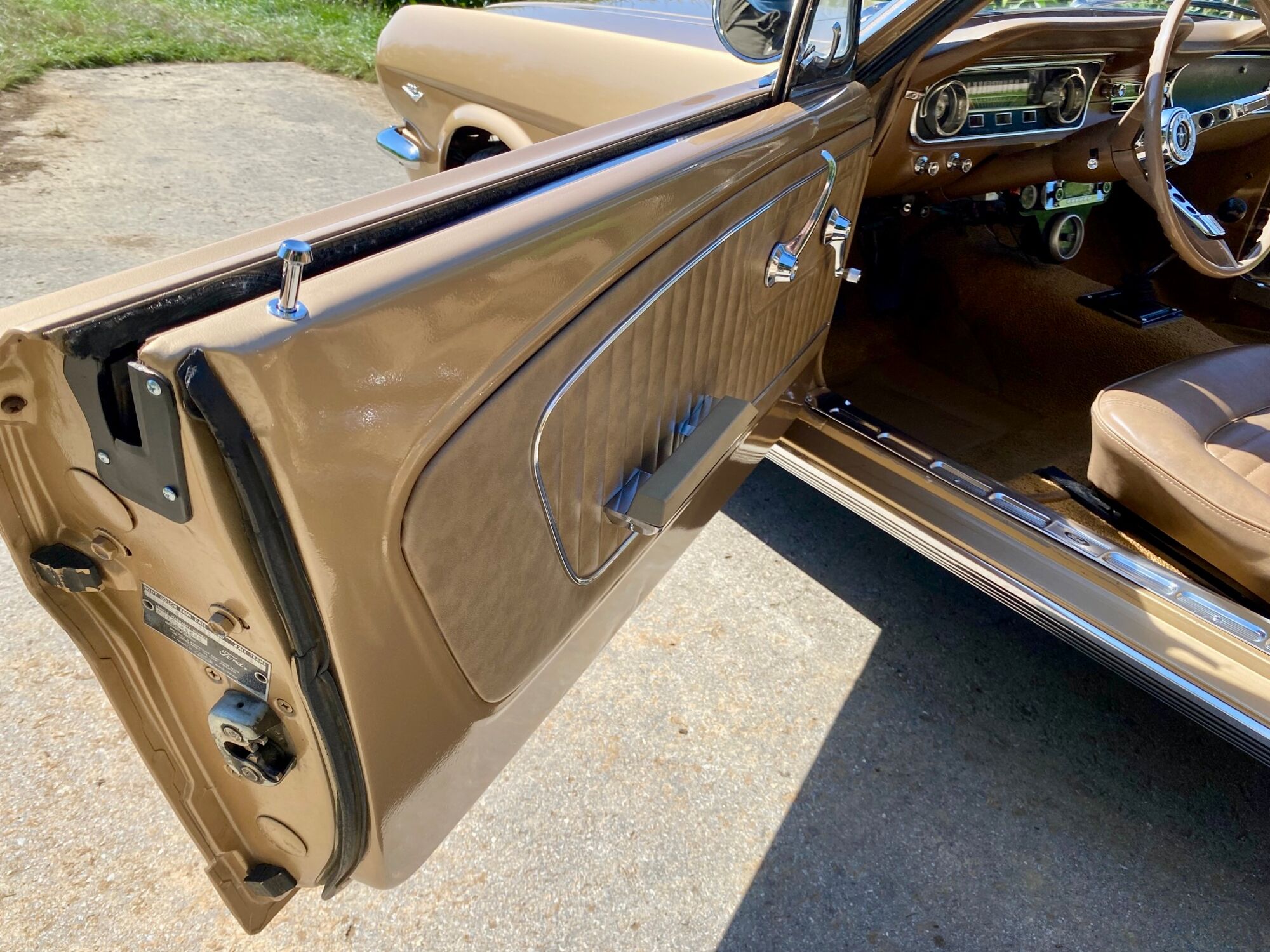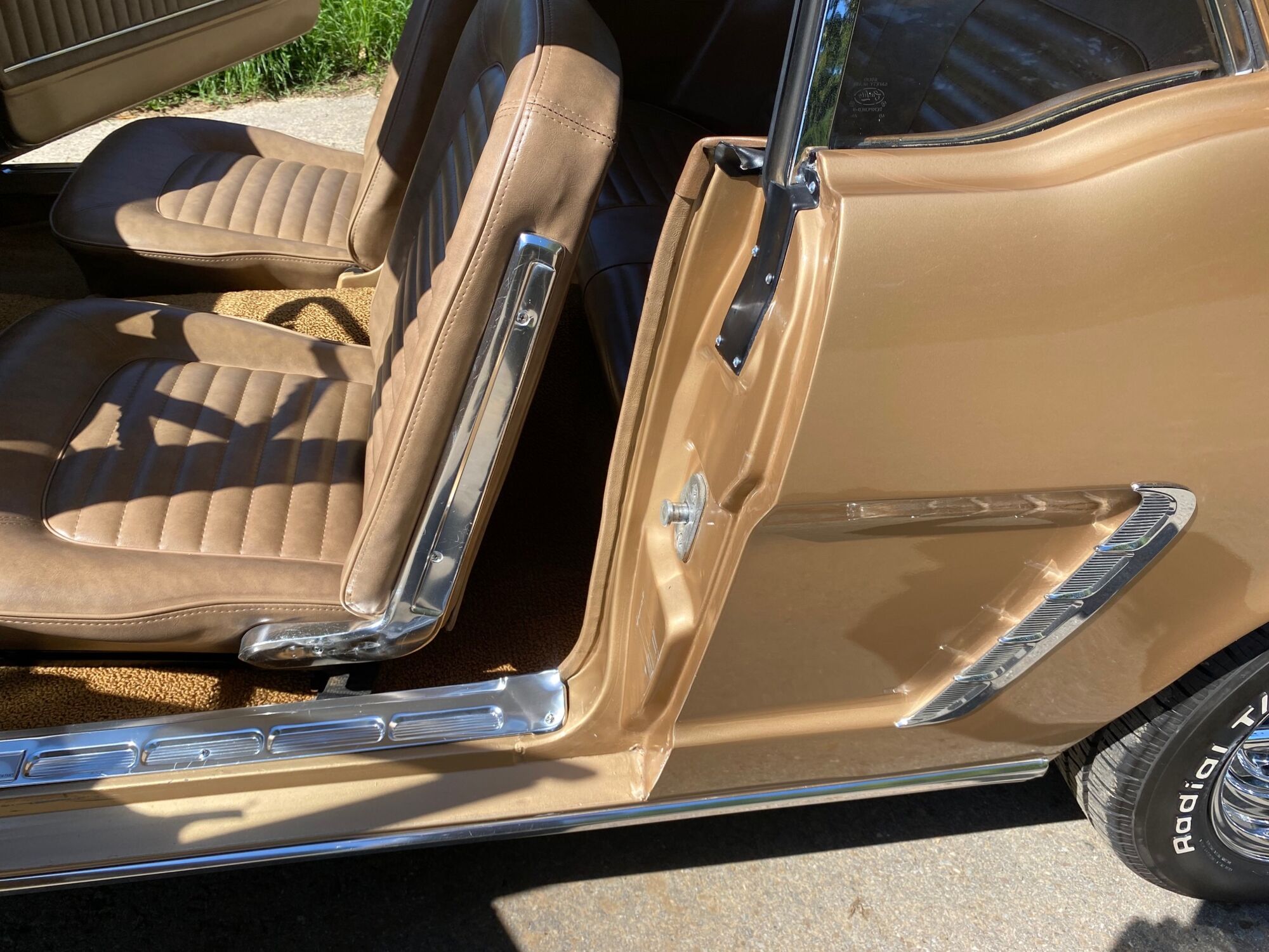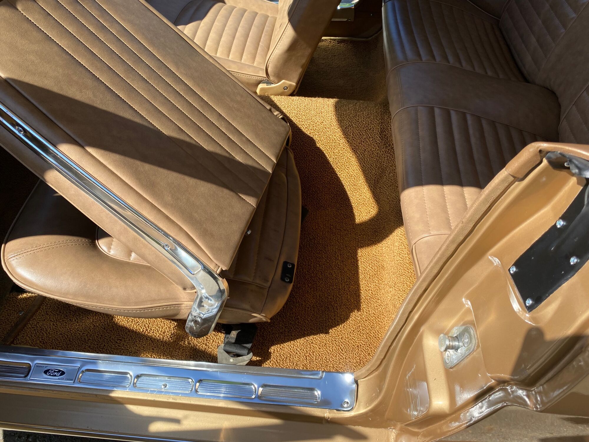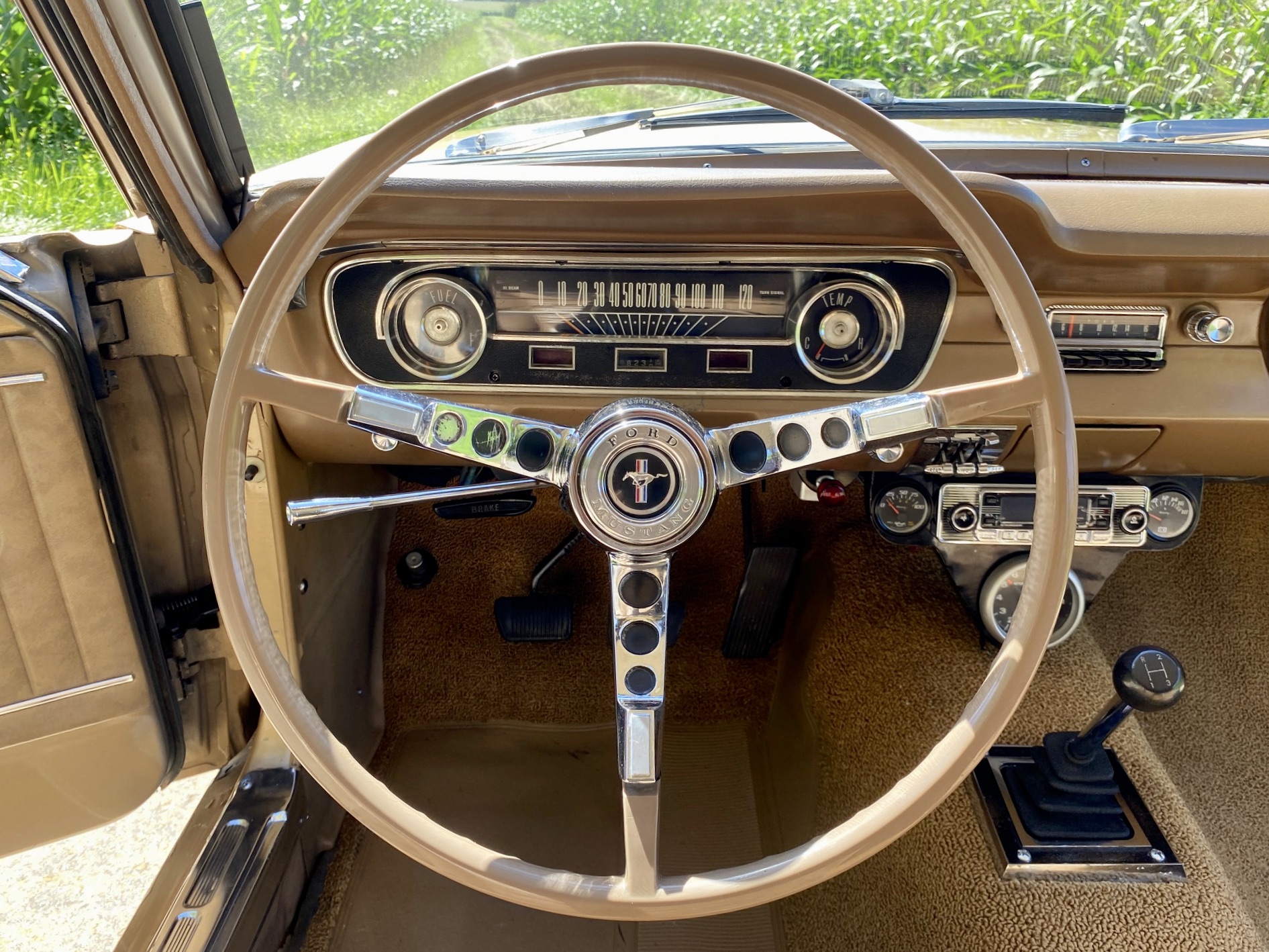 Buddy ist ein super schönes Pony mit einer sehr seltenen Lackierung in der Originalfarbe "Prairie Bronze", einem absolut passenden Vinyldach und dem I-Tüpfelchen, die farblich abgestimmte Palomino-Innenausstattung in hellem braun. Dazu ein brauner Teppich und glänzende, schöne Chromteile. Bei Karosserie und Technik gibt es nichts zu meckern, sogar eine Verlängerung der Sitzschiene wurde eingebaut. Eine Doppelrohr-Auspuffanlage sorgt für super Sound im Aussenbereich, das Retro-Radio mit den neuen Boxen kann Lieder aus den 60ern singen. Dieses waschechte Pony wurde jedenfalls mit sehr viel Geschmack ausgesucht.
