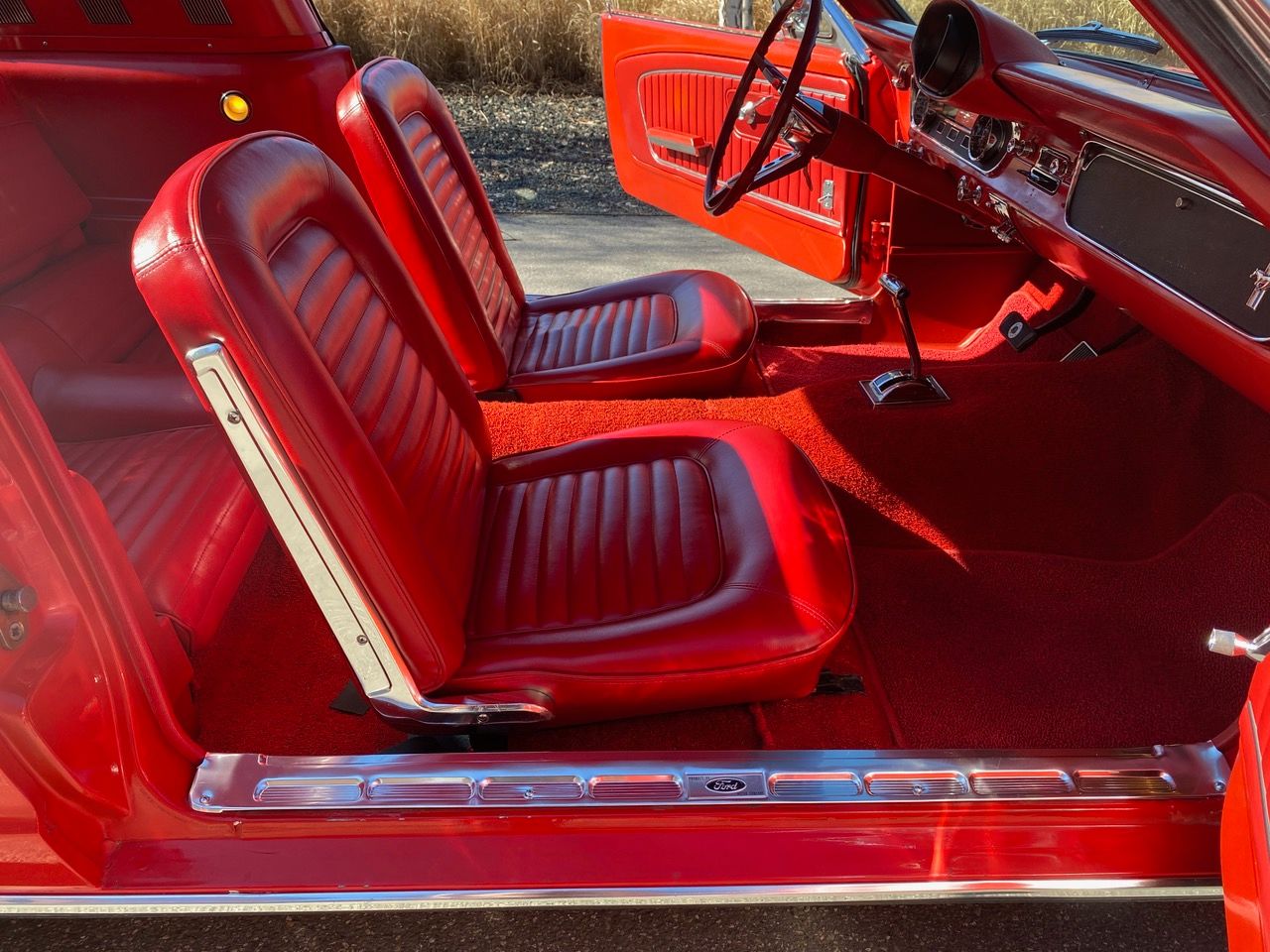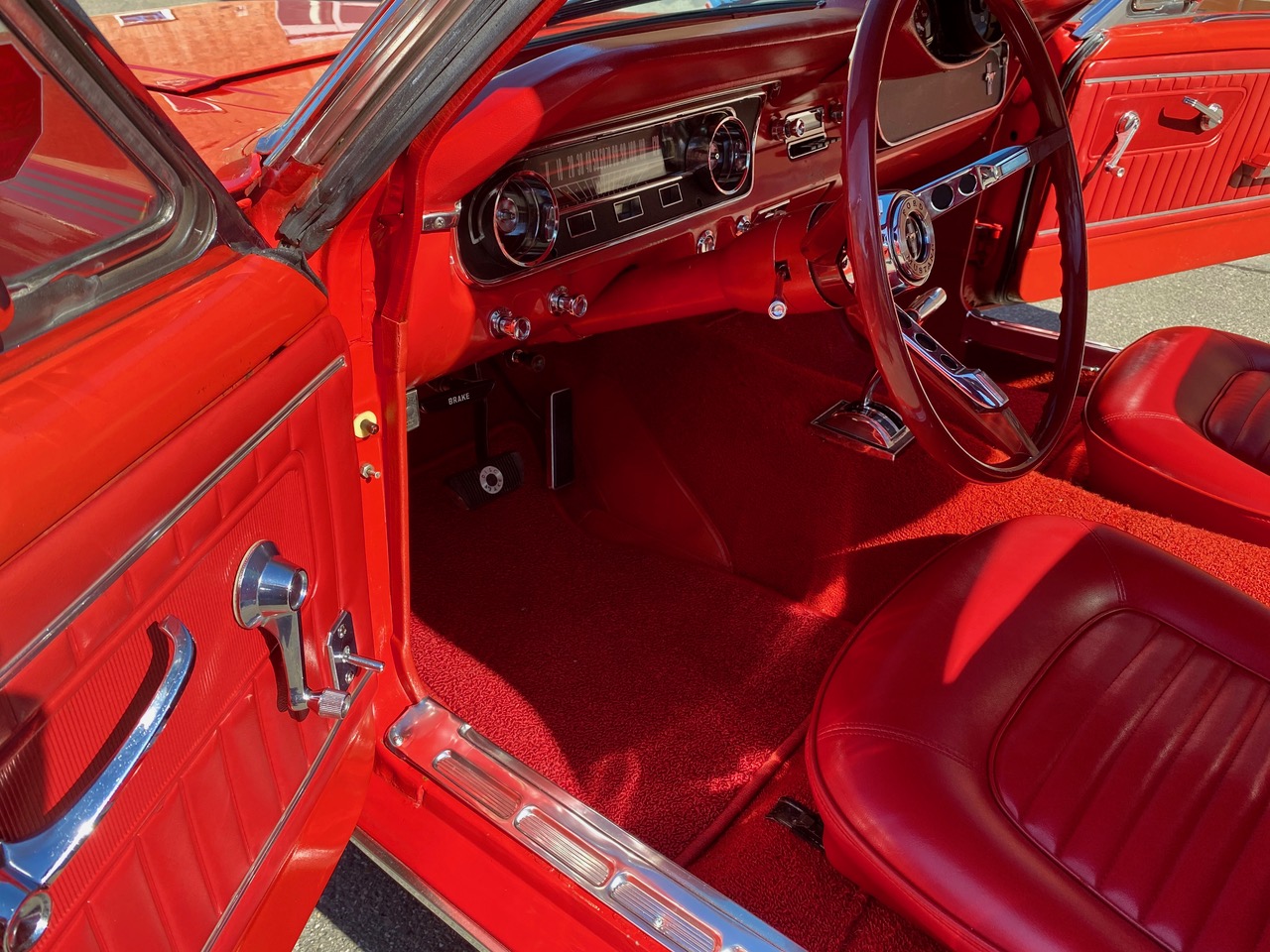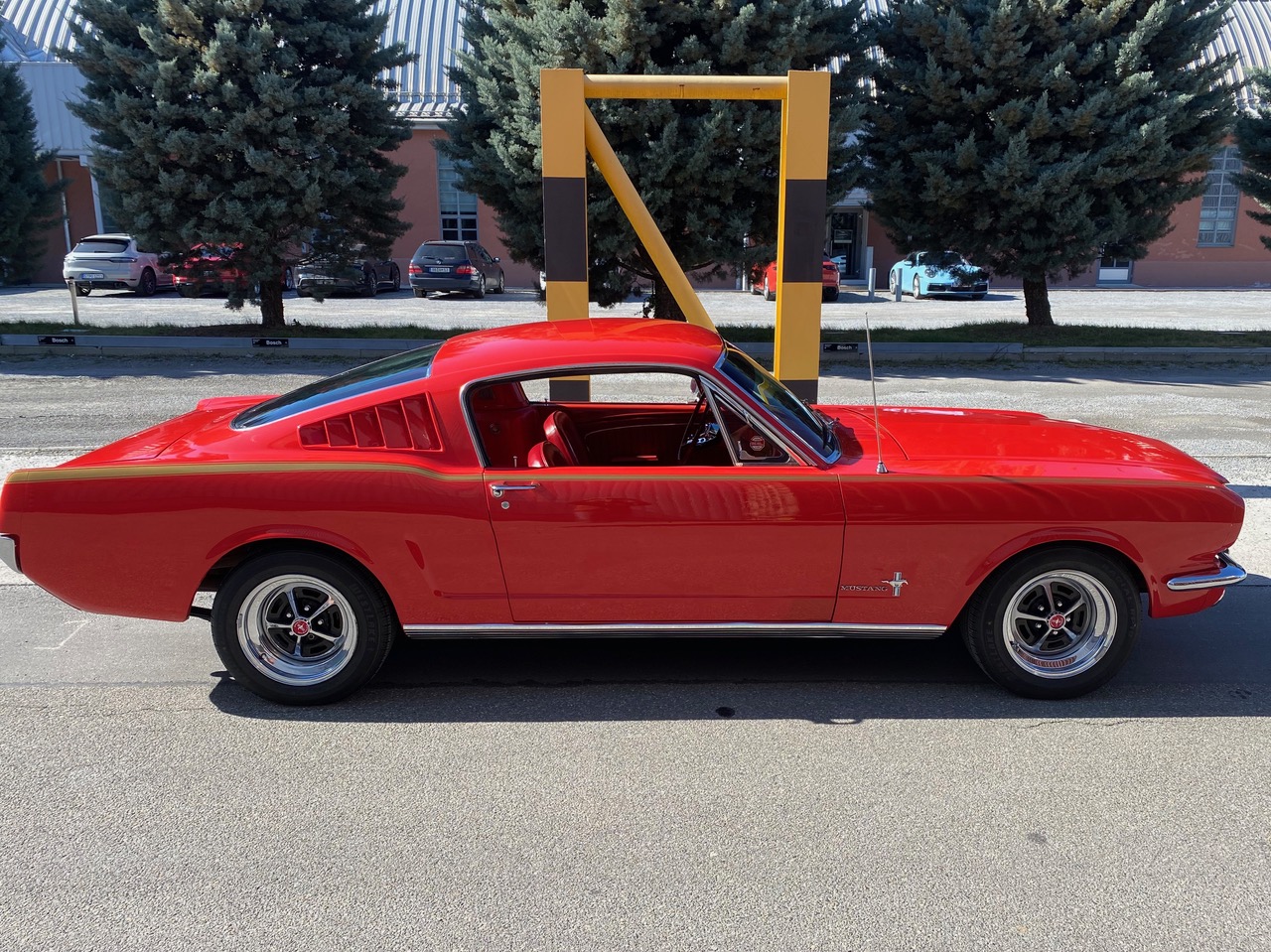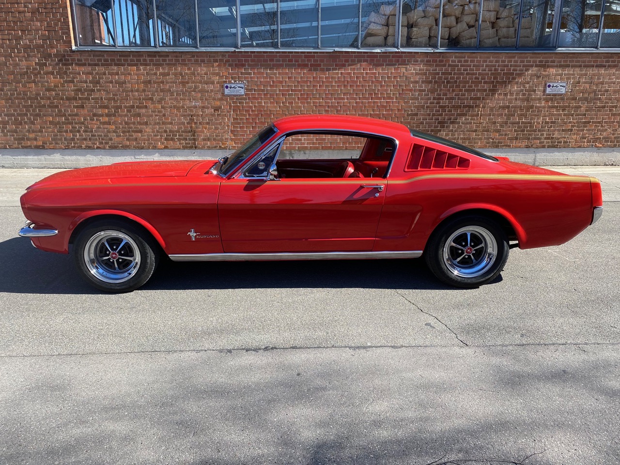 Flash ist ein waschechter Fastback in rot, rot rot. Die Farbkombination alleine lässt Stielaugen wachsen. Lackiert in der Geburtsfarbe "Rangoon Red" mit roter Innenausstattung. Gemischt mit Automatik, Scheibenbremsen, Servolenkung und einem Doppelauspuff, der alle Beteiligten mit coolem Sound versorgt. Ein traumhafter Unterboden versetzt TÜV-Prüfer in gute Laune und spätestens beim Blick in den Motorraum muss man erkennen, dass es sich hier um einen Hengst handelt. Klassiker, Kult, Wertanlage - wir sind jedenfalls stolz, dass er bei uns im Stall einziehen durfte.