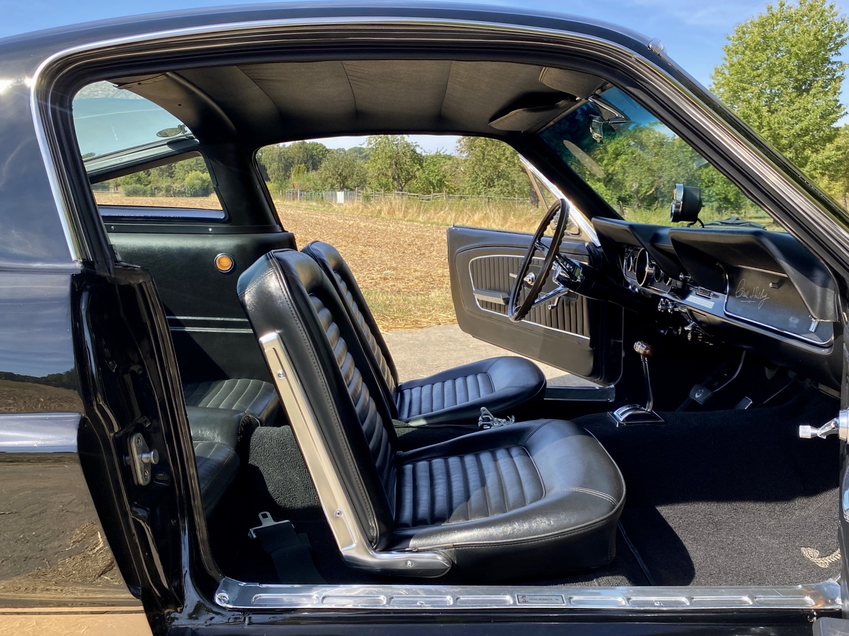 Dieser tolle Bub ist schon einige Jahre in Deutschland. Black Jack ist ein ganz originaler Fastback, geboren in San Jose, am 17. Juni 1965 mit dem Paint Code A, Raven Black. Heute ist er ein rassiger Mustang GT Fastback Shelby Clone, super schön gemacht. Alle deutschen Belege von den Arbeiten am Fahrzeug liegen vor. Mustang, Fastback, schwarz, GT, Shelby .... Für Mustang-Fans ist jedes einzelne Wort ein Traum. Schwarze Mustangs sind selten, schwarze Fastbacks noch seltener und Shelby Clones - ganz selten.