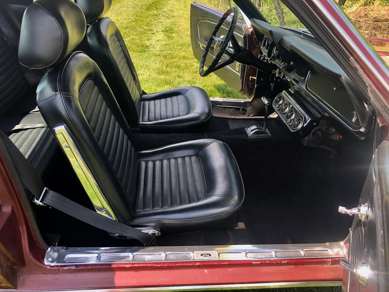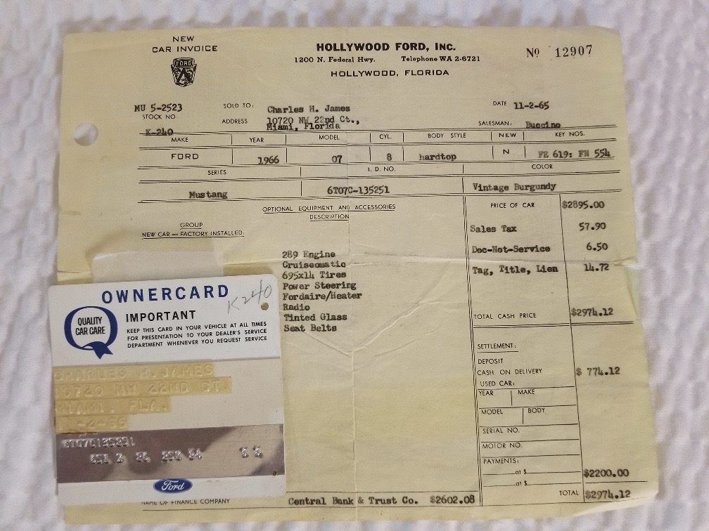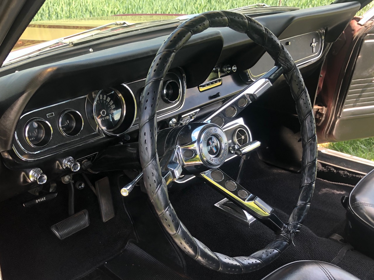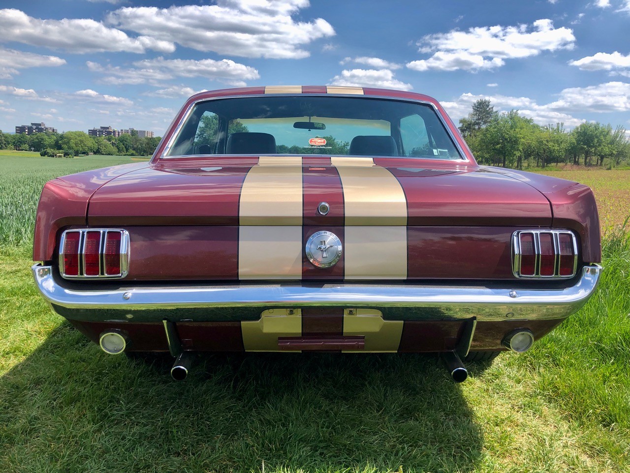 Barney ist schon seit einer Weile in Deutschland und bereits zugelassen, er hat sich als sehr zuverlässiges Pony bewiesen. C-Code, super schöne Cragar-Felgen, Servolenkung, Scheibenbremsen, Doppelauspuff mit coolem Sound und dazu die goldenen Rennstreifen in Vinyl, darunter ein schöner Lack in originaler Farbkombi. Aber nicht genug, Barney bringt all seine Rechnungen und Belege mit, sogar seine originale Verkaufsrechnung mit dem Protectoplate. Alle Begehrlichkeiten von Historien- und Technik-Fans werden hier erfüllt.