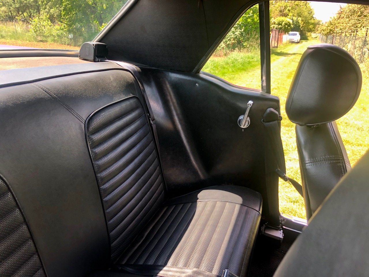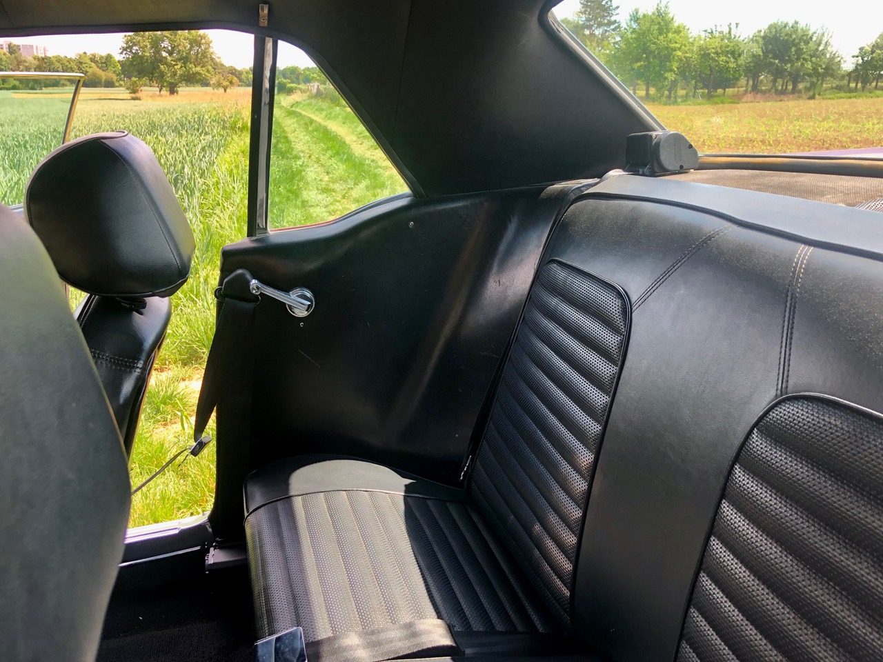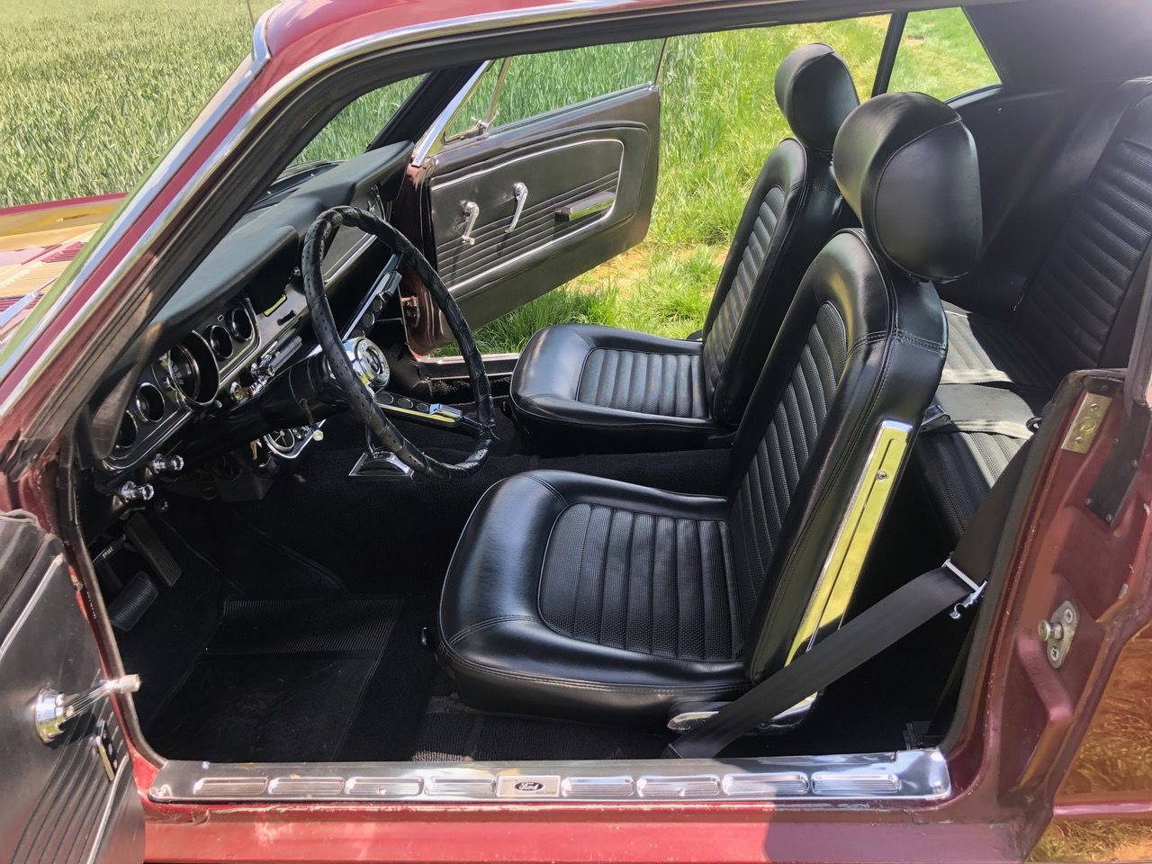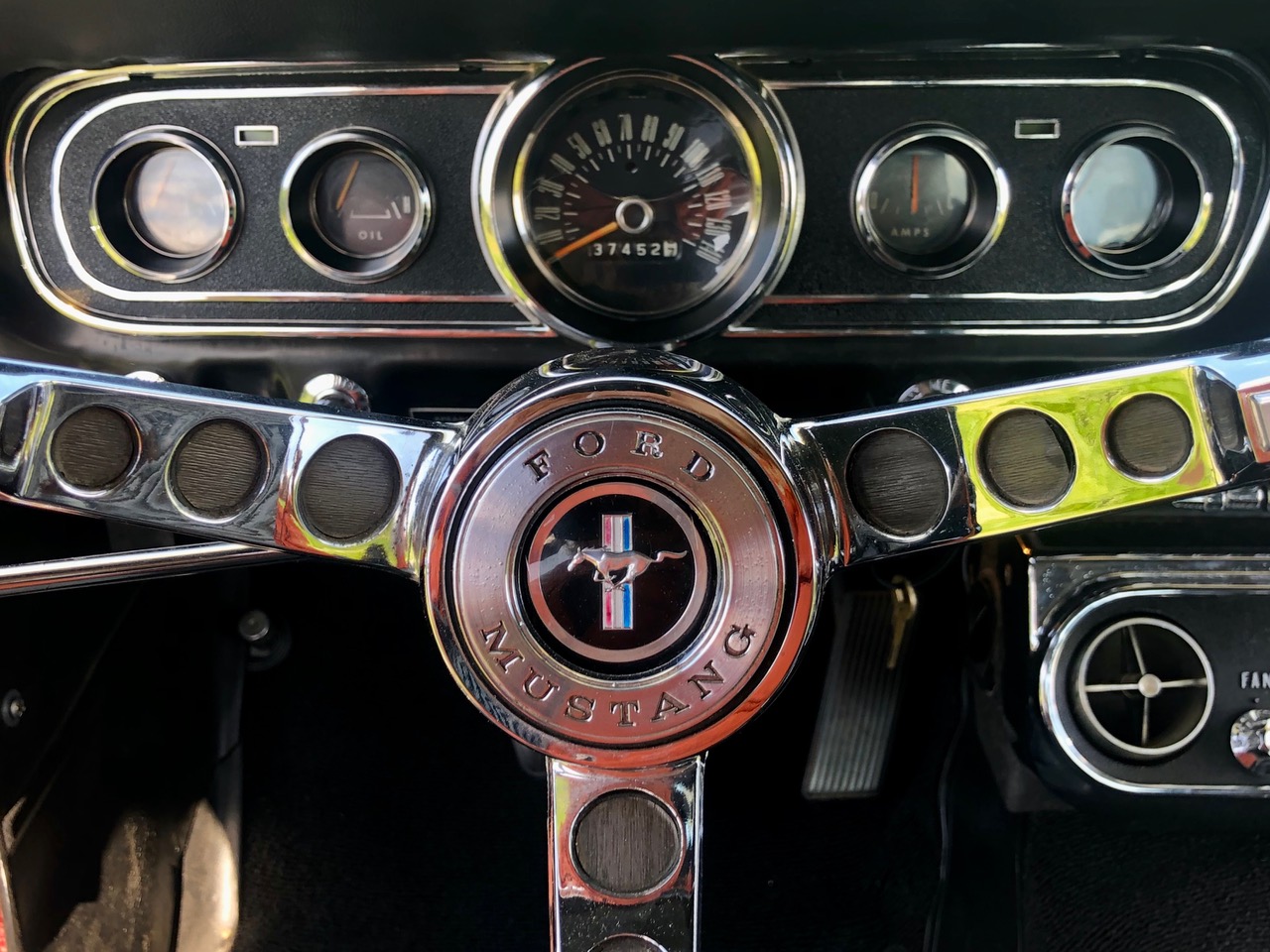Barney ist schon seit einer Weile in Deutschland und bereits zugelassen, er hat sich als sehr zuverlässiges Pony bewiesen. C-Code, super schöne Cragar-Felgen, Servolenkung, Scheibenbremsen, Doppelauspuff mit coolem Sound und dazu die goldenen Rennstreifen in Vinyl, darunter ein schöner Lack in originaler Farbkombi. Aber nicht genug, Barney bringt all seine Rechnungen und Belege mit, sogar seine originale Verkaufsrechnung mit dem Protectoplate. Alle Begehrlichkeiten von Historien- und Technik-Fans werden hier erfüllt.