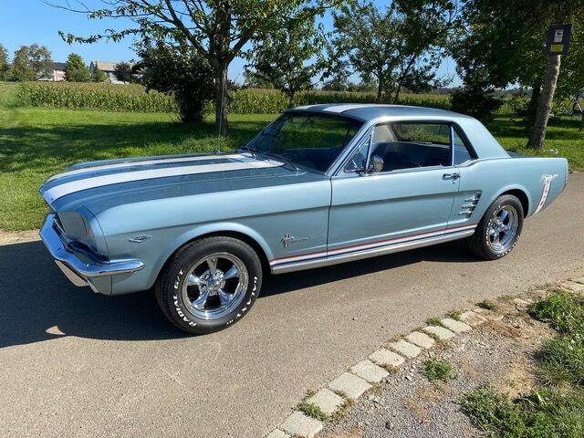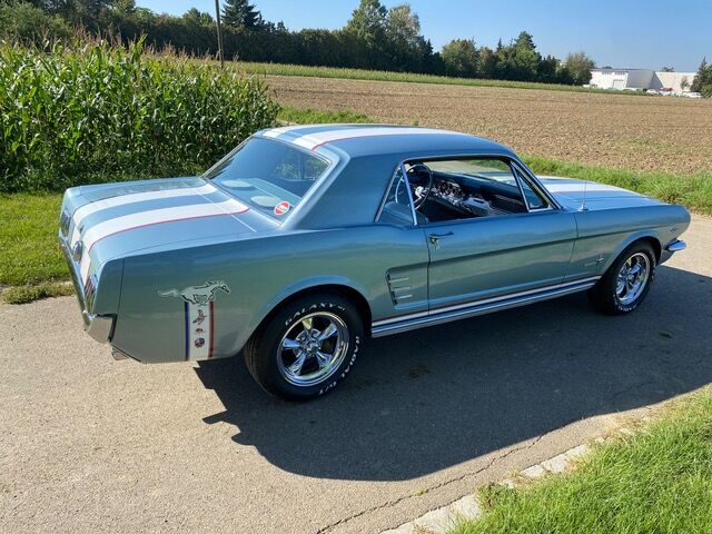 Hier kommt unser Mr. Duke mit tollen, aussergewöhnlichen Racing-Stripes in den Farben des Chrom-Emblems, Doppelrohr-Auspuffanlage mit Gänsehaut-Blubber-V8-Sound, Automatik, Servolenkung und klasse Felgen. Duke stand nicht nur in der Garage, er wurde gefahren und hat eine tolle, Ausstrahlung. Die Bodenbleche wurden definitiv nie gewechselt, das Pony zeigt sich in einem sehr originalen und nicht geschweissten Blechzustand mit einem tollen Unterboden, auch die Innenausstattung ist super schön. Der Lack ist älter aber immer noch sehr sehr schön, man sieht dem Wagen an dass er immer sehr gepflegt wurde. Einsteigen und los fahren, TÜV und H inklusive.