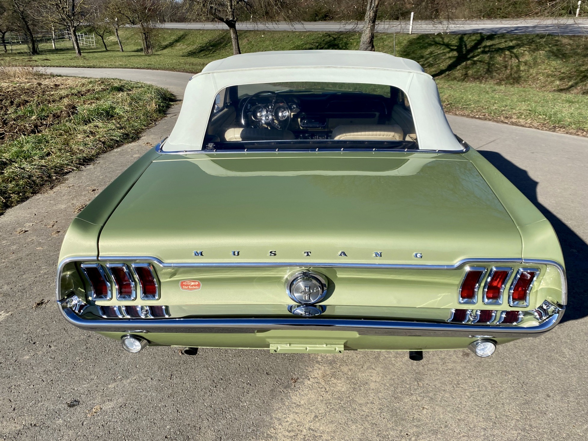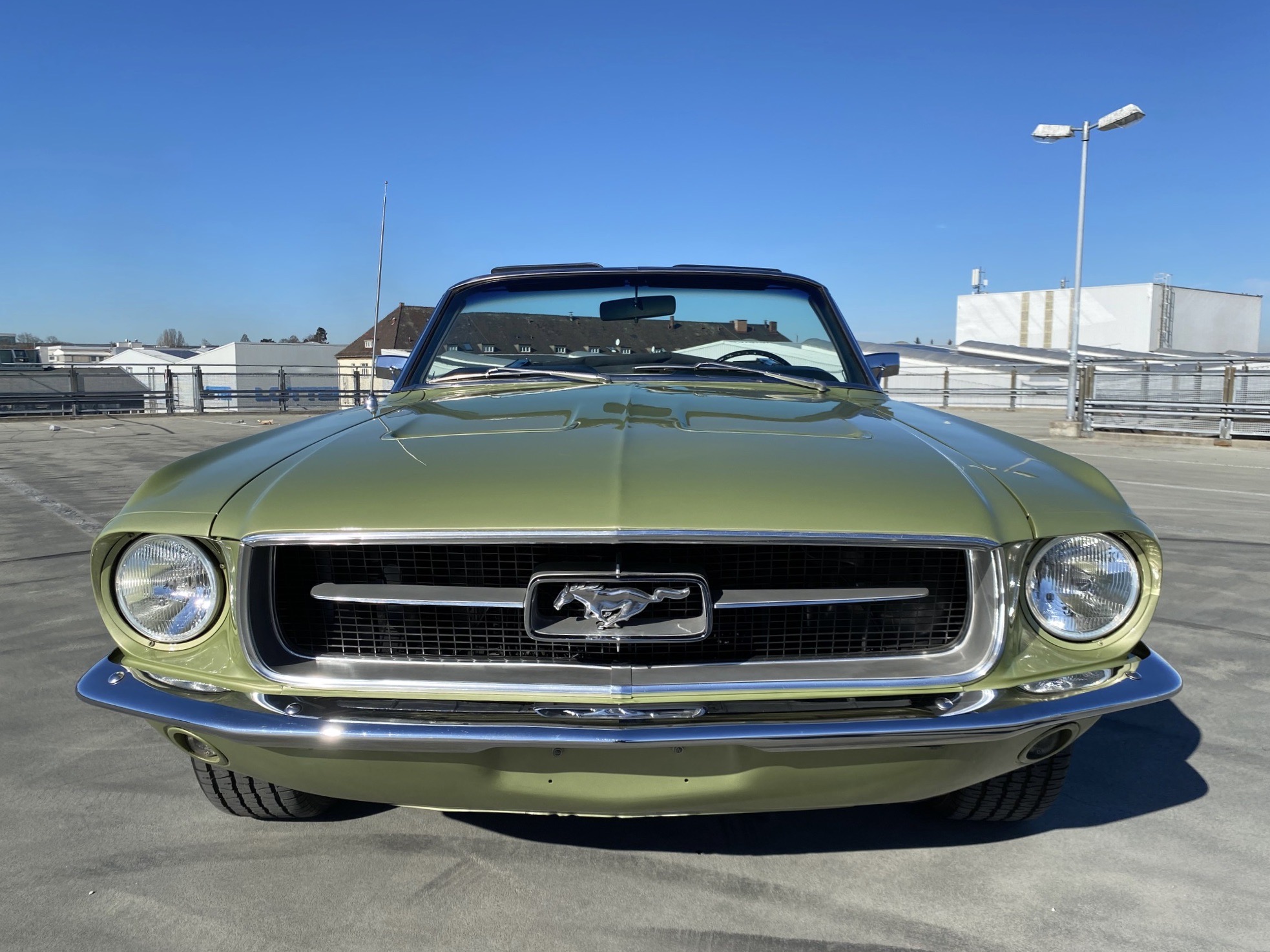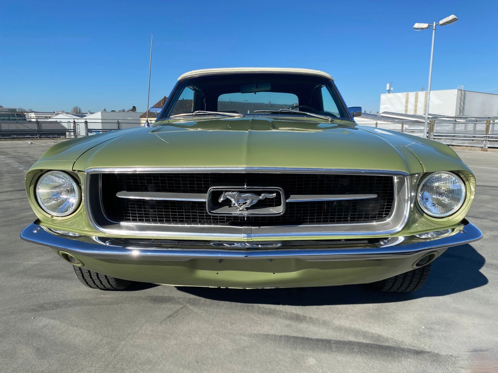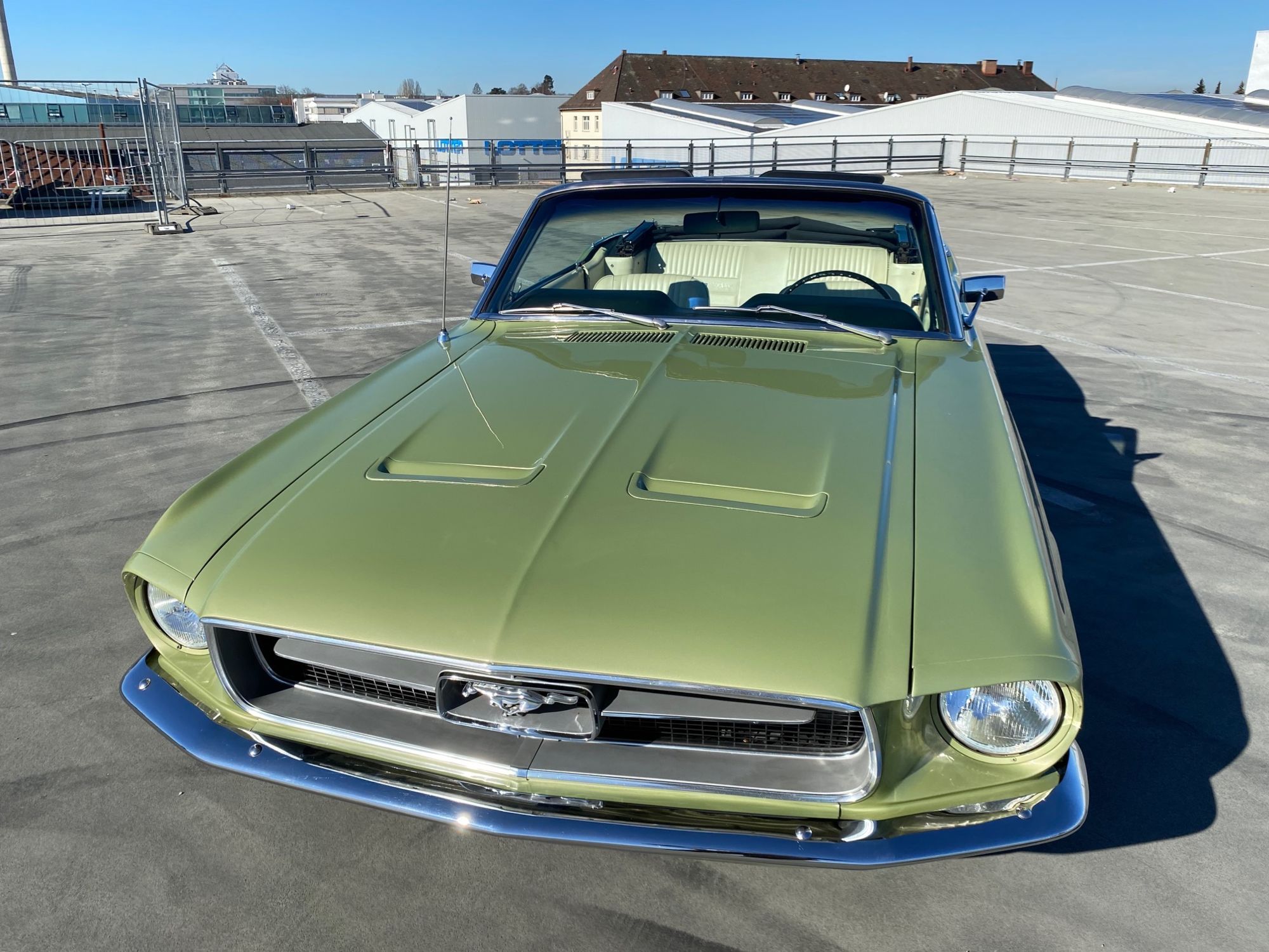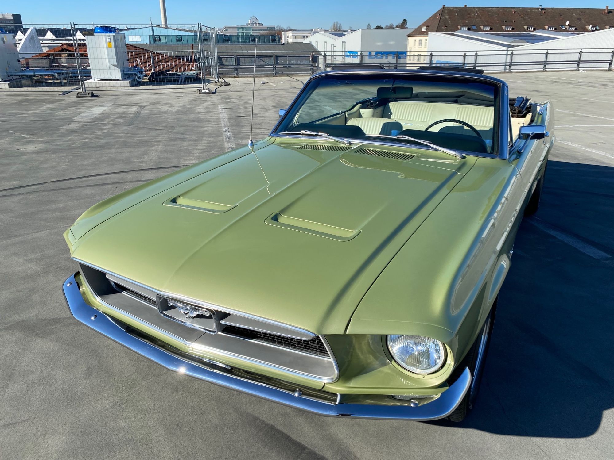 Helena ist eine exklusive Pony-Dame die jeglichen Luxus zu bieten hat. Super schöne Lackierung in der originalen Farbe "lime gold", ein nahezu neuwertiges, creme-weisses Verdeck, eine toll erhaltene, abgestimmte Pony-Ausstattung Ton in Ton und perfekte Chromteile dazu, dies nur zum Thema Optik. Technisch gesehen fehlt ebenso nichts, die edle Dame hat Servolenkung, Power Brakes, ein elektrisches Verdeck und sogar eine Klimaanlage. Auch Geräusch-technisch ist Helena ganz vorne, die Doppelrohr-Auspuffanlage fabriziert einen absolut umwerfenden Sound. Der Sommer kann kommen.