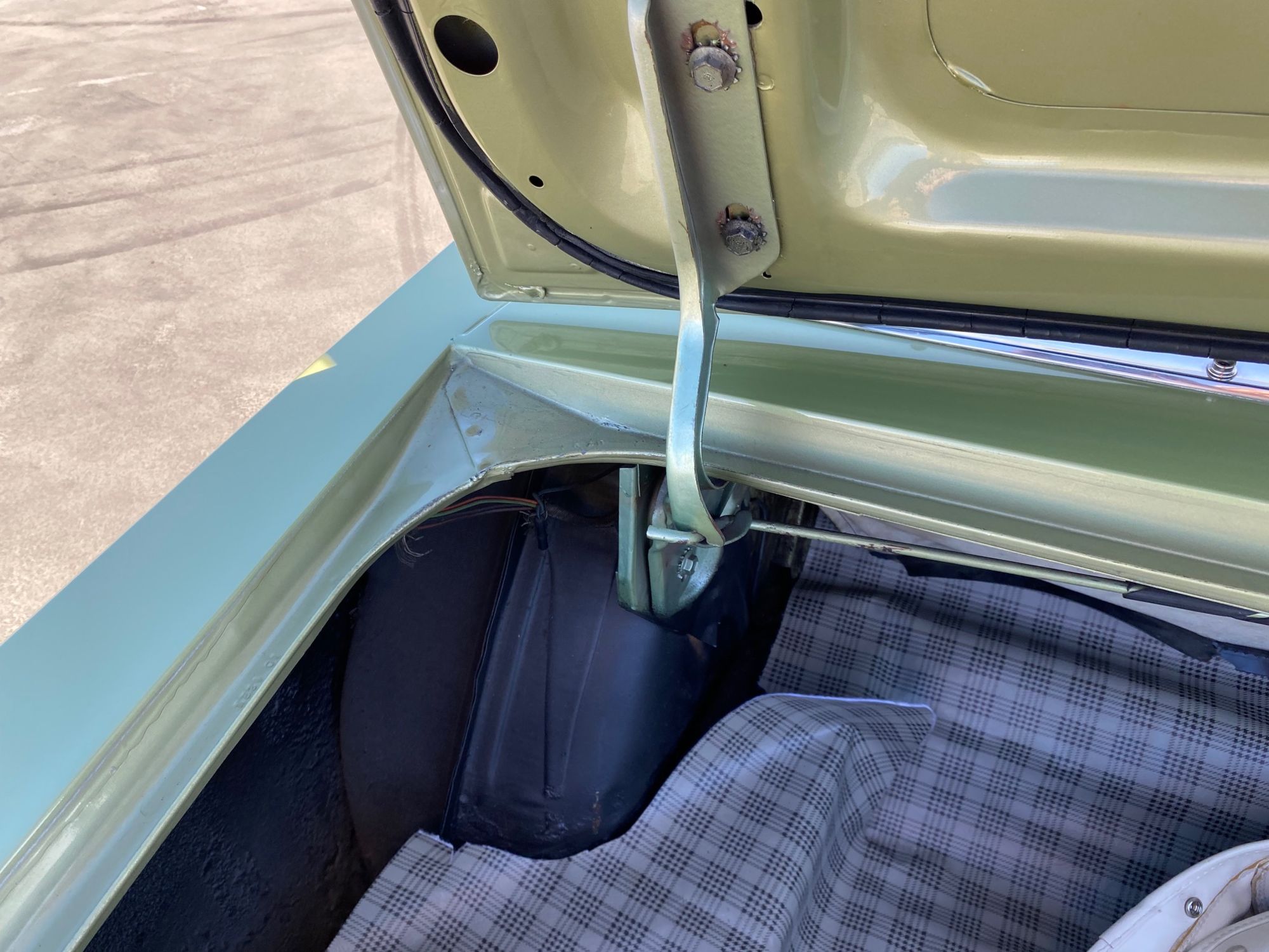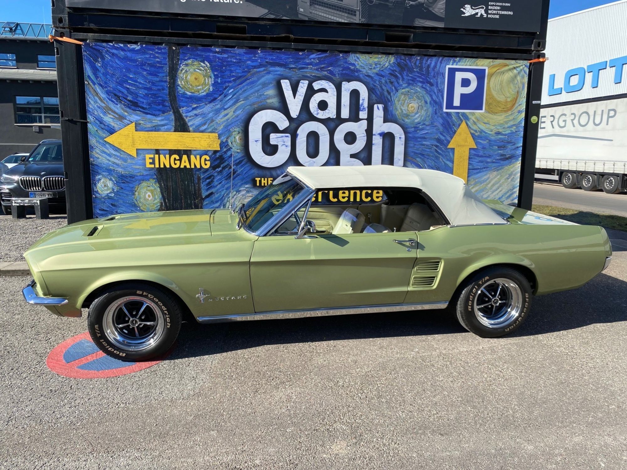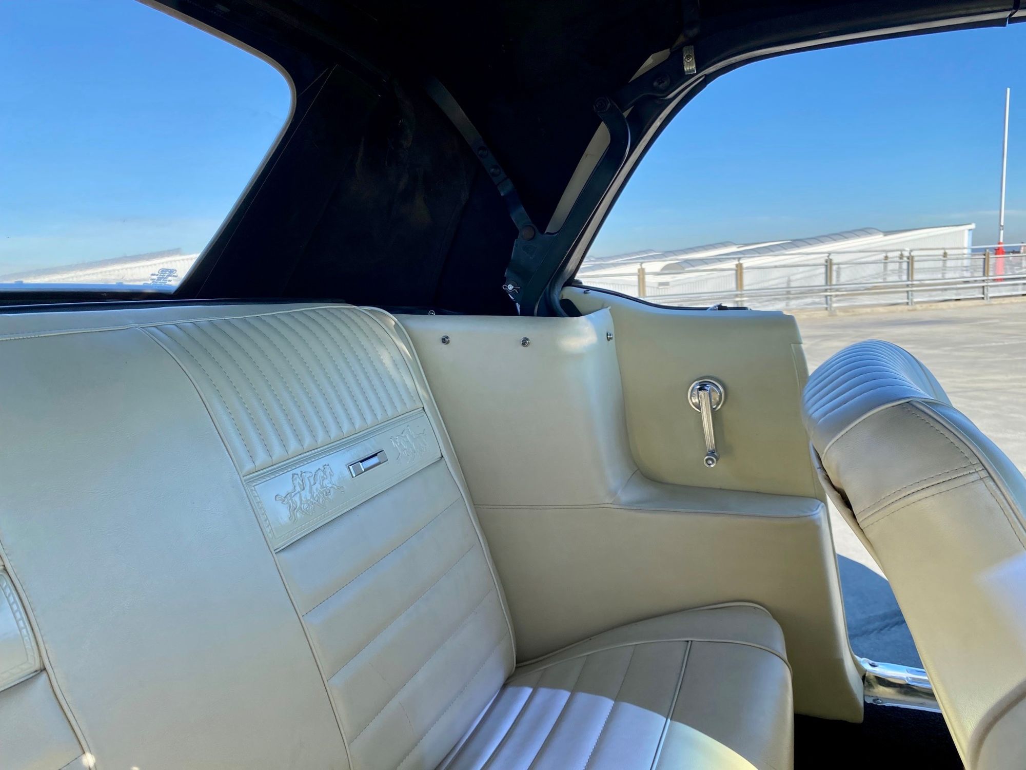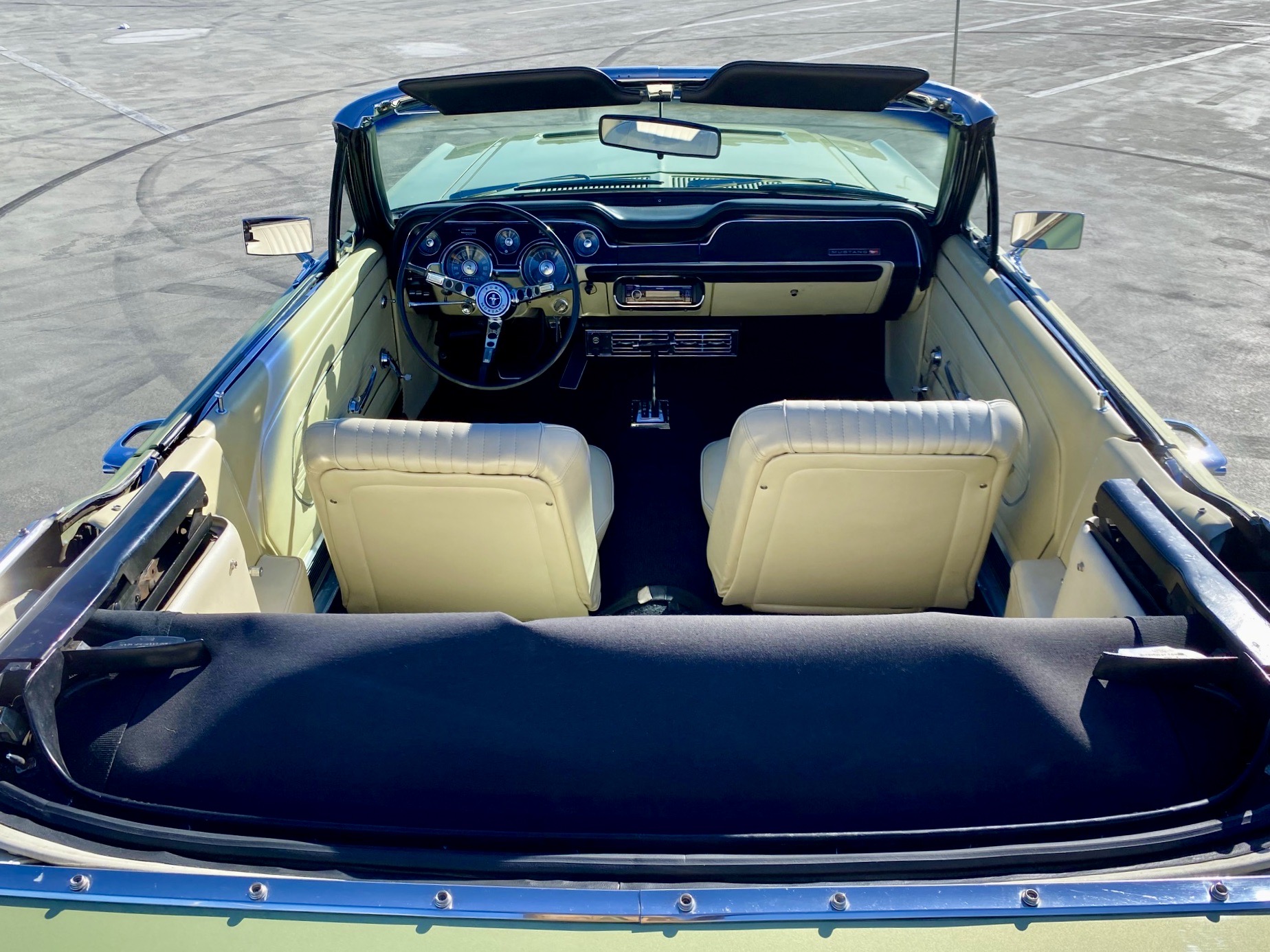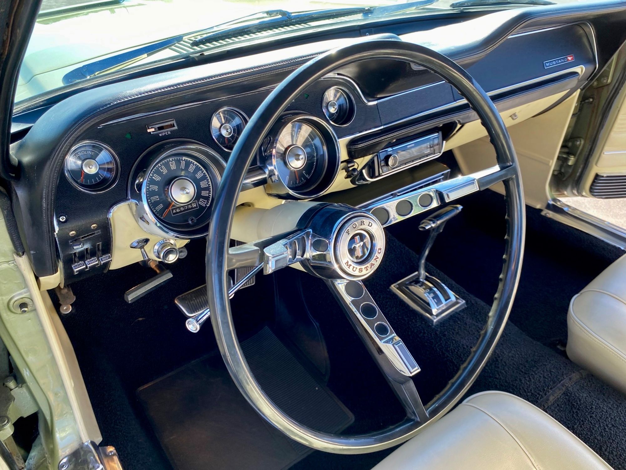 Helena ist eine exklusive Pony-Dame die jeglichen Luxus zu bieten hat. Super schöne Lackierung in der originalen Farbe "lime gold", ein nahezu neuwertiges, creme-weisses Verdeck, eine toll erhaltene, abgestimmte Pony-Ausstattung Ton in Ton und perfekte Chromteile dazu, dies nur zum Thema Optik. Technisch gesehen fehlt ebenso nichts, die edle Dame hat Servolenkung, Power Brakes, ein elektrisches Verdeck und sogar eine Klimaanlage. Auch Geräusch-technisch ist Helena ganz vorne, die Doppelrohr-Auspuffanlage fabriziert einen absolut umwerfenden Sound. Der Sommer kann kommen.