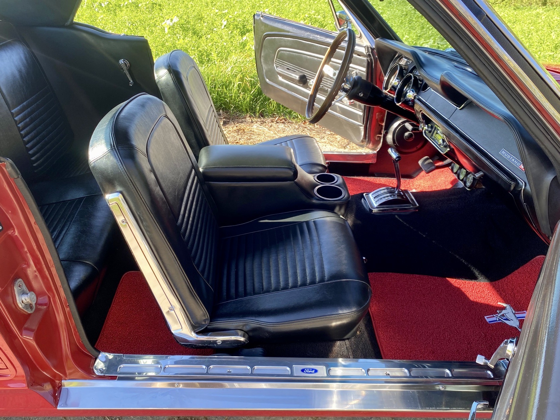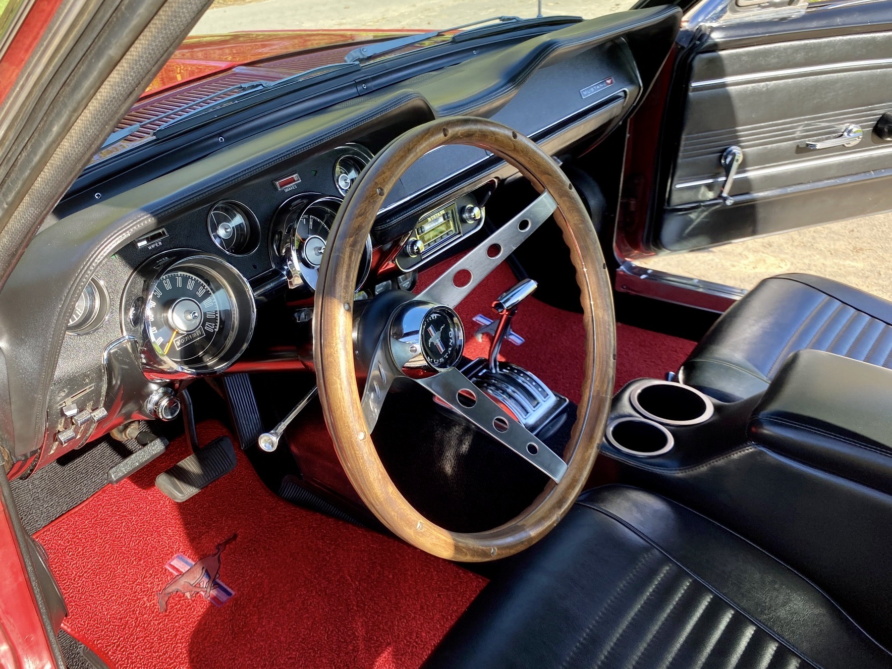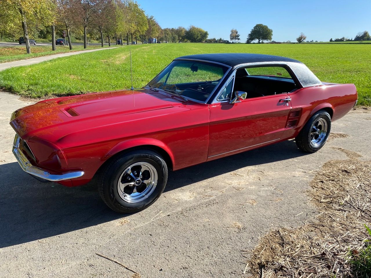 Unser Fuego hatte bereits ein neues Zuhause gefunden, nun muss er leider und traurigerweise aus gesundheitlichen Grüßen "weiter vermittelt" werden. Das Pony war ein langer Traum, er wurde mit Stolz und Freude gefahren, liebevoll gewartet, eine Sitzverlängerungs-Schiene wurde eingebaut. Automatik, Servolenkung, eine sehr gut erhaltene Innenausstattung mit feuerroten Fussmatten, Dashboard ohne Risse, glänzende Chromteile, Holzlenkrad, Mittelkonsole für große und kleine Getränke, Retro-Radio, perfekt erhaltenes Vinyldach, Motorhaube mit Luft-Hutzen, Doppelrohr-Auspuffanlage mit coolem Sound, Fuego hat ALLES. Und das absolute "I-Tüpfelchen" kommt beim Blick unter die Haube, da steckt sehr viel Liebe drin.