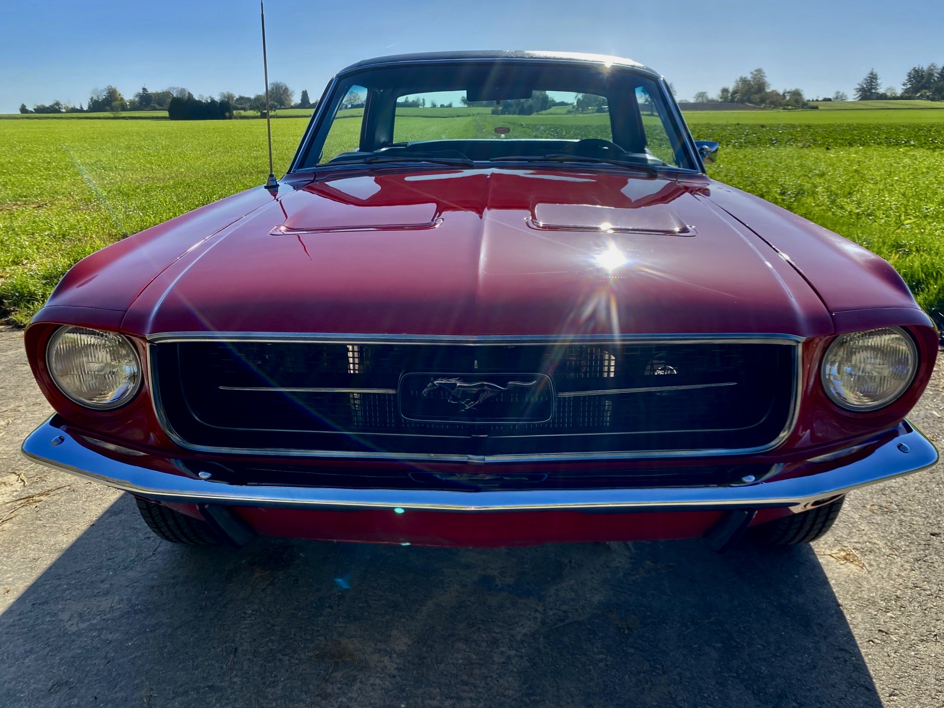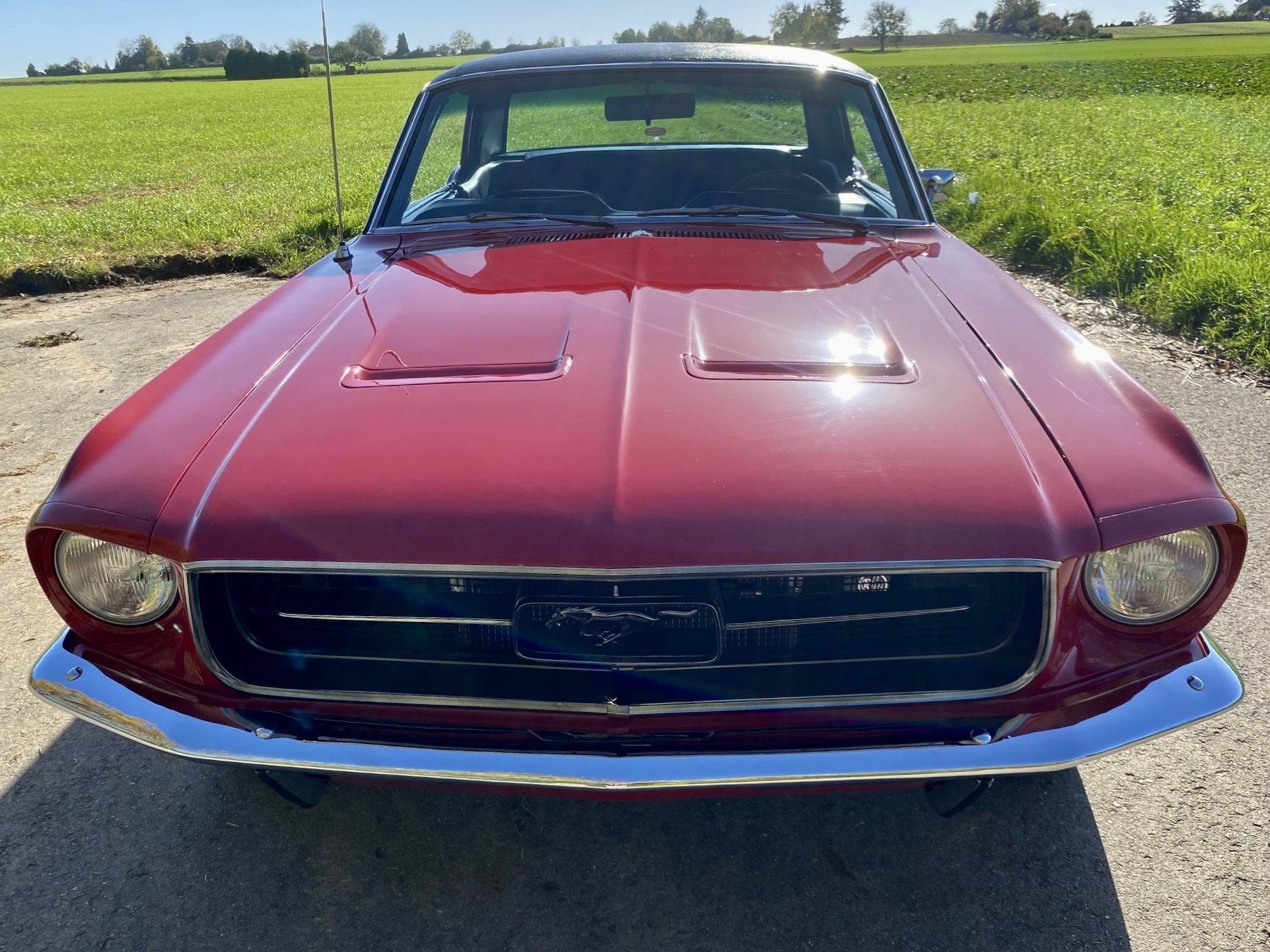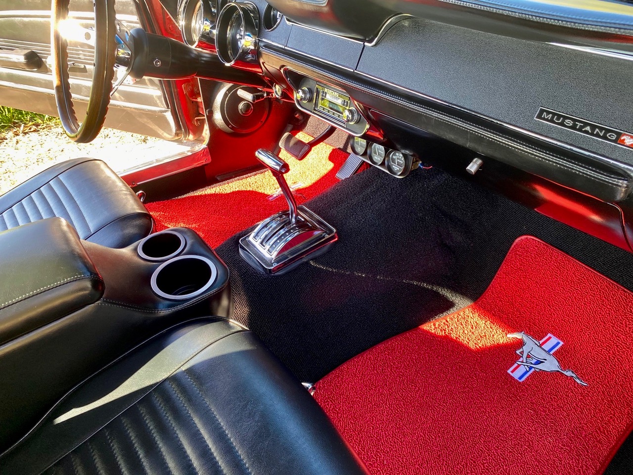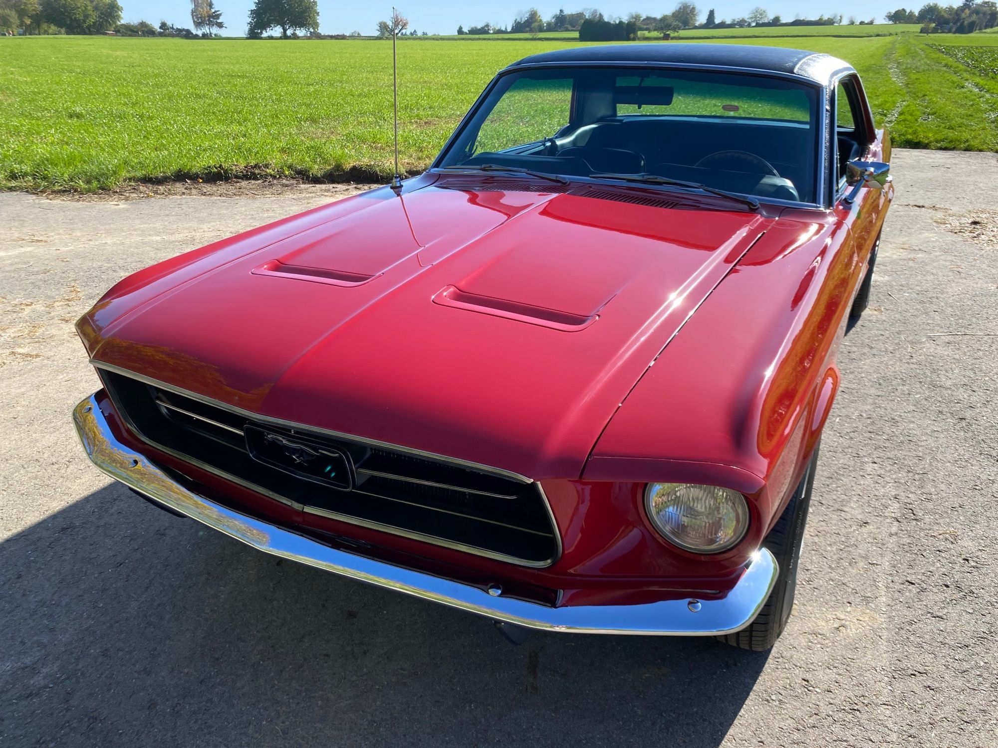 Unser Fuego hatte bereits ein neues Zuhause gefunden, nun muss er leider und traurigerweise aus gesundheitlichen Grüßen "weiter vermittelt" werden. Das Pony war ein langer Traum, er wurde mit Stolz und Freude gefahren, liebevoll gewartet, eine Sitzverlängerungs-Schiene wurde eingebaut. Automatik, Servolenkung, eine sehr gut erhaltene Innenausstattung mit feuerroten Fussmatten, Dashboard ohne Risse, glänzende Chromteile, Holzlenkrad, Mittelkonsole für große und kleine Getränke, Retro-Radio, perfekt erhaltenes Vinyldach, Motorhaube mit Luft-Hutzen, Doppelrohr-Auspuffanlage mit coolem Sound, Fuego hat ALLES. Und das absolute "I-Tüpfelchen" kommt beim Blick unter die Haube, da steckt sehr viel Liebe drin.