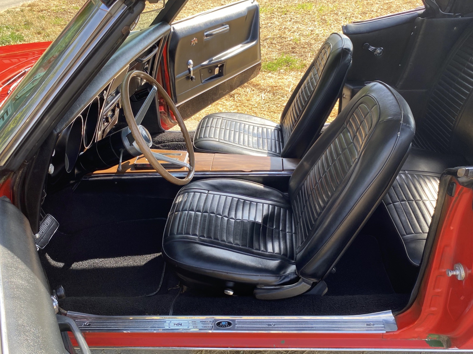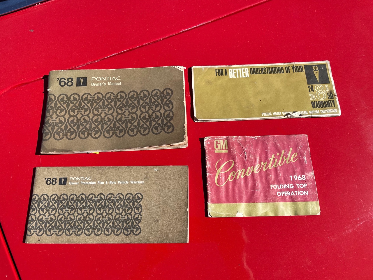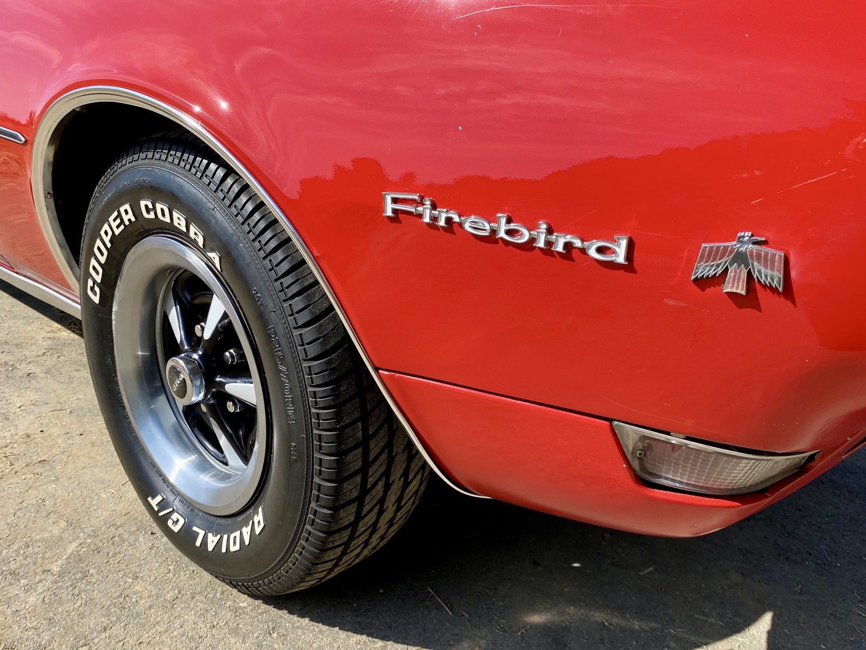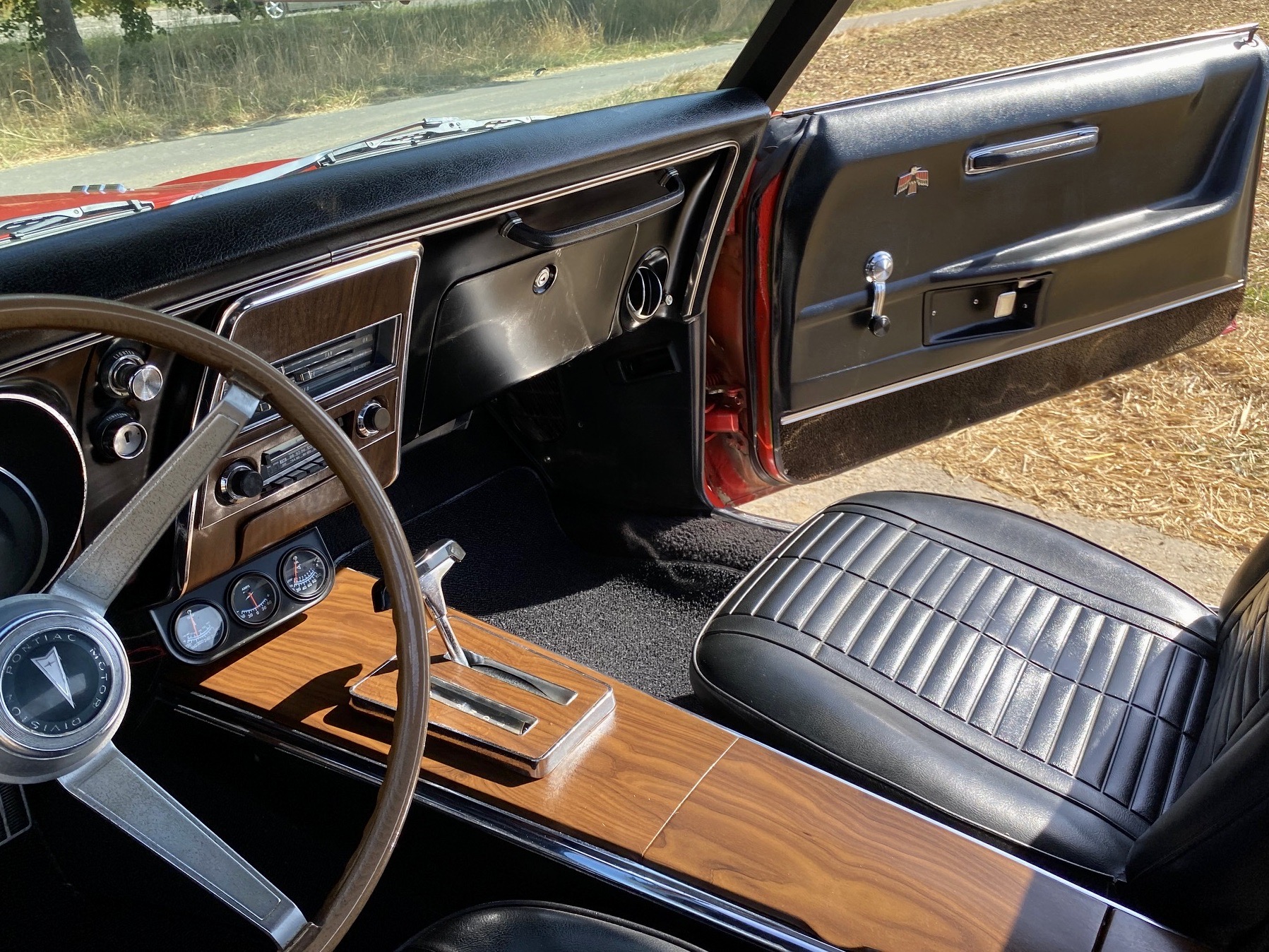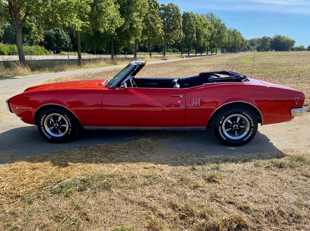 1968 Pontiac Firebird Cabrio mit 350 V8 Motor (matching numbers). Der Vorbesitzer hatte den Wagen 49 Jahre lang, die 98.000 Meilen sind laut seiner Aussage original, vermutlich hatte der Wagen wirklich nur 2 Besitzer. Technisch wurde viel investiert, Verschleissteile wie Stoßdämpfer und Dichtungen sind gewechselt, ein neuer Doppelrohr-Auspuff wurde eingebaut. Der rote Feuervogel hat nun TÜV, H-Zulassung und einen tollen Sound. Der Lack ist nichts für Perfektionisten, ganz sicher aber für Menschen die eine tolle Patina schön finden.