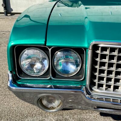 Das letzte Baujahr der dritten Generation, das gefragteste Modell dieser Baureihe, ein originaler 1972er Oldsmobile Cutlass Supreme den man so nicht mehr findet. Laut unseren Nachforschungen wurden damals nur 7.800 Fahrzeuge hergestellt, sehr wenige davon haben überlebt. Ein besonderer Surviver in seltenem, grünen Frack, absolut original. Dieser Dino durfte im Jahr 2022 seinen 50-sten Geburtstag feiern. Das Herz ist ein original 350er V8 Motor mit originalen Antriebsstrang dazu gibt es eine Servolenkung, Scheibenbremsen vorne, ein neuer Doppelrohr-Auspuff mit super Sound. In die Technik wurde allgemein sehr viel Geld investiert.