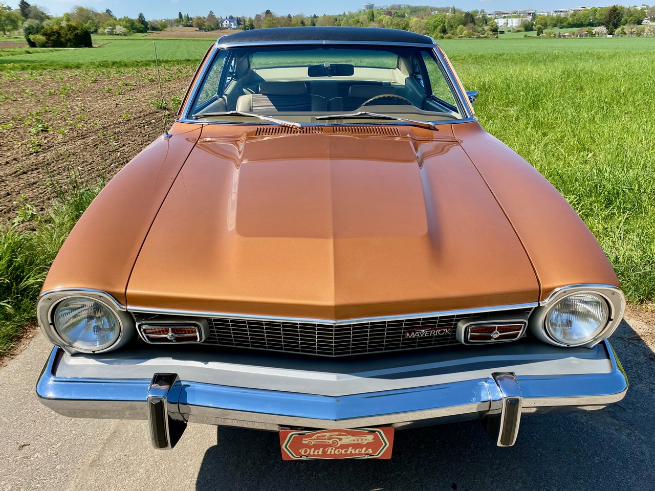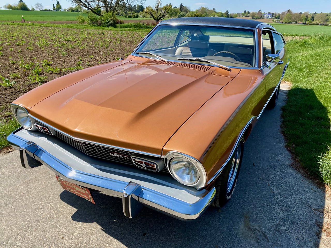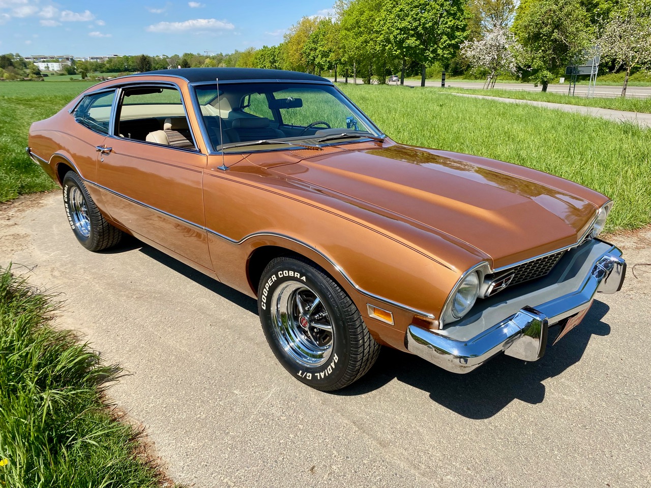 Dieser seltene Bub kommt aus Tennessee, mit originalen 53.121 Meilen, 302 V8 matching numbers, nachweisbar nur ein Eigentümer, die Historie hat er mitgebracht. Lackiert in der Originalfarbe "medium copper metallic" mit original schwarzem Vinyldach, genau so ist er 1973 vom Band gelaufen. Auch die Innenausstattung ist original, ein tolles creme mit tri-tone Muster. Dazu noch Servolenkung und ein wunderschön blubbernder Doppelrohr-Auspuff. Absolut seltenes Sammlerstück, ein tolles Pony, Oldschool vom Feinsten und Fastback mal anders.