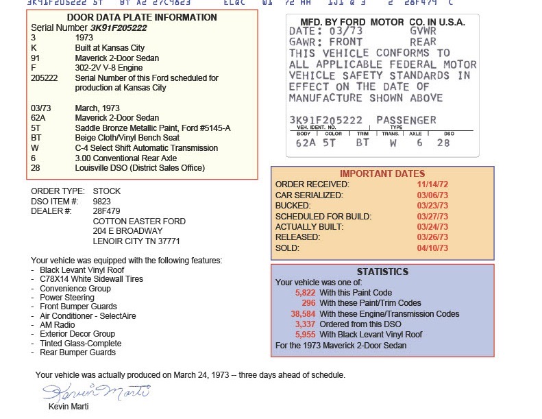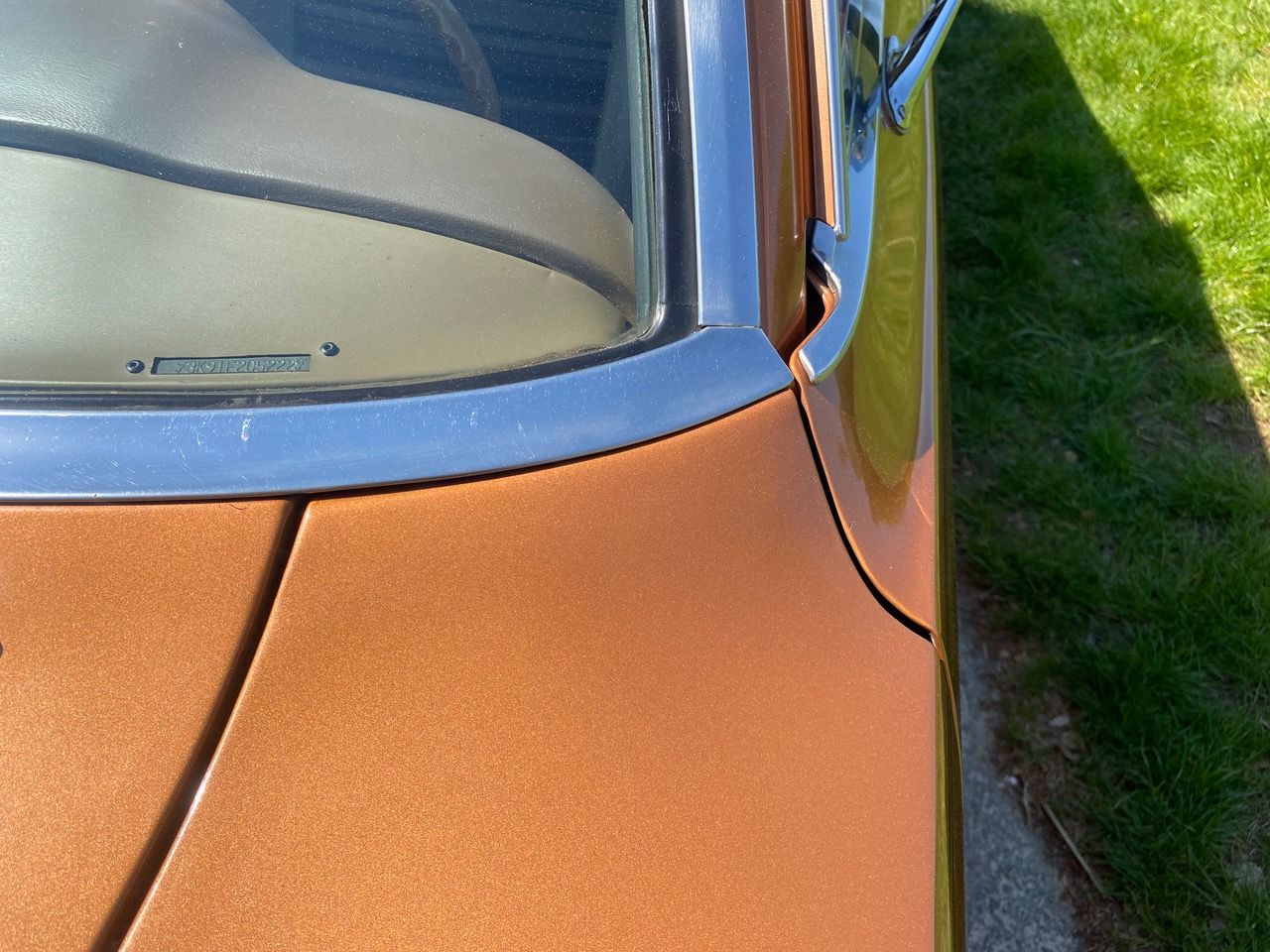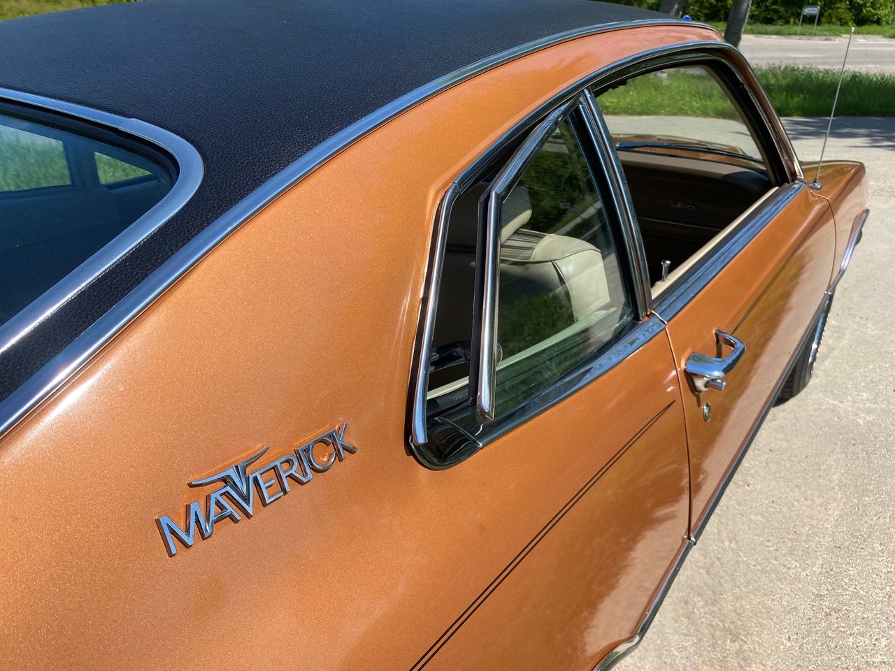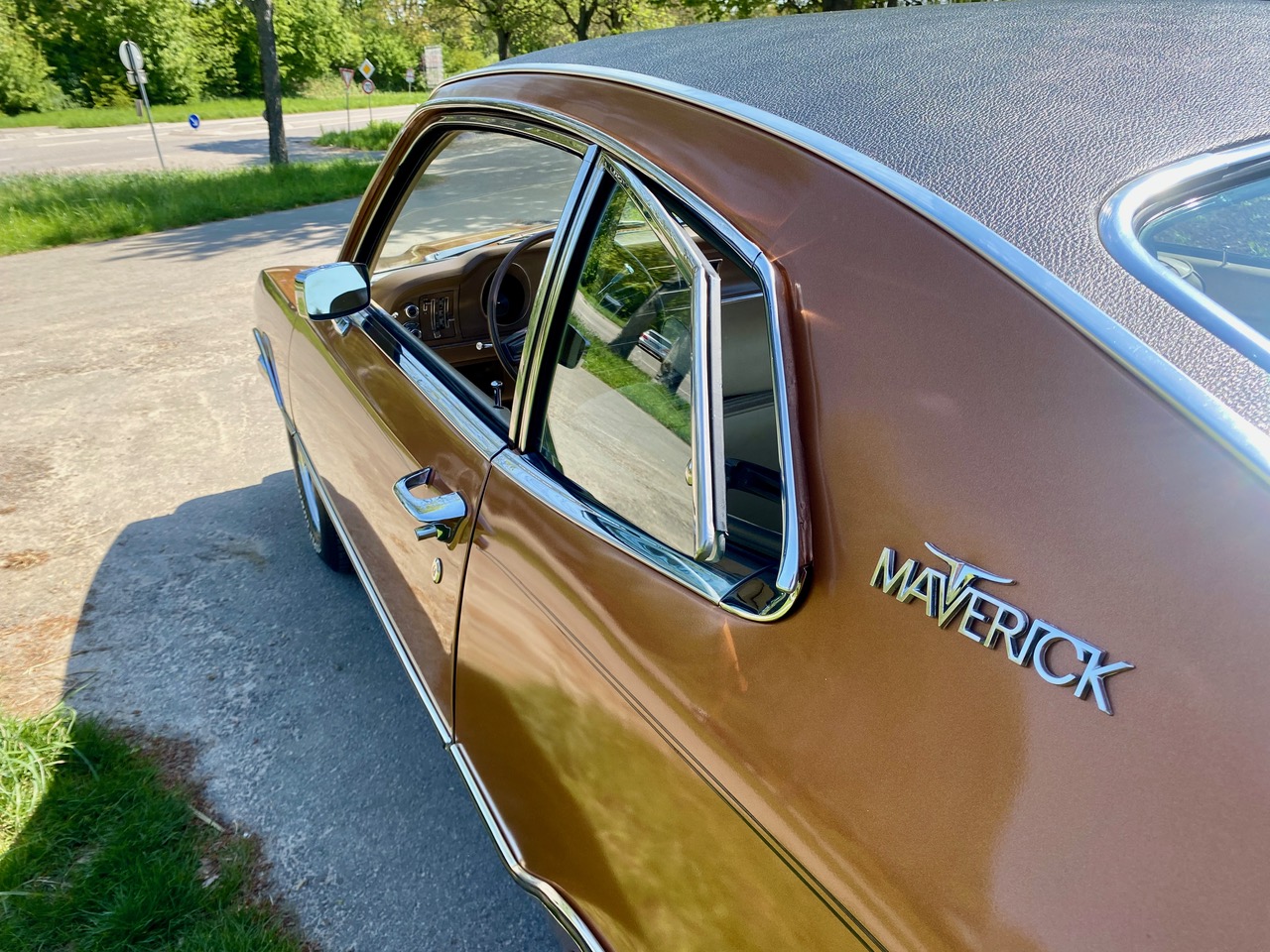 Dieser seltene Bub kommt aus Tennessee, mit originalen 53.121 Meilen, 302 V8 matching numbers, nachweisbar nur ein Eigentümer, die Historie hat er mitgebracht. Lackiert in der Originalfarbe "medium copper metallic" mit original schwarzem Vinyldach, genau so ist er 1973 vom Band gelaufen. Auch die Innenausstattung ist original, ein tolles creme mit tri-tone Muster. Dazu noch Servolenkung und ein wunderschön blubbernder Doppelrohr-Auspuff. Absolut seltenes Sammlerstück, ein tolles Pony, Oldschool vom Feinsten und Fastback mal anders.