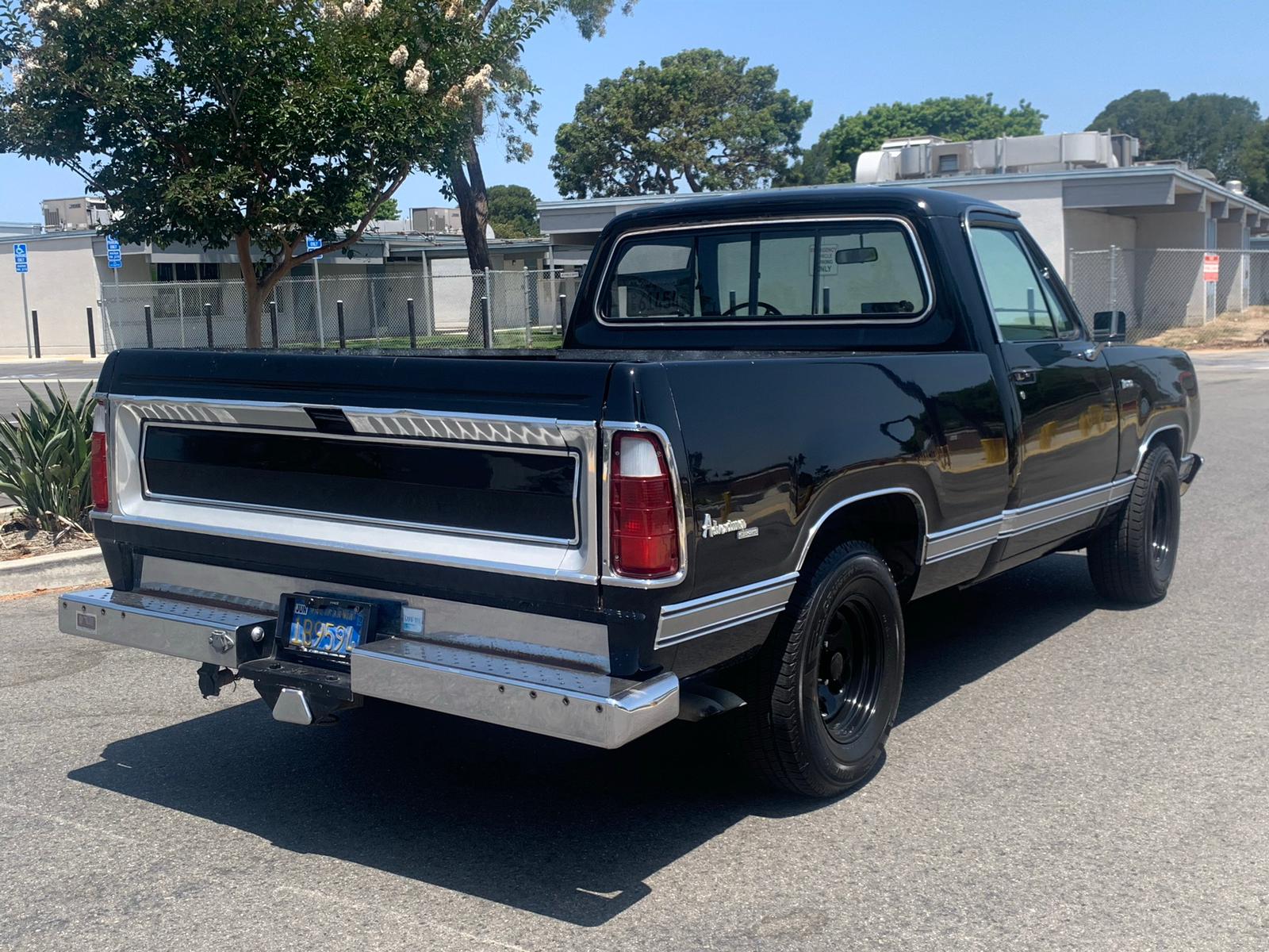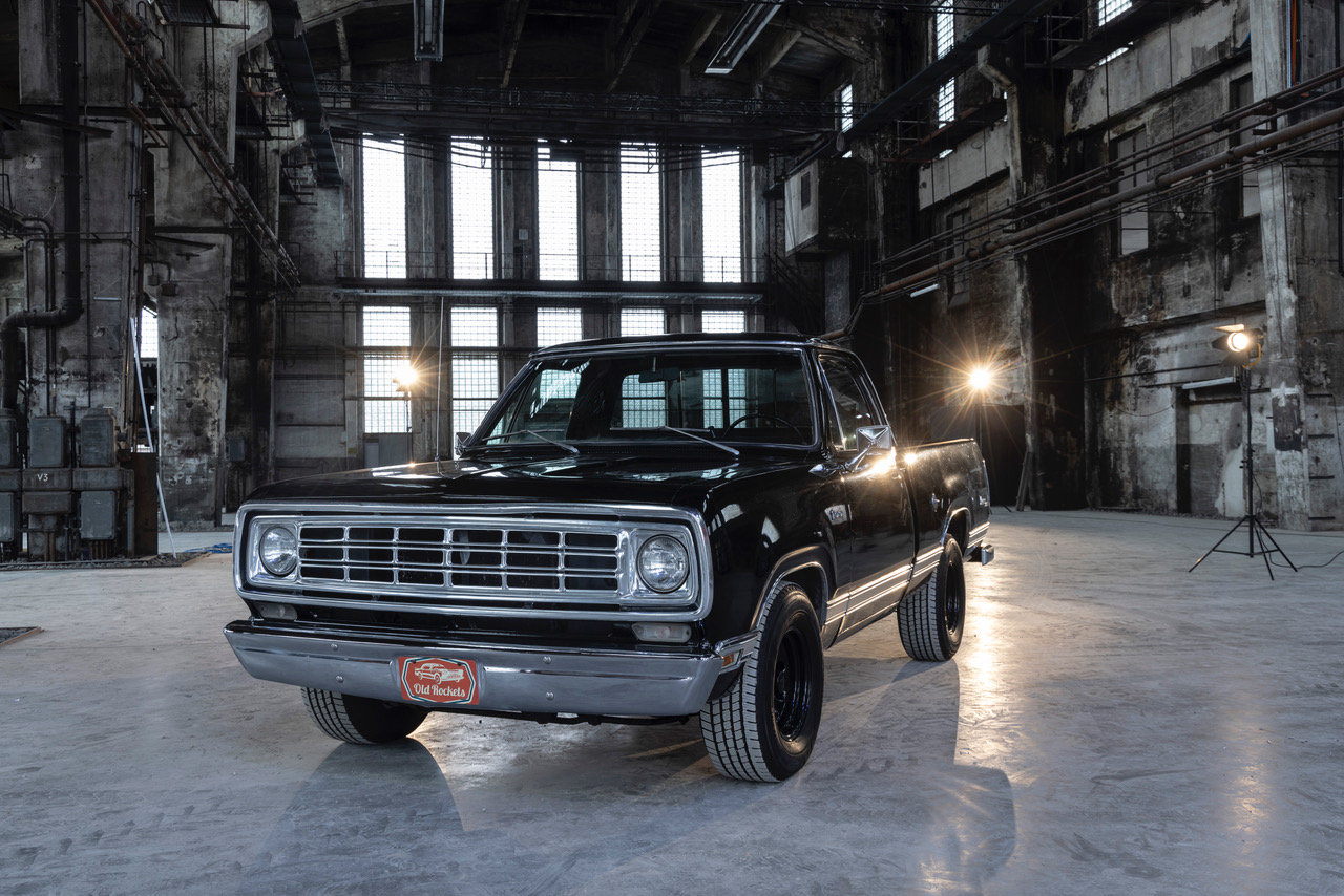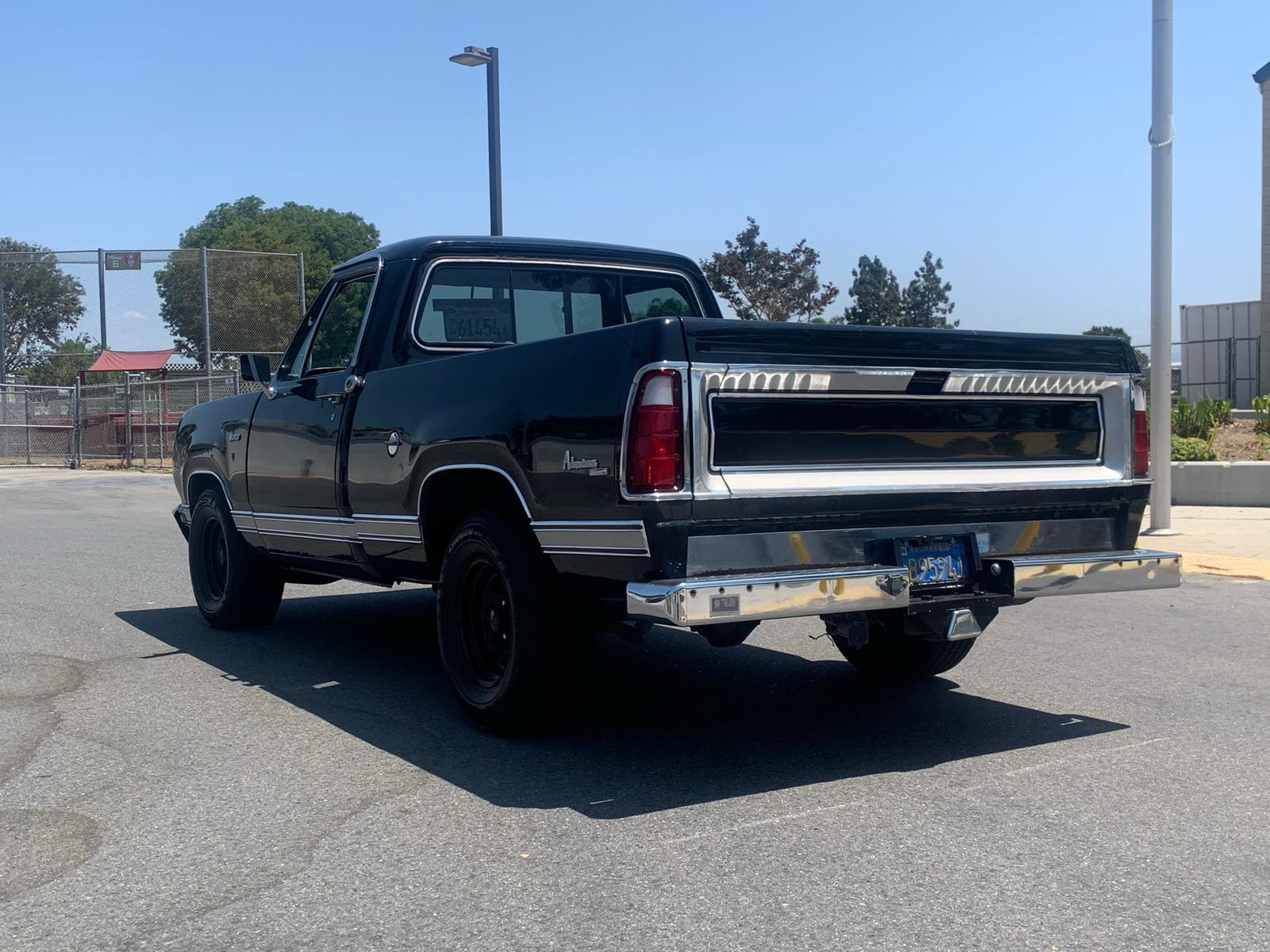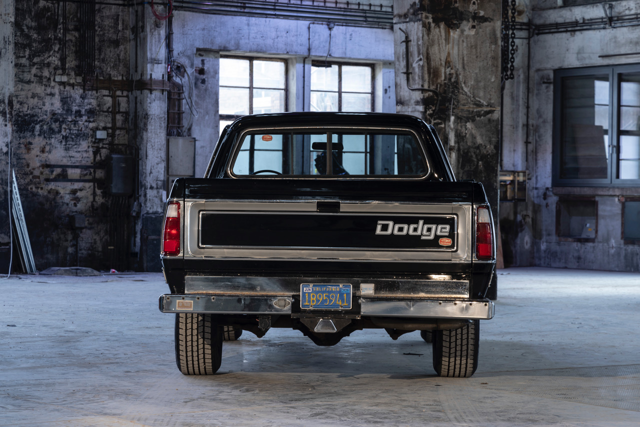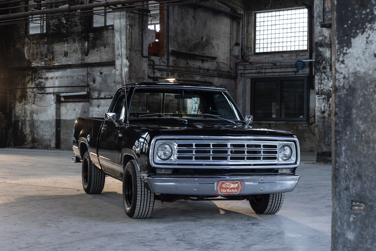 Pick Up Fans, V8-Fans aufgepasst, hier haben wir einen einmaligen 1976 Dodge D100 mit originalem 440 cui V8 Motor, original short bed, geboren in original schwarz. Black in Black, gefunden in Santa Maria, Kalifornien. Nur mit Überredungskunst durften wir den seltenen Wagen aus der Scheune entführen. Dem trockenen Klima und guter Pflege hat er es sicherlich zu verdanken dass er noch immer so gut in Form ist. Schwarz, kurz, Automatik, der 7,2 Liter V8 mit ca. 258 PS geht ab wie Schnitzel und dazu gibt es einen geilen Sound. Scooby ist ein "black beauty".