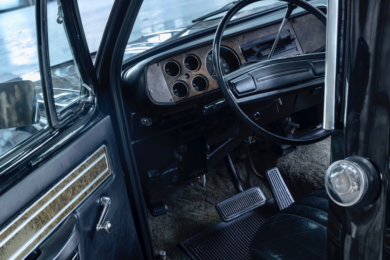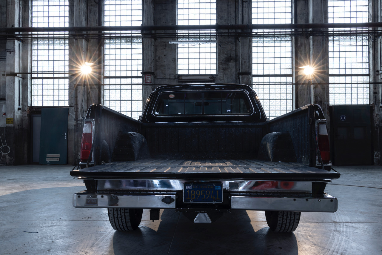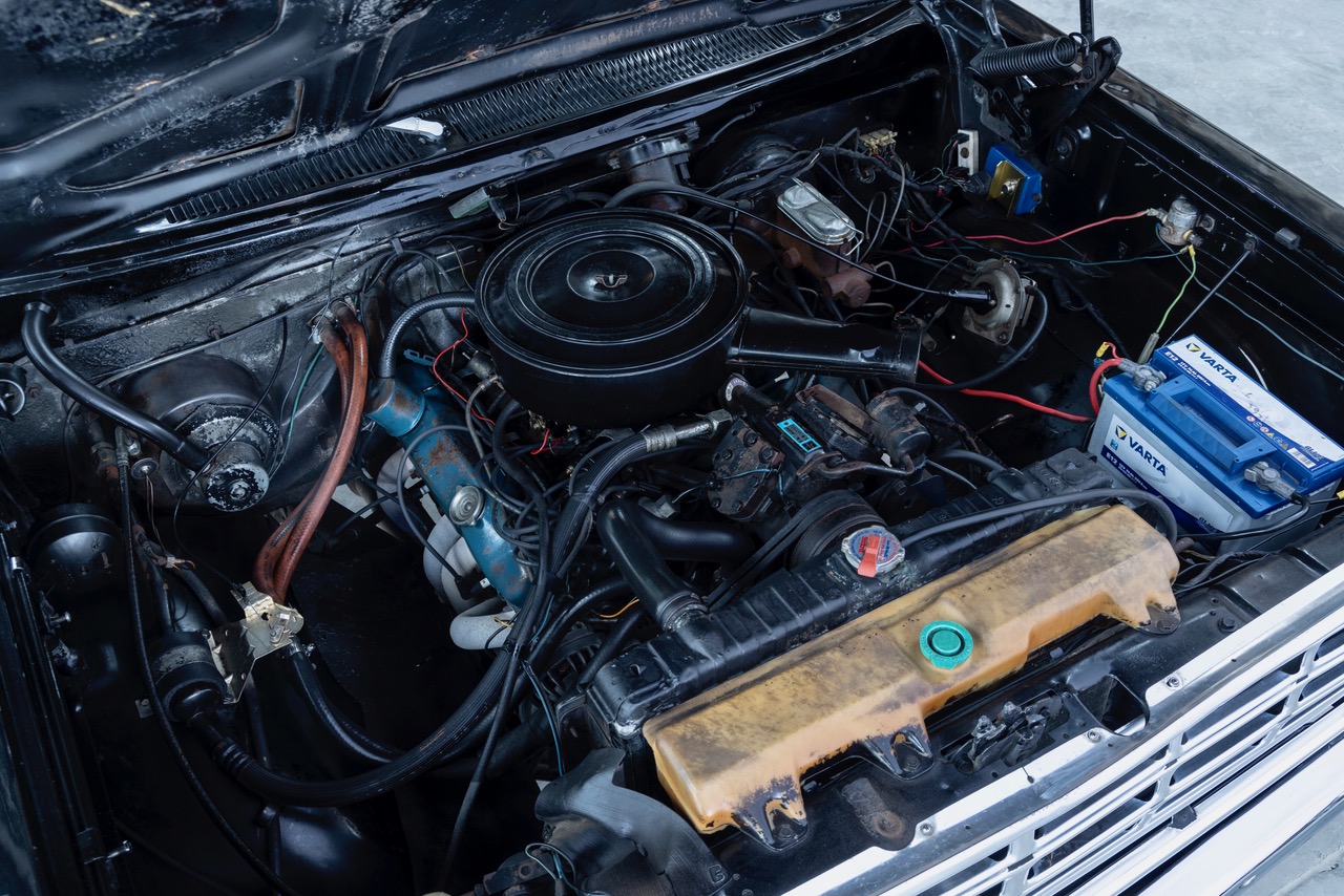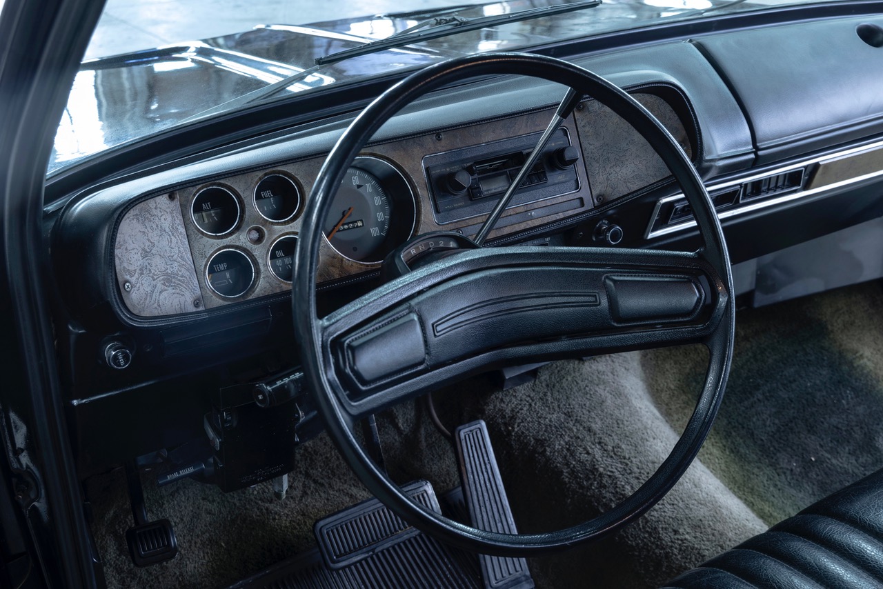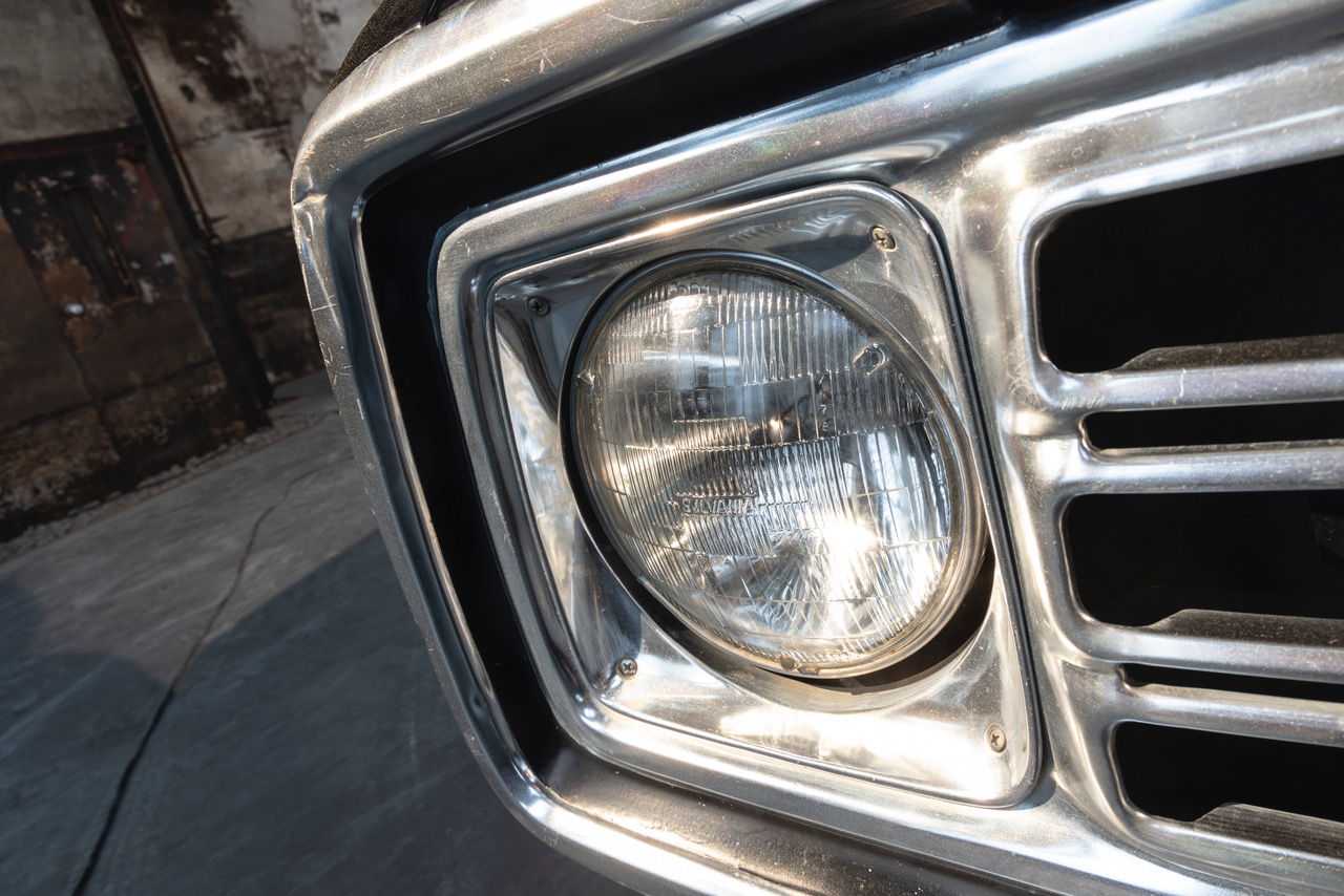 Pick Up Fans, V8-Fans aufgepasst, hier haben wir einen einmaligen 1976 Dodge D100 mit originalem 440 cui V8 Motor, original short bed, geboren in original schwarz. Black in Black, gefunden in Santa Maria, Kalifornien. Nur mit Überredungskunst durften wir den seltenen Wagen aus der Scheune entführen. Dem trockenen Klima und guter Pflege hat er es sicherlich zu verdanken dass er noch immer so gut in Form ist. Schwarz, kurz, Automatik, der 7,2 Liter V8 mit ca. 258 PS geht ab wie Schnitzel und dazu gibt es einen geilen Sound. Scooby ist ein "black beauty".