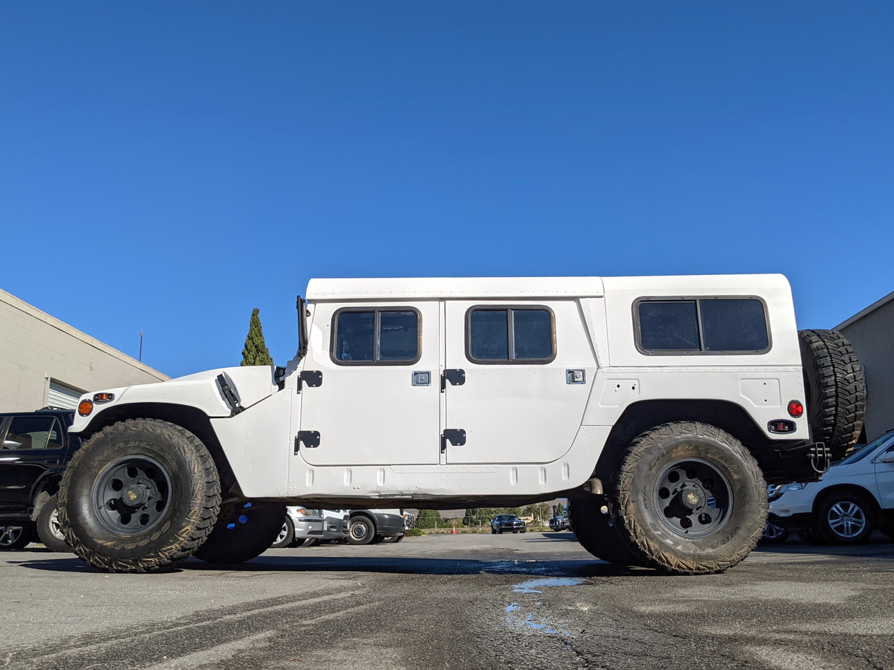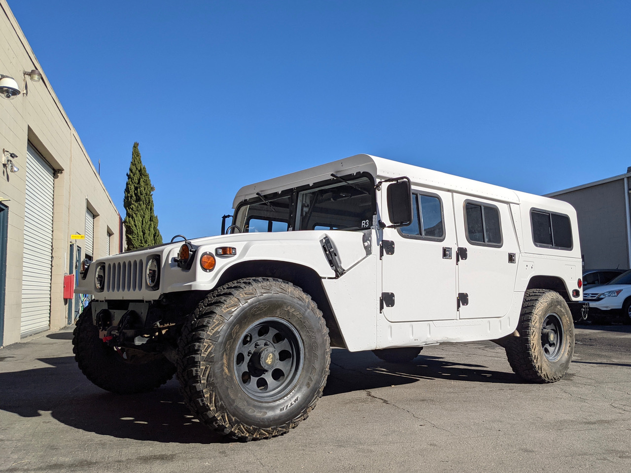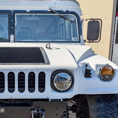 Hier kommt James, ein sehr seltener und besonderer 1986 AM General in weiss, in Kalifornien sehr bekannt als Retter, er war das "Search & Rescue Vehicle" beim County Sheriff. Ausgestattet für alle Fälle, mit einzigartigen Optionen wie hydraulische Seilwinde, Kompressor, Meilen-Marker, verbessertem Getriebe, Überroll-Käfig, Schalensitzen, Rückfahrkamera, diversen Leuchten und viel Charme wartet er nun gespannt auf neue Einsätze. Sich fast auf der Stelle drehen, durch Matsch fahren oder Berge erklimmen kann er selbstverständlich auch, er könnte er sogar als Luxus-Humvee dienen.