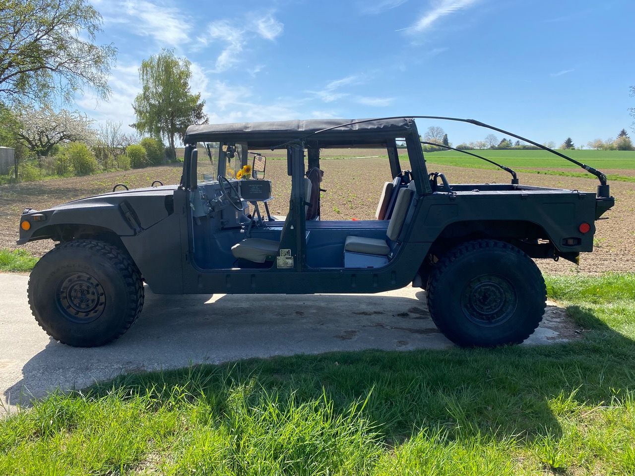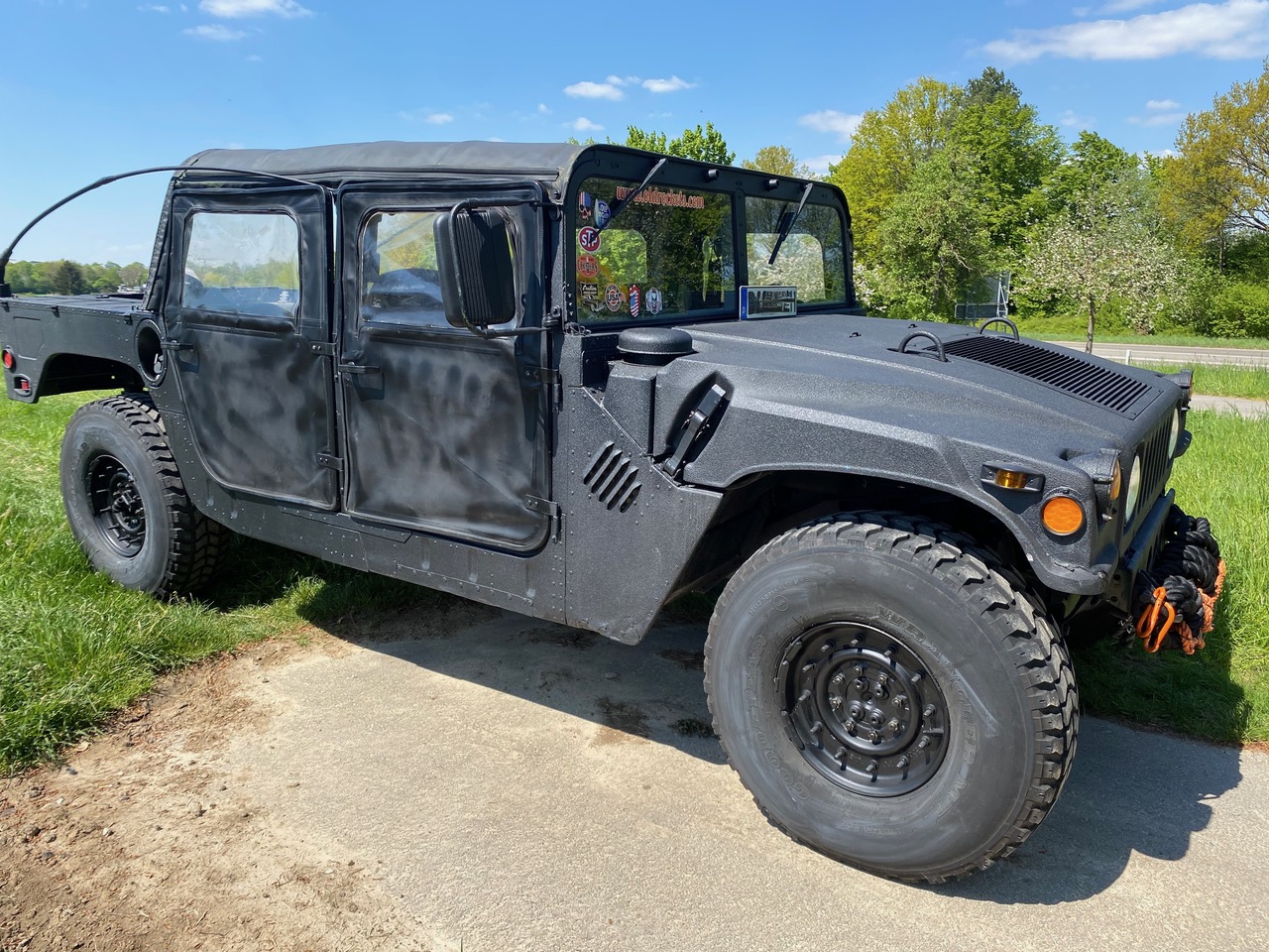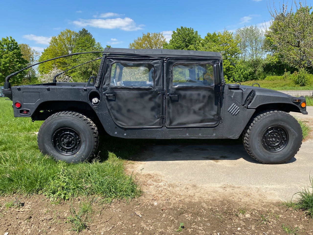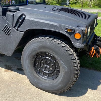 Hummvee´s gibt es einige, es gibt aber vermutlich wenige die zuverlässig sind und bereits TÜV & H-Zulassung besitzen. Sicherlich gibt es auch wenige in schwarz. Dieser Kumpel wurde bereits in USA komplett mit Rhino-liner in Nashornfarbe bearbeitet, deswegen haben wir dieses Rhinozeros "Rhino" getauft. 1988 AM General M998, Humvee, HMMWV, im Volksmund auch H1 genannt. Auch dieser hat, wie alle Humvee´s Einzelradaufhängung, Portalachsen und Inboard-Bremsen. Damit fährt er überall hin, hoch, runter und wenn es sein muss - auch durch. Zulassungsfertig, legal für die Strasse und bereit für jedes Abenteuer.