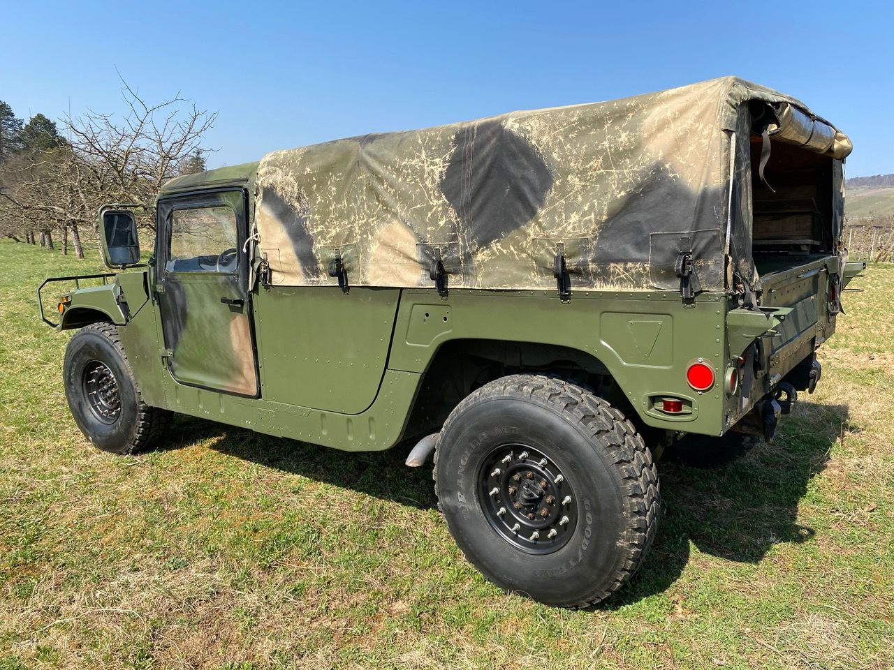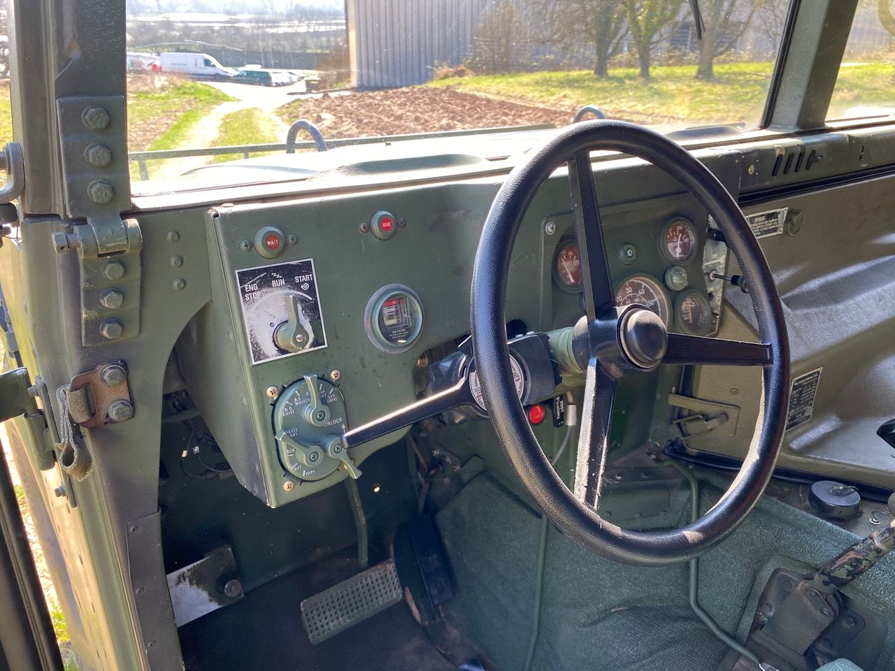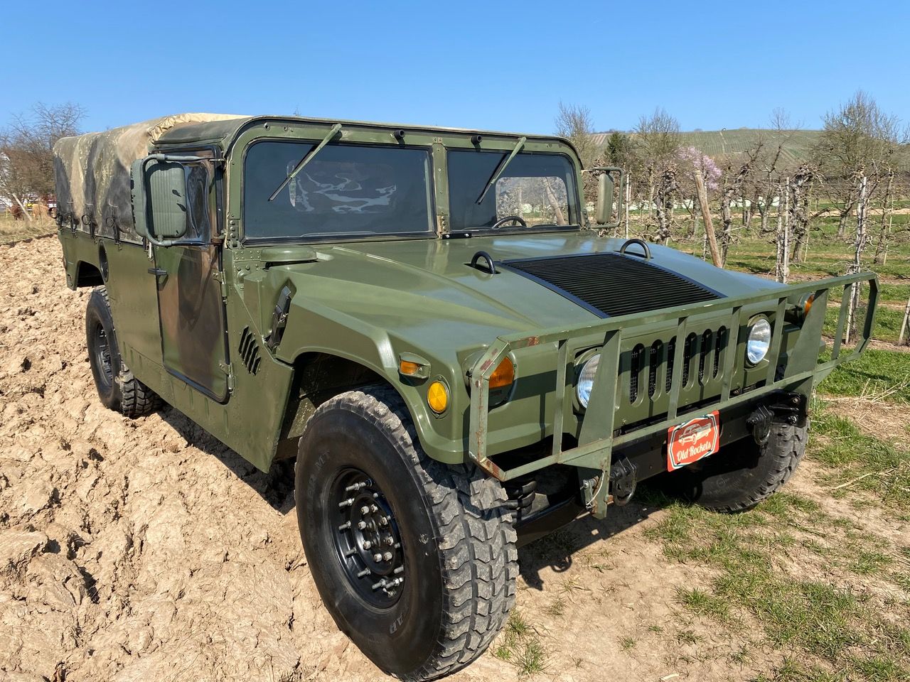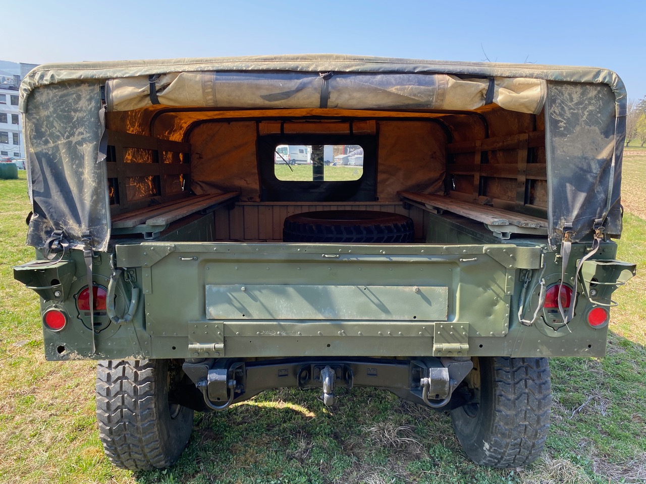 Mad Max, ein 1987 AM General M998, Humvee, HMMWV. Dieser Bub hat eine originale "troop carrier bench" (für 8 Personen) und ein Cargo Cover mit Gestänge mitgebracht, somit ist das eigene Zelt immer mit dabei. Die Plane sowie die Seitenwände aus Holz und die Sitzbänke können abgenommen werden. In der Fachwerkstatt gab es eine komplette Durchsicht, einen neuen Tank, eine neue Bremsanlage, eine Komplettüberholung des Lenkgestänges, dazu noch TÜV, Oldtimerzulassung und vieles mehr. Zulassungsfertig, legal für die Strasse und bereit für alle Späße in Matsch, Schnee und Gelände.