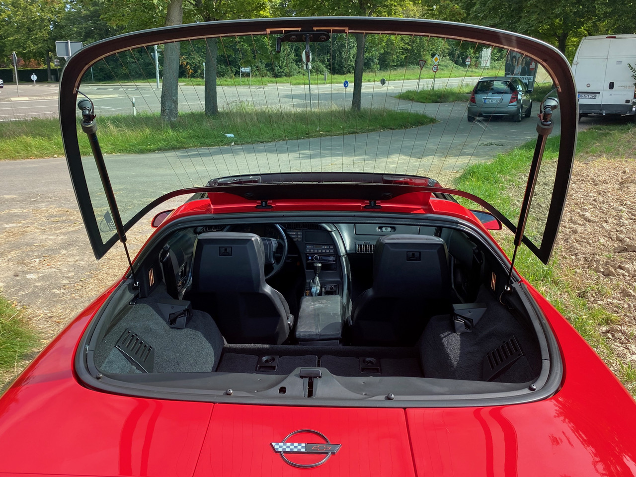 Tolle, rote, sehr gepflegte Vette mit einer absolut sauberen Veste, Carfax mit nachweisbar 3 Vorbesitzern, 68.000 originale Meilen, unfallfrei. Neuwertige ride control Dämpfer, neue Bremsbeläge, neuwertige Reifen. Anmelden und los, mit ca. 245 PS, Automatik, Servolenkung, Leder-Lenkrad, Leder-Vollausstattung, elektrische Fensterheber, elektrische Sitzeinstellung, Zentralverriegelung, alles dran. TÜV und Oldtimer-Zulassung sind gemacht, im Preis inklusive, dazu noch die schriftliche Erlaubnis, ein kleines Nummernschild zu ergattern.