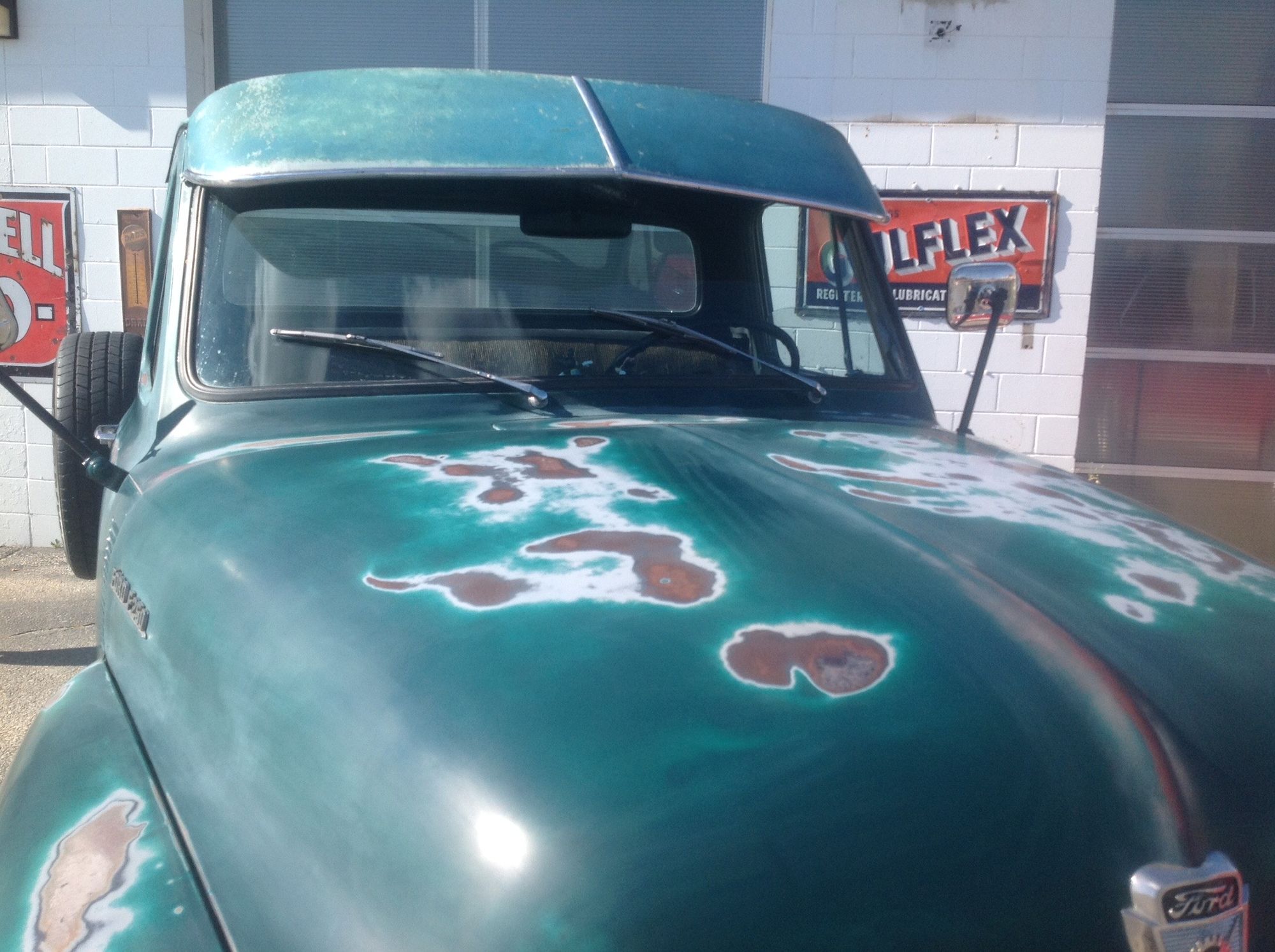 Über diesen Bub können wir einiges berichten. Einige Jahre hat der Truck in Iowa bei einem Auto-Händler verbracht, dort wurde er mit 59.000 Meilen gekauft, gefahren und gewartet. 2015 durfte er nach Deutschland reisen. Technisch ist seither viel gemacht worden, die originale Patina wurde mit einer kompletten Folie konserviert. Ohne Probleme könnte man ihn wieder in den "alten" Zustand versetzen, wir zeigen daher auch beide looks. Aber egal in welchem outfit, das Herz bleibt ein seltener 272 Y-Block V8 Motor und Mr Pepper ist definitiv etwas Besonderes.