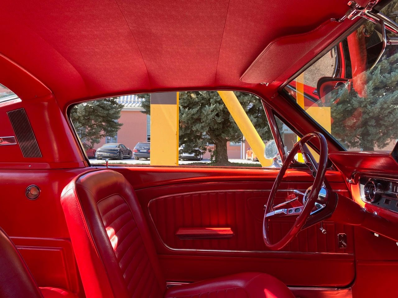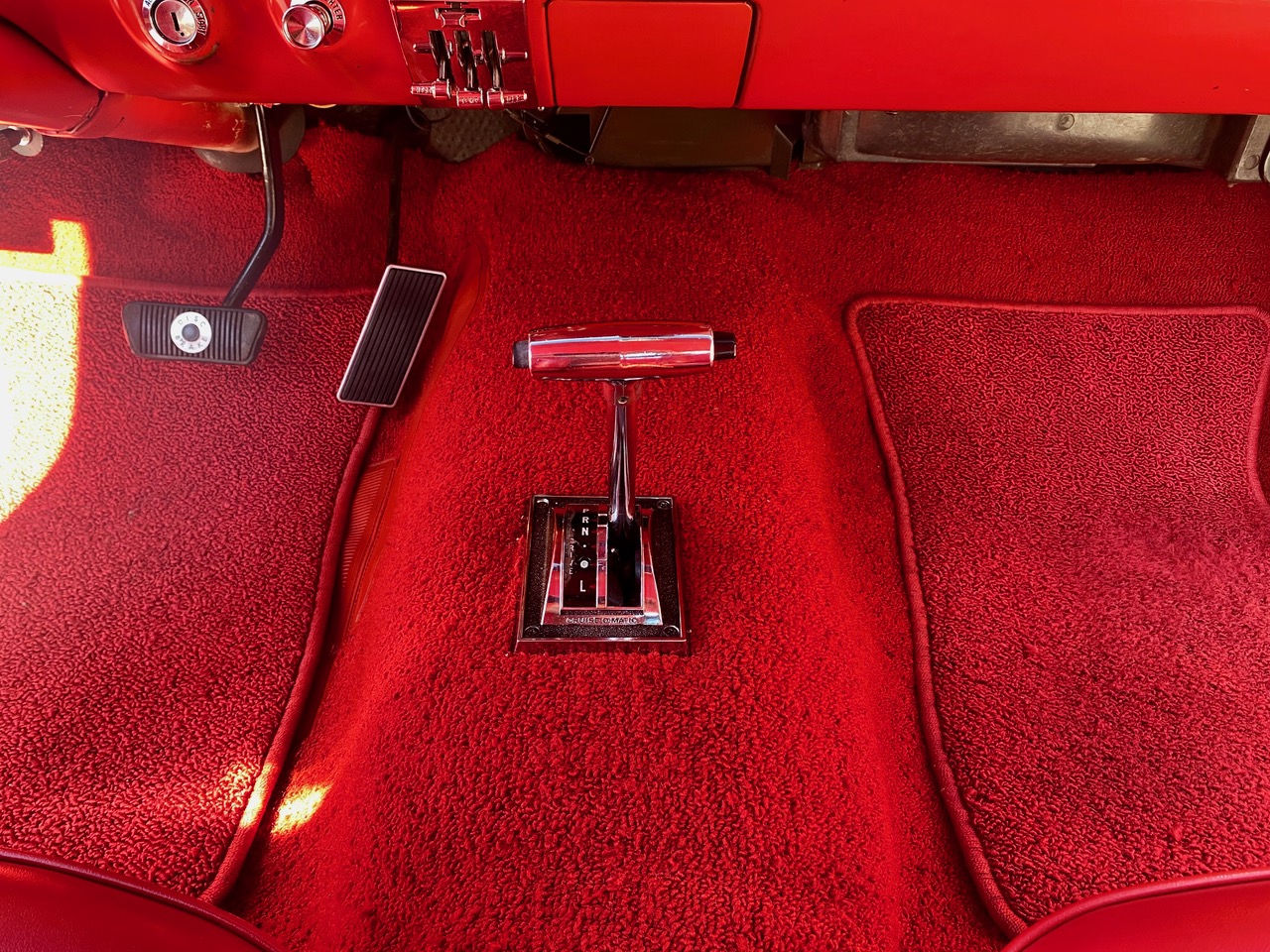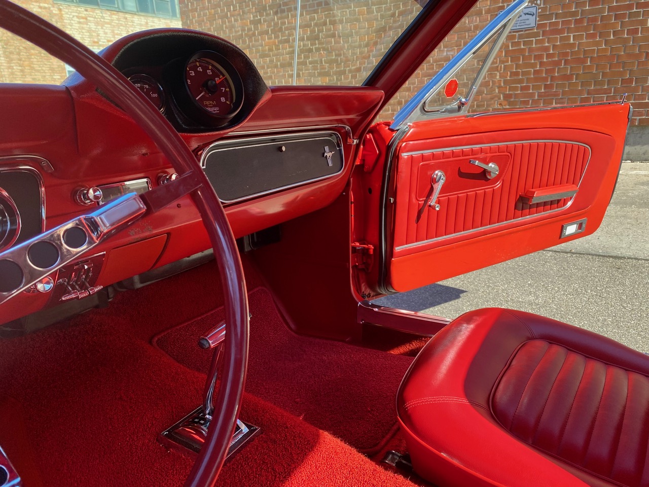 Flash ist ein waschechter Fastback in rot, rot rot. Die Farbkombination alleine lässt Stielaugen wachsen. Lackiert in der Geburtsfarbe "Rangoon Red" mit roter Innenausstattung. Gemischt mit Automatik, Scheibenbremsen, Servolenkung und einem Doppelauspuff, der alle Beteiligten mit coolem Sound versorgt. Ein traumhafter Unterboden versetzt TÜV-Prüfer in gute Laune und spätestens beim Blick in den Motorraum muss man erkennen, dass es sich hier um einen Hengst handelt. Klassiker, Kult, Wertanlage - wir sind jedenfalls stolz, dass er bei uns im Stall einziehen durfte.