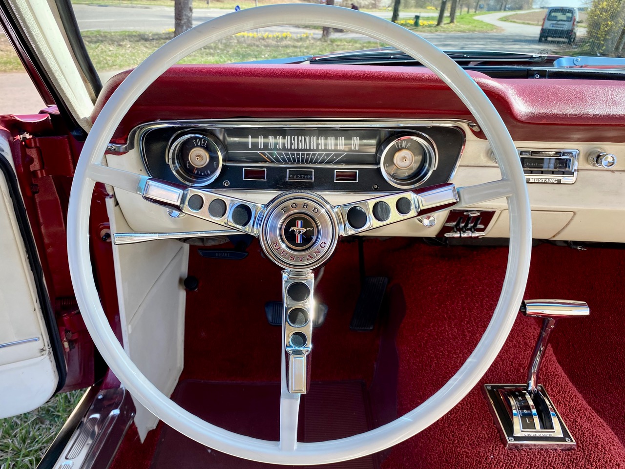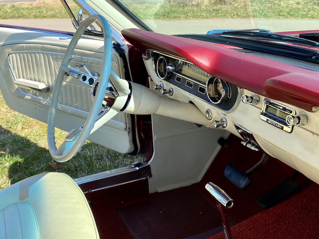Hier kommt ein 1964 1/2 Pony, eins der ersten die noch von Hand geschweisst - und gebaut wurden. Aussen rot, innen weiss, eine Farbkombination die so nicht mehr oft zu finden ist. Der Lack ist nicht mehr ganz perfekt und bereits etwas älter, es gibt ein paar kleine Kratzerchen, man sieht dass er gefahren und benutzt wurde, wir aber sagen dazu "schöne Patina". Jedes Pony hat ein Leben hinter sich und dieser ist ganz sicher nicht dauernd in der Garage gestanden. William hat viel Charme und sehr viel Persönlichkeit.