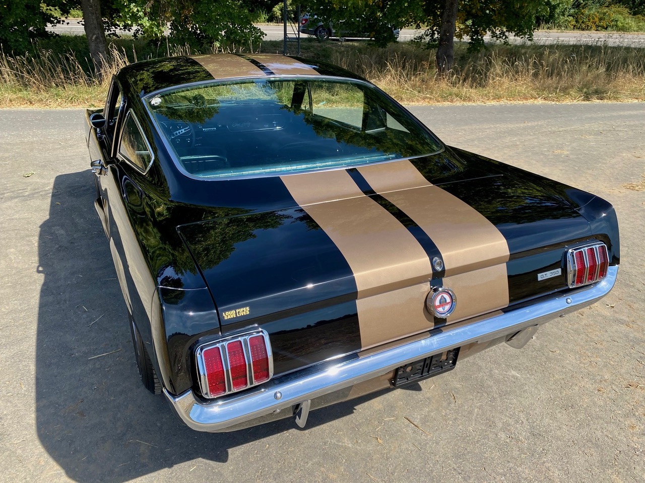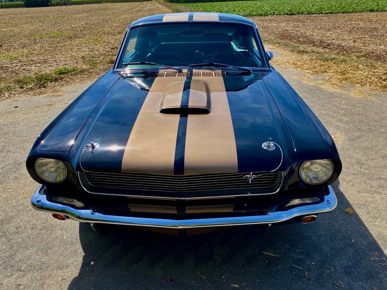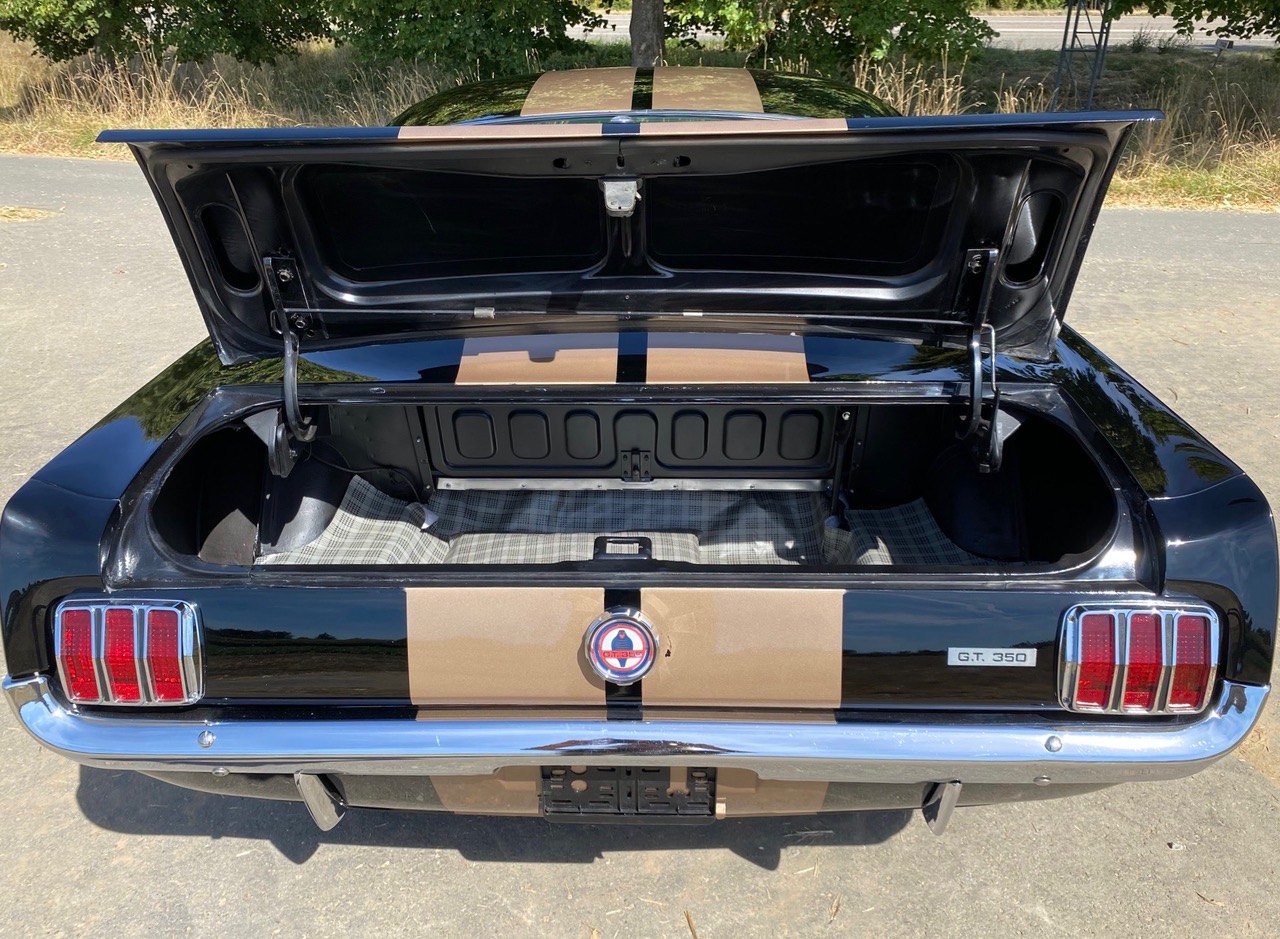 Dieser tolle Bub ist schon einige Jahre in Deutschland. Black Jack ist ein ganz originaler Fastback, geboren in San Jose, am 17. Juni 1965 mit dem Paint Code A, Raven Black. Heute ist er ein rassiger Mustang GT Fastback Shelby Clone, super schön gemacht. Alle deutschen Belege von den Arbeiten am Fahrzeug liegen vor. Mustang, Fastback, schwarz, GT, Shelby .... Für Mustang-Fans ist jedes einzelne Wort ein Traum. Schwarze Mustangs sind selten, schwarze Fastbacks noch seltener und Shelby Clones - ganz selten.