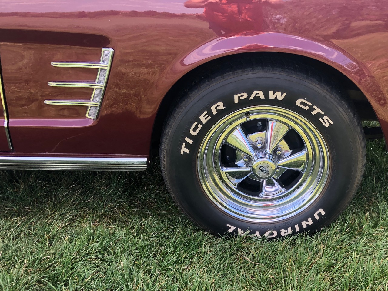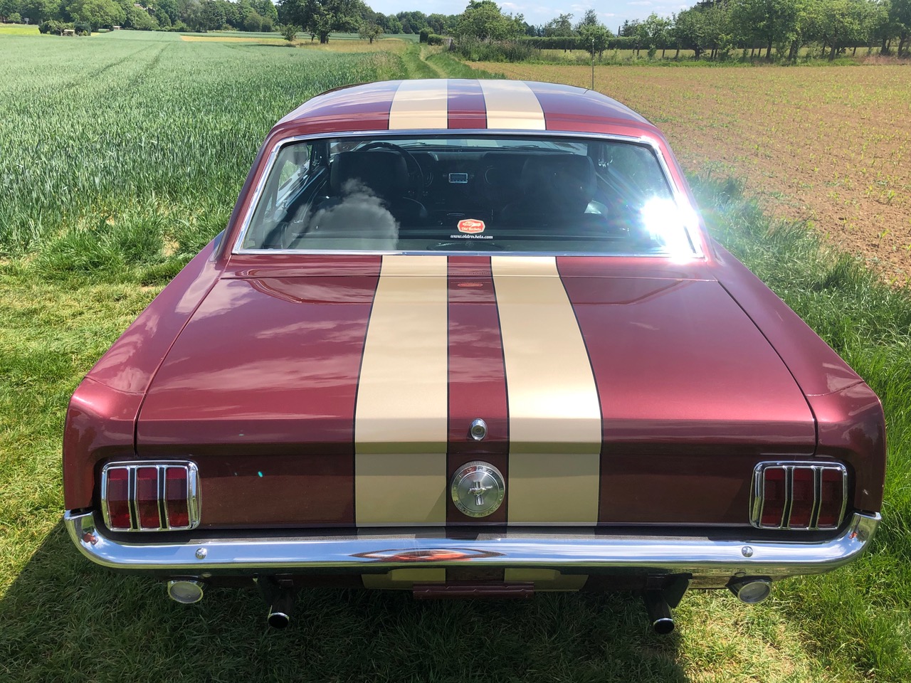 Barney ist schon seit einer Weile in Deutschland und bereits zugelassen, er hat sich als sehr zuverlässiges Pony bewiesen. C-Code, super schöne Cragar-Felgen, Servolenkung, Scheibenbremsen, Doppelauspuff mit coolem Sound und dazu die goldenen Rennstreifen in Vinyl, darunter ein schöner Lack in originaler Farbkombi. Aber nicht genug, Barney bringt all seine Rechnungen und Belege mit, sogar seine originale Verkaufsrechnung mit dem Protectoplate. Alle Begehrlichkeiten von Historien- und Technik-Fans werden hier erfüllt.