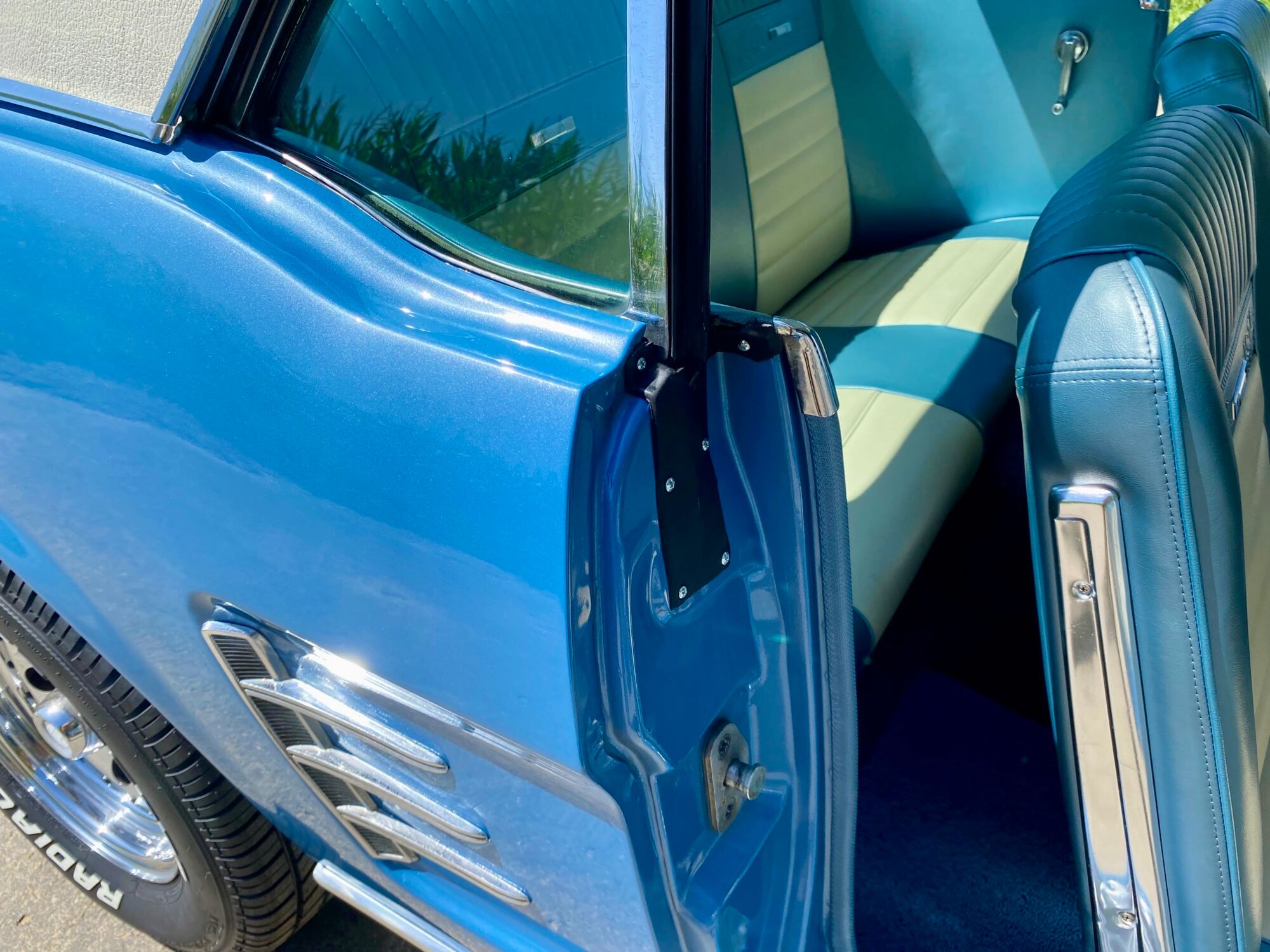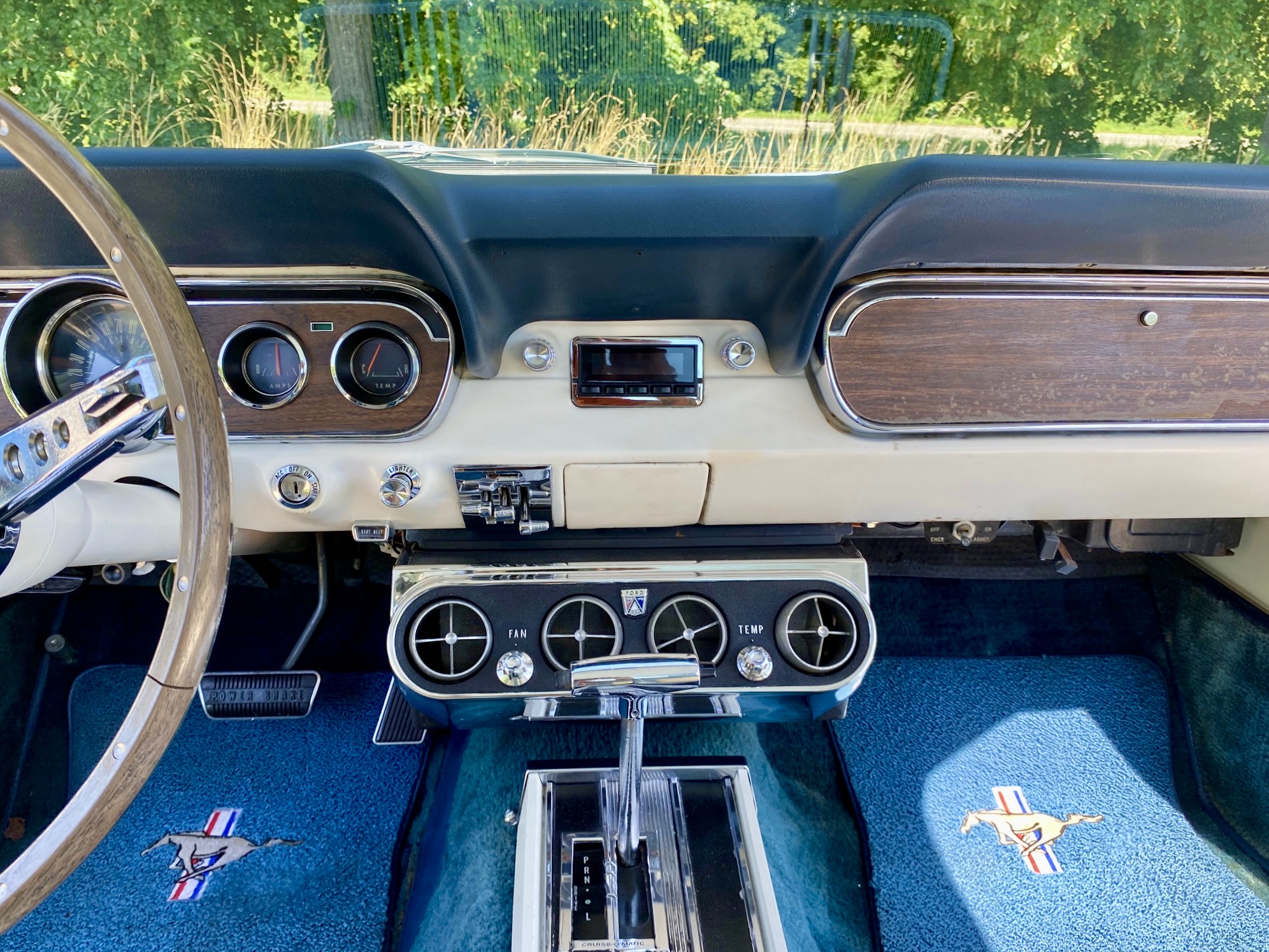 Das ist unsere Lilly, sie ist in Kalifornien geboren und hat nach ihrer Reise über den Teich eine Weile in den Niederlanden verbracht. Eine sehr hübsche und charmante Dame mit Ausstrahlung, komplett durchgestylt in blau-weiss. Passend zum Outfit gibt es eine super erhaltene, ebenso blau-weisse Pony-Ausstattung, ein original Holzlenkrad, eine Klimaanlage, Radio, Servolenkung und natürlich eine Doppelrohr-Auspuffanlage mit tollem Sound. Auch der Unterboden kann sich absolut sehen lassen.