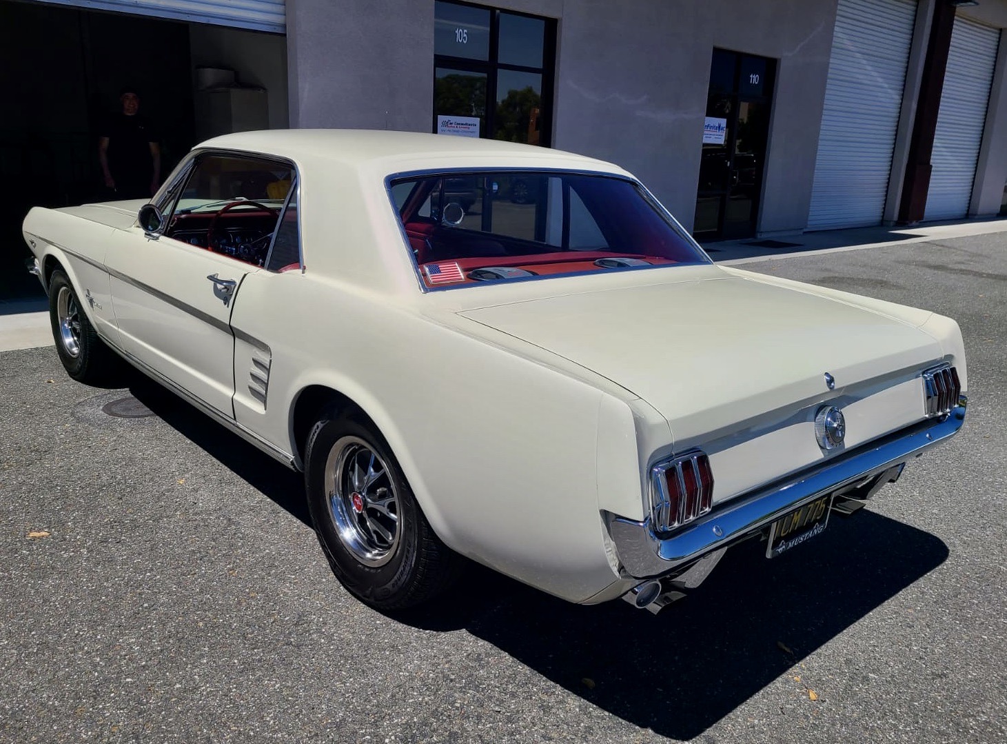 Jeder kennt sie, die amerikanischen, legendären, rot-weissen Lollipops, die rot-weissen Zuckerstangen. Sie sind fast ein Status-Symbol für USA, wie dieses Pony. Super Lack, eine wunderschöne knallrote Innenausstattung, ein Motor-Raum bei dem man die Haube offen lassen möchte, perfekte Karosserie und ein perfekter Unterboden, dazu noch Scheibenbremsen, tolle Felgen und einen umwerfenden Sound. Edel, sportlich und wenn man die Tür auf macht - ein absoluter eye-catcher. Hier gibt es nichts zu meckern und nichts, was schöner gemacht werden kann.