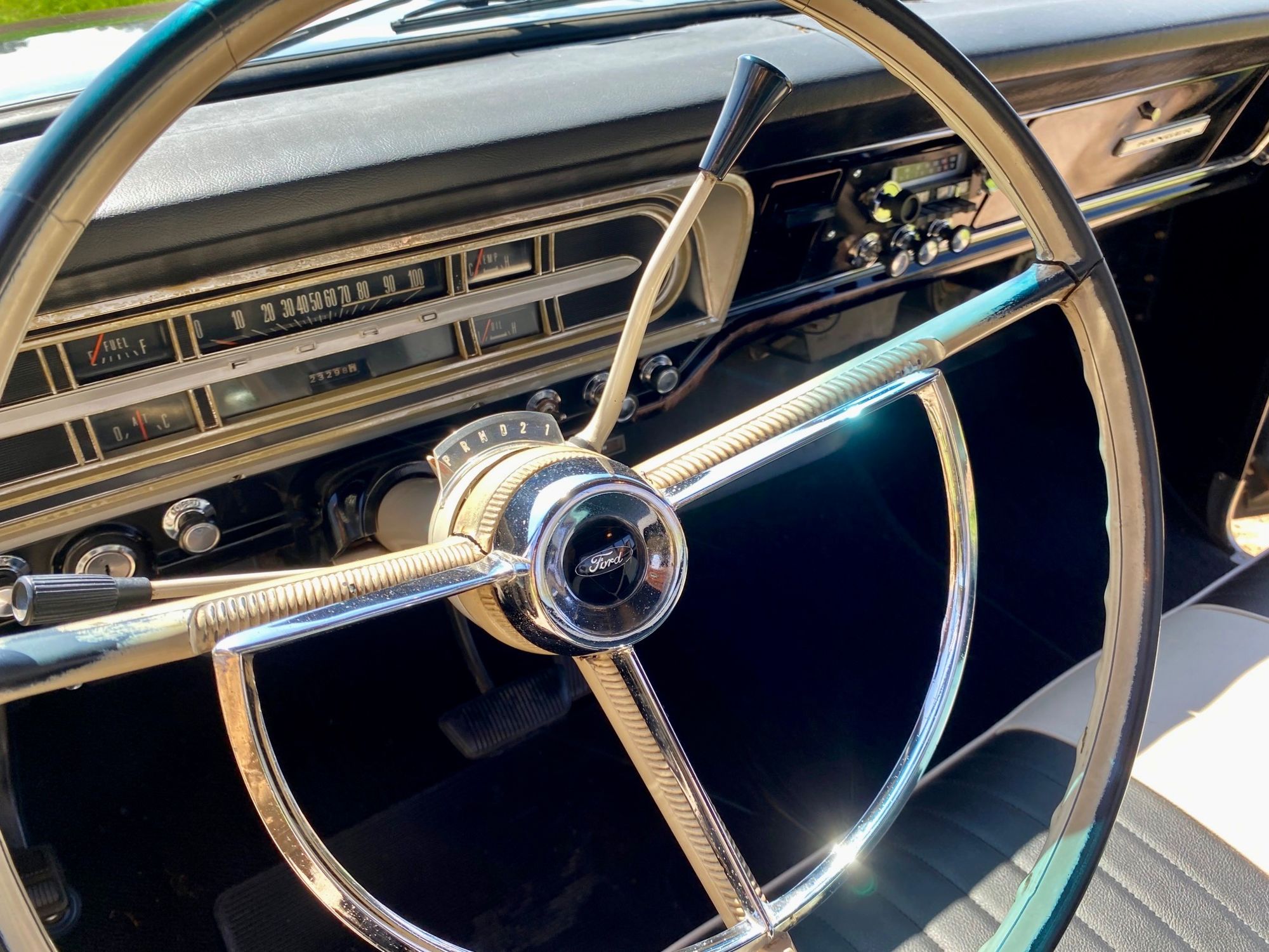 Unser Olli kommt aus dem sonnigen Kalifornien im originalen, schwarzen Lack & einem Black Plate. Er hat immer in trockenem Klima gelebt, seine Karosserie ist super schön erhalten und der Unterboden ist absolut ohne jegliche Durchrostungen. Man sieht dass er ein Leben hatte, dass er benutzt wurde, genau die Patina macht ihn aber sehr liebenswert. Das Herz ist ein 352 cui V8 big block Motor mit 5,8 Liter, angetrieben von einem automatischen Getriebe. Technisch wurde einiges investiert und die neu gepolsterte Sitzbank wartet auf einen begeisterten Driver.