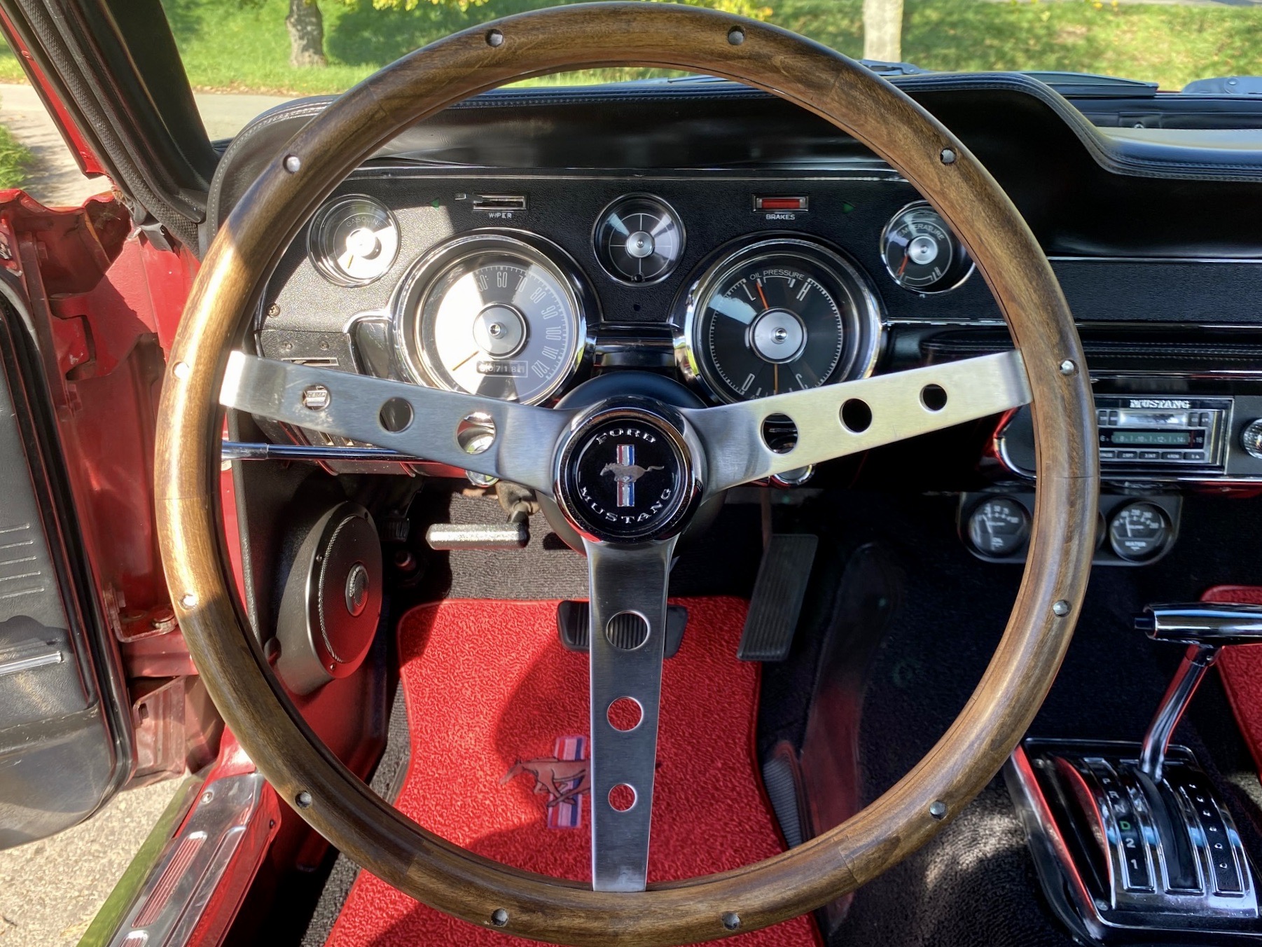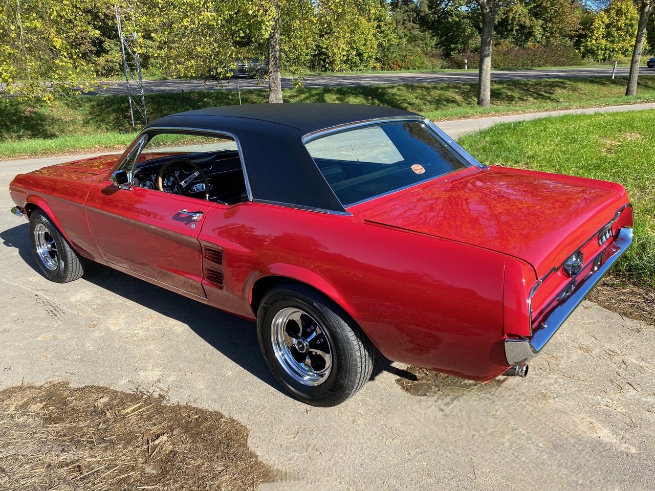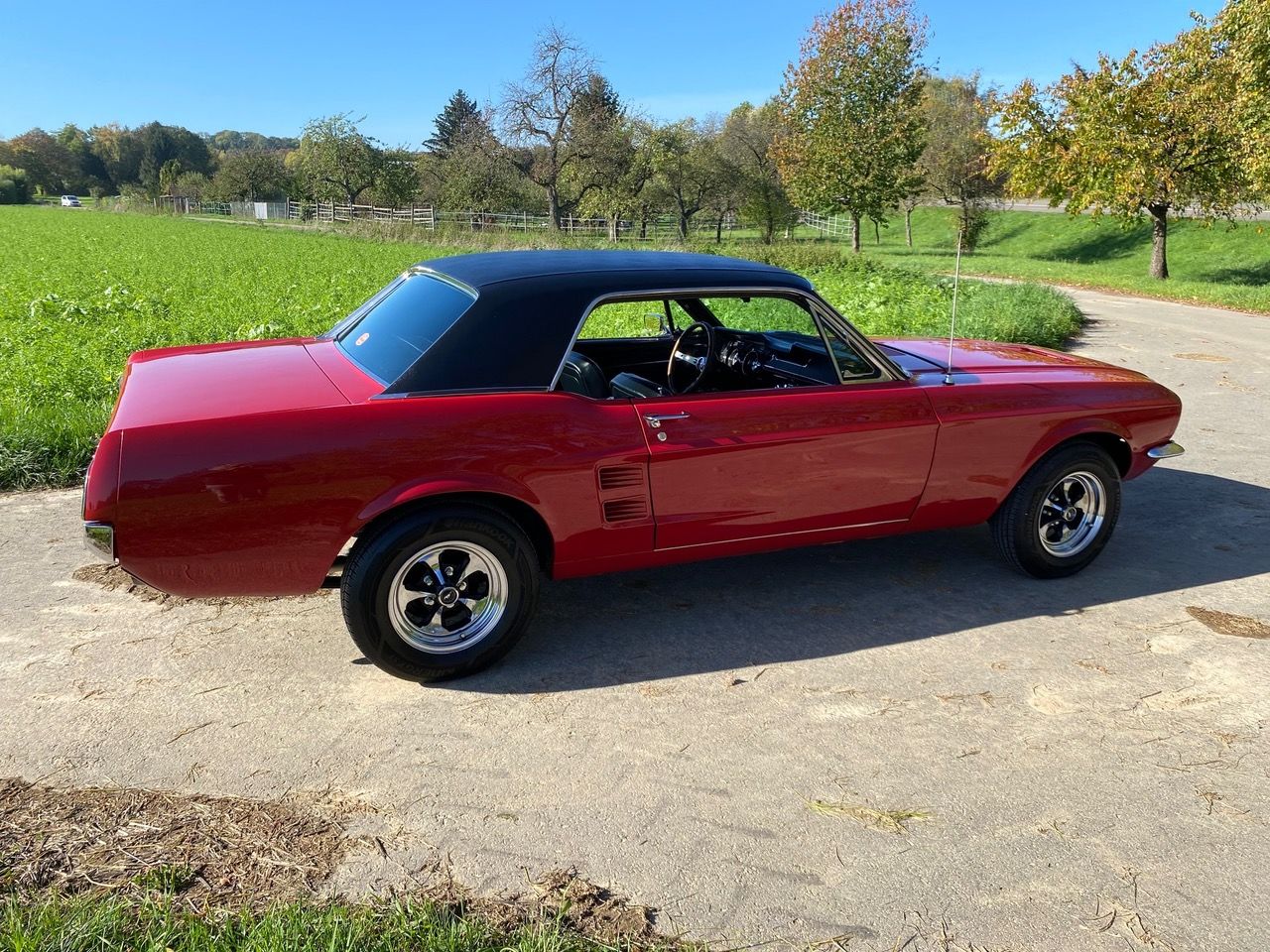 Unser Fuego hatte bereits ein neues Zuhause gefunden, nun muss er leider und traurigerweise aus gesundheitlichen Grüßen "weiter vermittelt" werden. Das Pony war ein langer Traum, er wurde mit Stolz und Freude gefahren, liebevoll gewartet, eine Sitzverlängerungs-Schiene wurde eingebaut. Automatik, Servolenkung, eine sehr gut erhaltene Innenausstattung mit feuerroten Fussmatten, Dashboard ohne Risse, glänzende Chromteile, Holzlenkrad, Mittelkonsole für große und kleine Getränke, Retro-Radio, perfekt erhaltenes Vinyldach, Motorhaube mit Luft-Hutzen, Doppelrohr-Auspuffanlage mit coolem Sound, Fuego hat ALLES. Und das absolute "I-Tüpfelchen" kommt beim Blick unter die Haube, da steckt sehr viel Liebe drin.