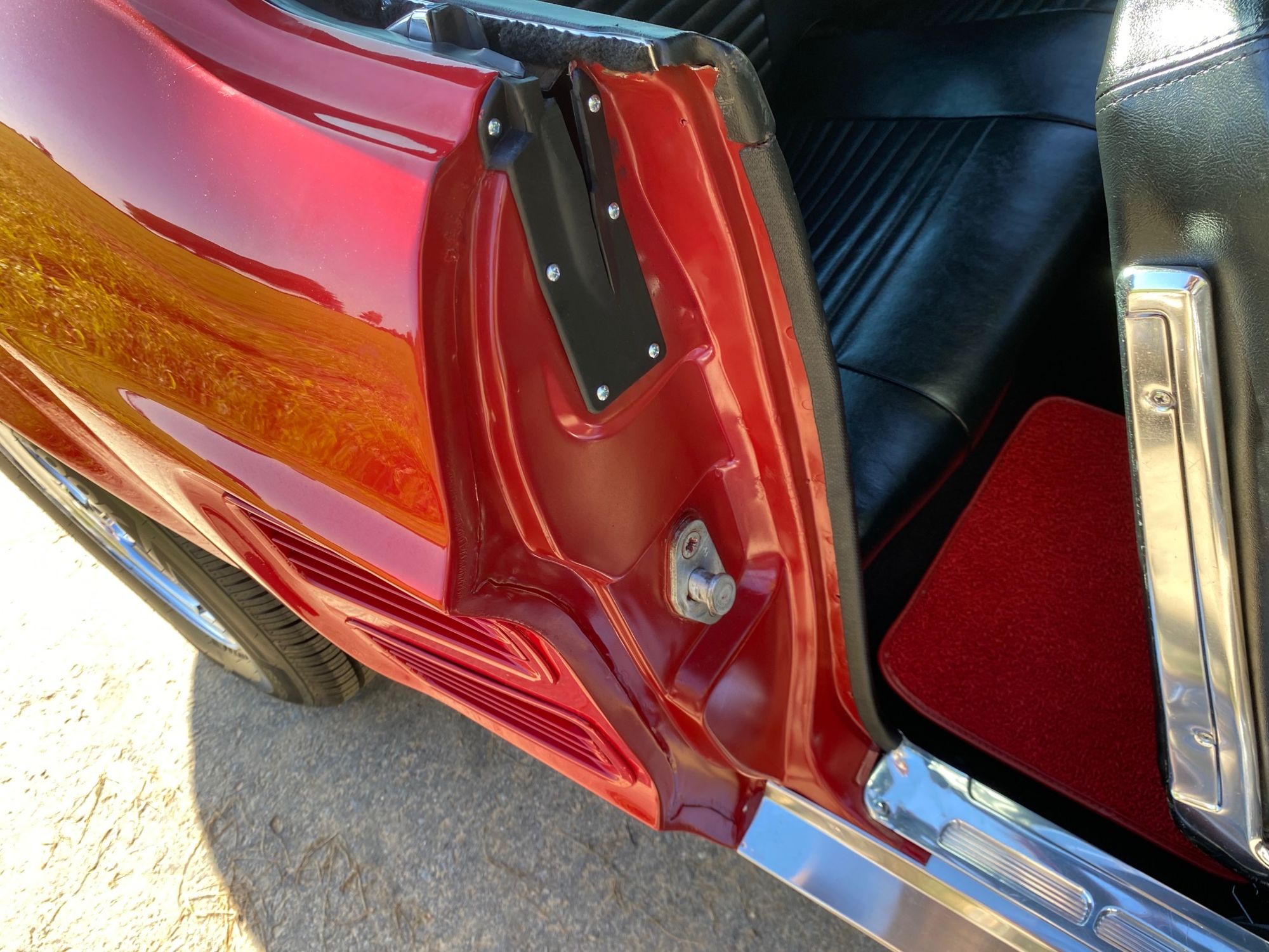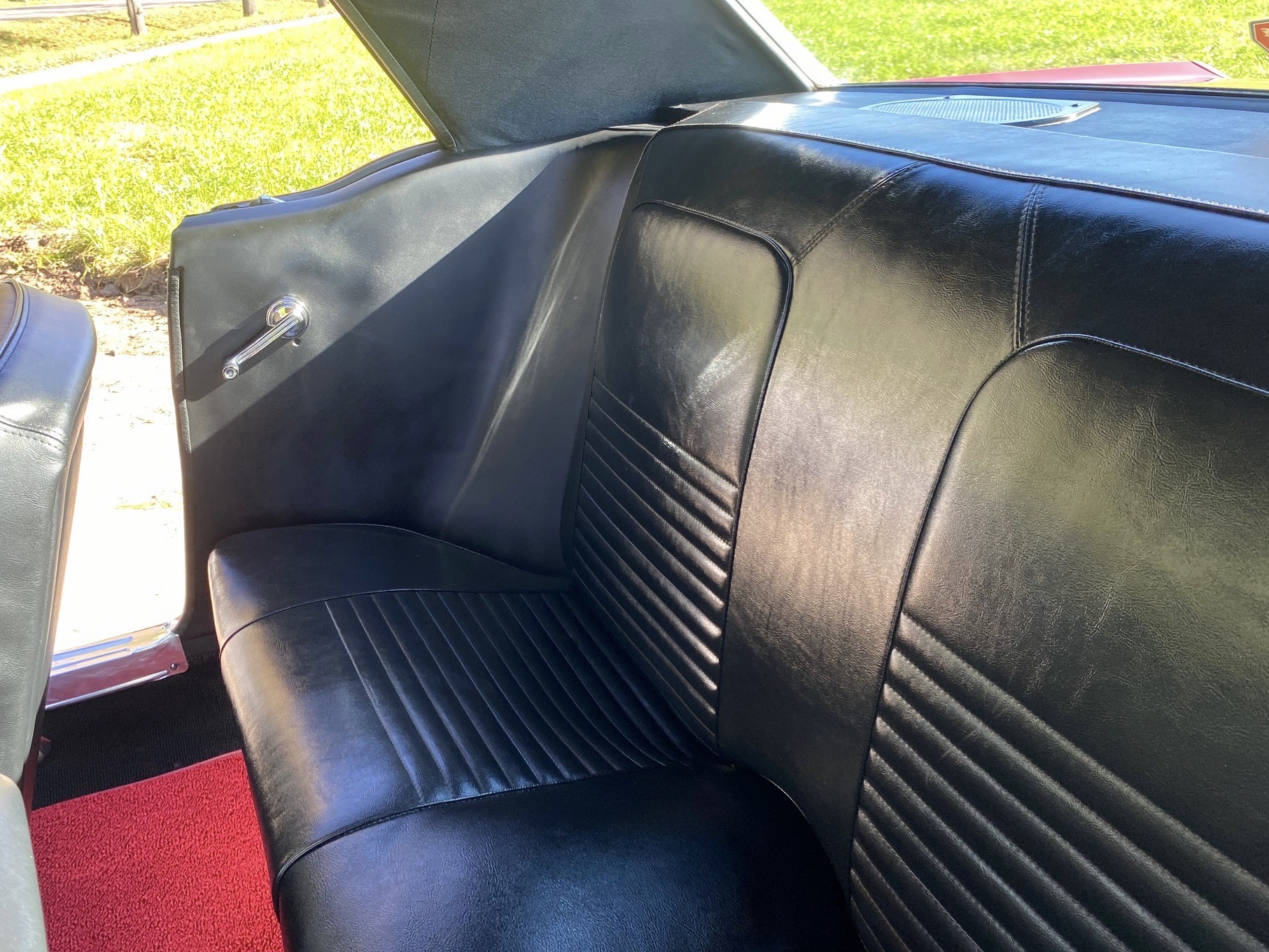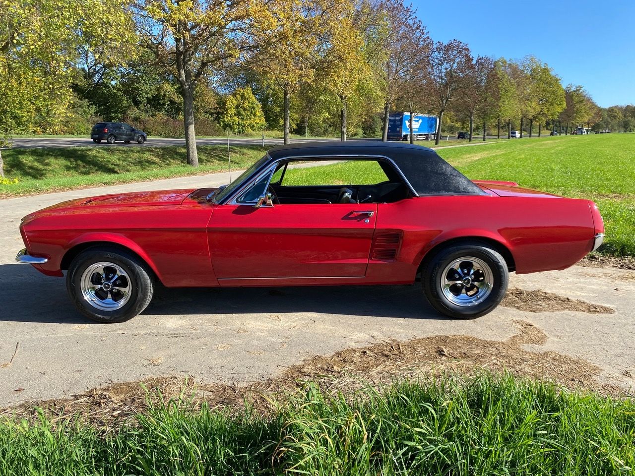 Unser Fuego hatte bereits ein neues Zuhause gefunden, nun muss er leider und traurigerweise aus gesundheitlichen Grüßen "weiter vermittelt" werden. Das Pony war ein langer Traum, er wurde mit Stolz und Freude gefahren, liebevoll gewartet, eine Sitzverlängerungs-Schiene wurde eingebaut. Automatik, Servolenkung, eine sehr gut erhaltene Innenausstattung mit feuerroten Fussmatten, Dashboard ohne Risse, glänzende Chromteile, Holzlenkrad, Mittelkonsole für große und kleine Getränke, Retro-Radio, perfekt erhaltenes Vinyldach, Motorhaube mit Luft-Hutzen, Doppelrohr-Auspuffanlage mit coolem Sound, Fuego hat ALLES. Und das absolute "I-Tüpfelchen" kommt beim Blick unter die Haube, da steckt sehr viel Liebe drin.