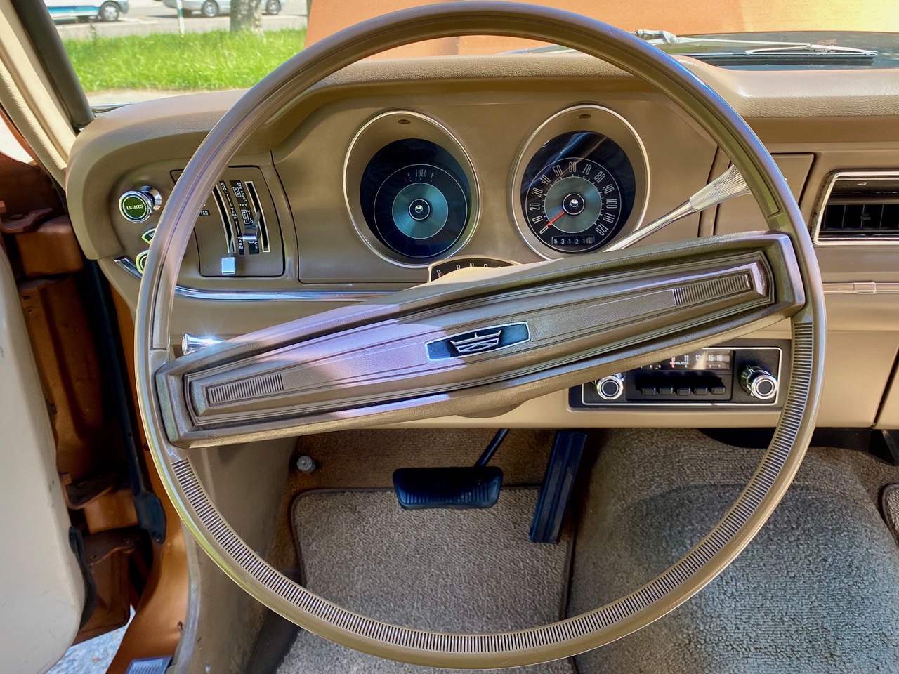 Dieser seltene Bub kommt aus Tennessee, mit originalen 53.121 Meilen, 302 V8 matching numbers, nachweisbar nur ein Eigentümer, die Historie hat er mitgebracht. Lackiert in der Originalfarbe "medium copper metallic" mit original schwarzem Vinyldach, genau so ist er 1973 vom Band gelaufen. Auch die Innenausstattung ist original, ein tolles creme mit tri-tone Muster. Dazu noch Servolenkung und ein wunderschön blubbernder Doppelrohr-Auspuff. Absolut seltenes Sammlerstück, ein tolles Pony, Oldschool vom Feinsten und Fastback mal anders.