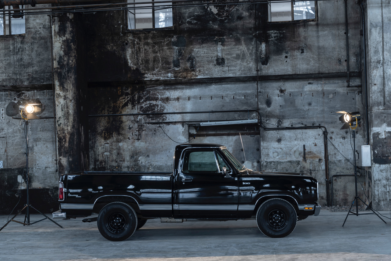 Pick Up Fans, V8-Fans aufgepasst, hier haben wir einen einmaligen 1976 Dodge D100 mit originalem 440 cui V8 Motor, original short bed, geboren in original schwarz. Black in Black, gefunden in Santa Maria, Kalifornien. Nur mit Überredungskunst durften wir den seltenen Wagen aus der Scheune entführen. Dem trockenen Klima und guter Pflege hat er es sicherlich zu verdanken dass er noch immer so gut in Form ist. Schwarz, kurz, Automatik, der 7,2 Liter V8 mit ca. 258 PS geht ab wie Schnitzel und dazu gibt es einen geilen Sound. Scooby ist ein "black beauty".