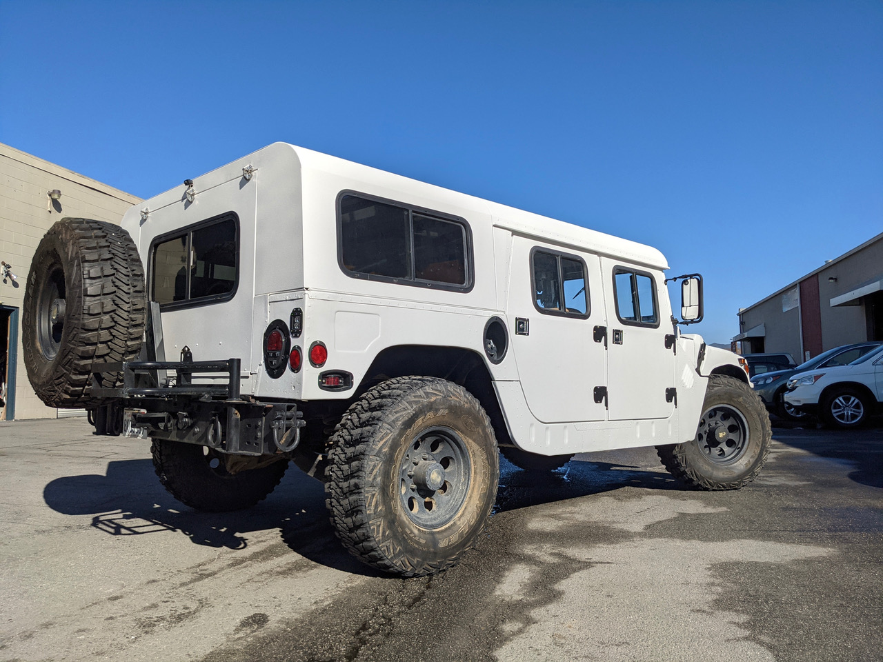 Hier kommt James, ein sehr seltener und besonderer 1986 AM General in weiss, in Kalifornien sehr bekannt als Retter, er war das "Search & Rescue Vehicle" beim County Sheriff. Ausgestattet für alle Fälle, mit einzigartigen Optionen wie hydraulische Seilwinde, Kompressor, Meilen-Marker, verbessertem Getriebe, Überroll-Käfig, Schalensitzen, Rückfahrkamera, diversen Leuchten und viel Charme wartet er nun gespannt auf neue Einsätze. Sich fast auf der Stelle drehen, durch Matsch fahren oder Berge erklimmen kann er selbstverständlich auch, er könnte er sogar als Luxus-Humvee dienen.