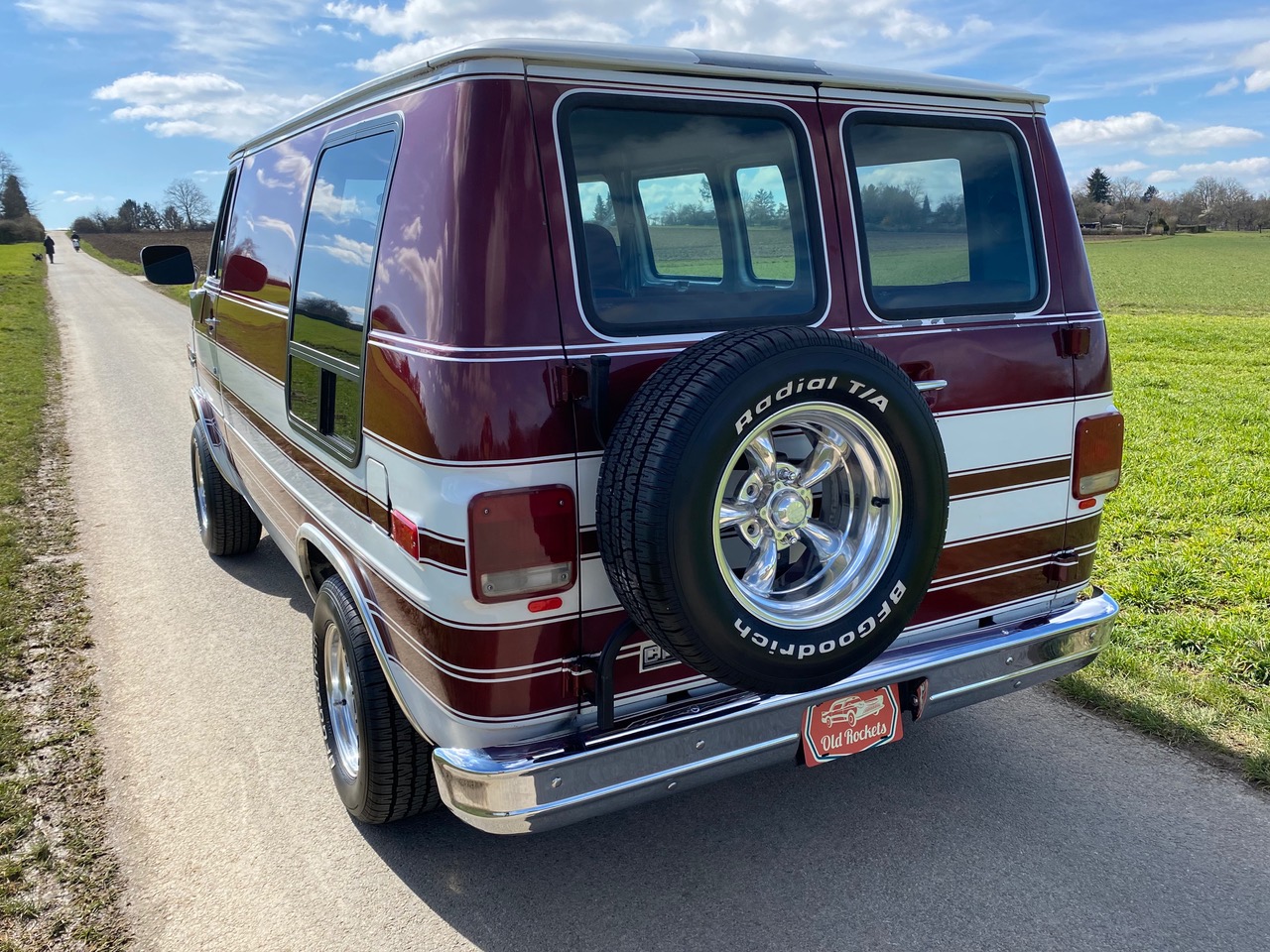 Shorty, ein G10 "Contempo" Design-Van, ursprünglich aus Los Angeles. Über drei Jahre wurde liebevoll restauriert, viel Geld investiert. Motor, Auspuff, Reifen, Felgen, Polster, Teppich und vieles mehr. Eigentlich war noch eine neue Lackierung geplant. Aus finanziellen Gründen musste der Bub aber leider abgegeben werden - und ausziehen. Für uns ist der "nicht so perfekte Lackzustand" schöne "Patina". Und Shorty ist ein lustiger, sehr praktischer Family-Van mit H-Zulassung, Rennsemmel mit mega Power, viel Platz und - das Beste - das eigene Bett ist immer mit dabei.
