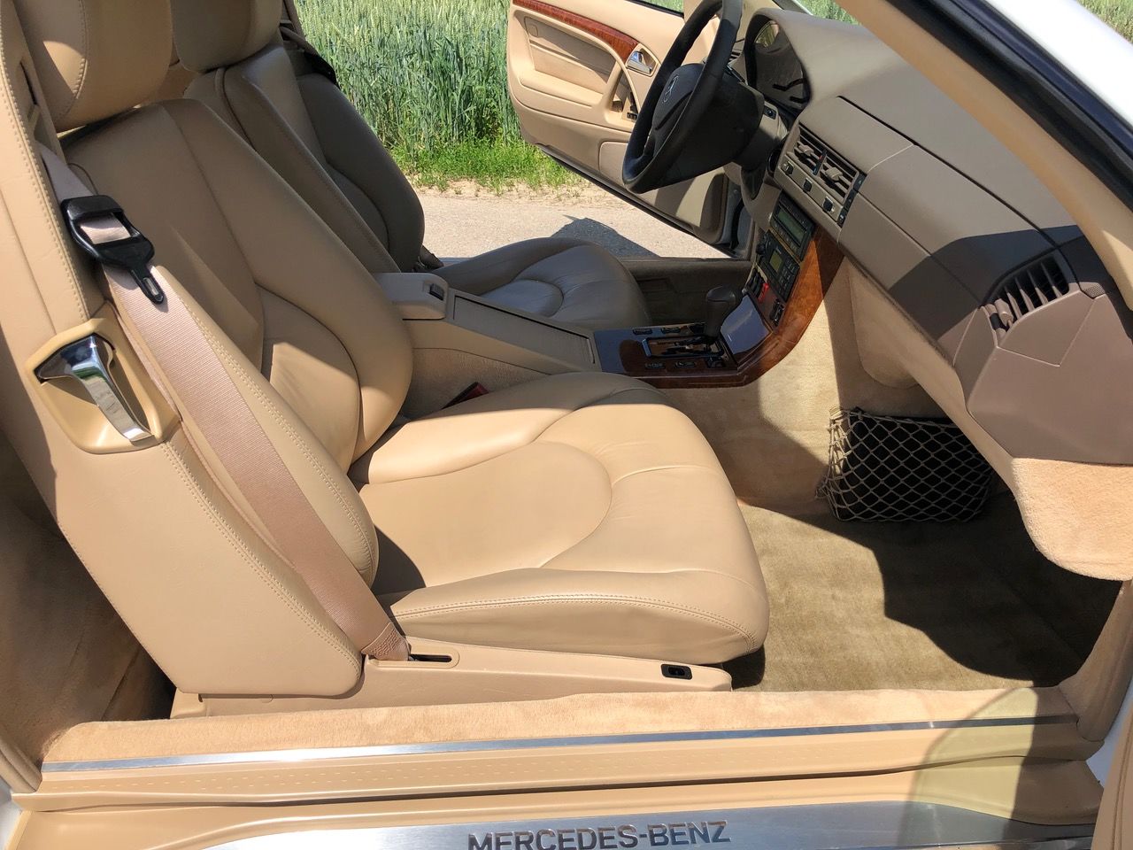 Brunhilde ist PERFEKT !! Sie wirkt als ob sie gerade erst gebaut wurde, 46.720 Meilen sieht man ihr nirgends an, sie scheint nahezu konserviert. Bei Brunhilde wurden im Juni 2020 alle Öldruck-Pumpen für das hydraulische Verdeck gewechselt, die einzige und sehr kostspielige SL-typische Schwachstelle ist somit beseitigt und dieses Fahrzeug ist nicht zu vergleichen mit anderen Angeboten. Perfekter Lack, perfektes Nappa-Leder, ESP, ASR, EDW, Bose Sound und tolle Felgen inklusive. Ab in die 90er Jahre, mit einer perfekten Lady !!